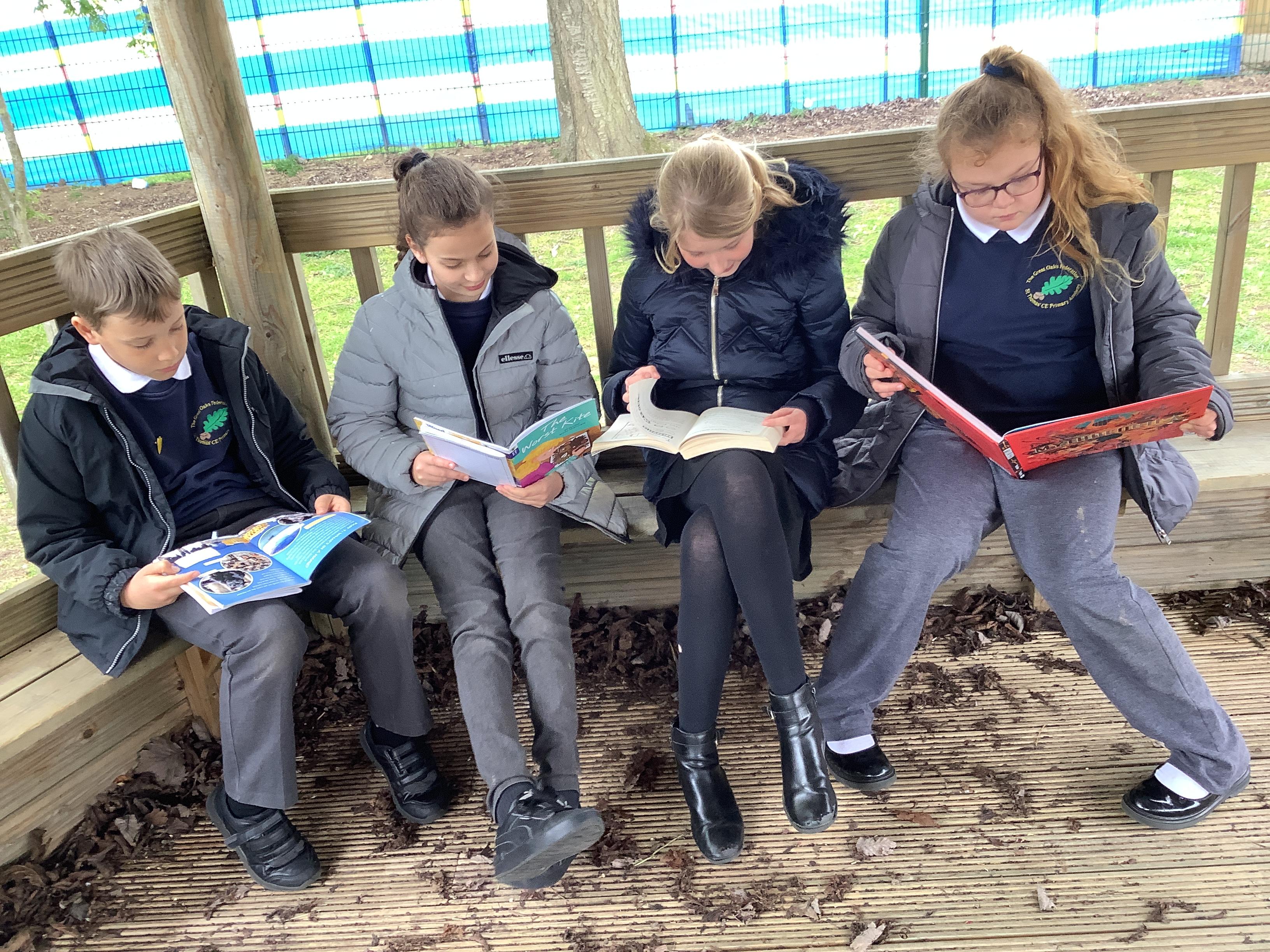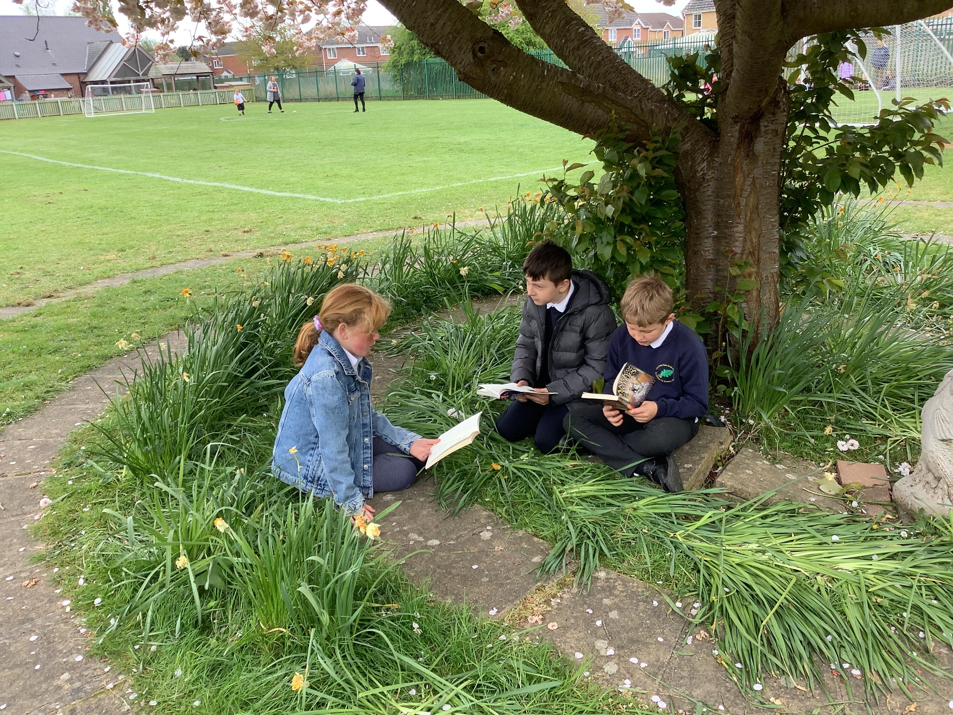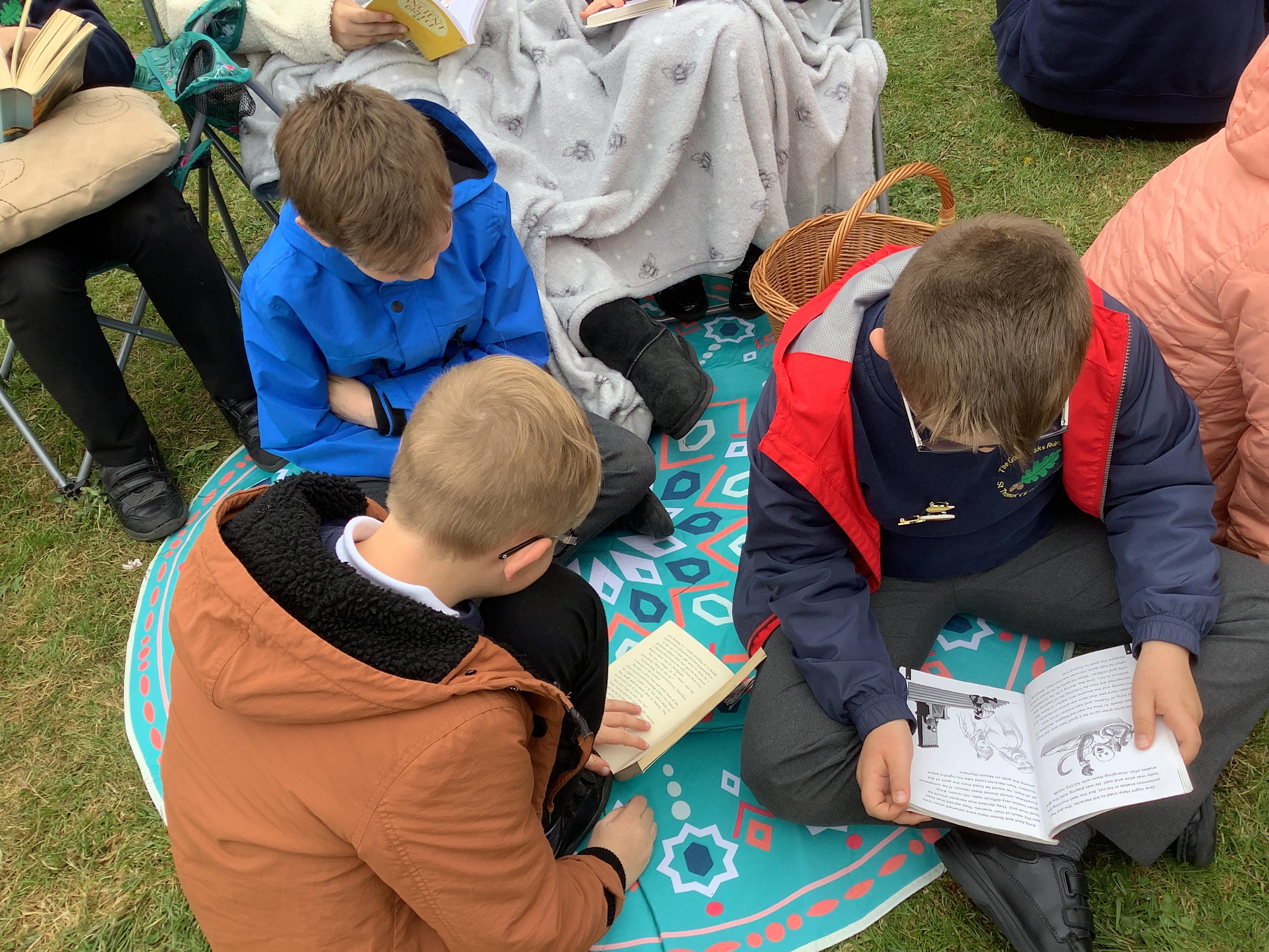 All the children were very excited about the booknic on Wednesday afternoon. After lunch, we headed out to the Reflective garden to enjoy our books. A beautiful peaceful atmosphere, broken only by murmurings as children shared their facts, opinions and ideas about their books, was experienced by all.