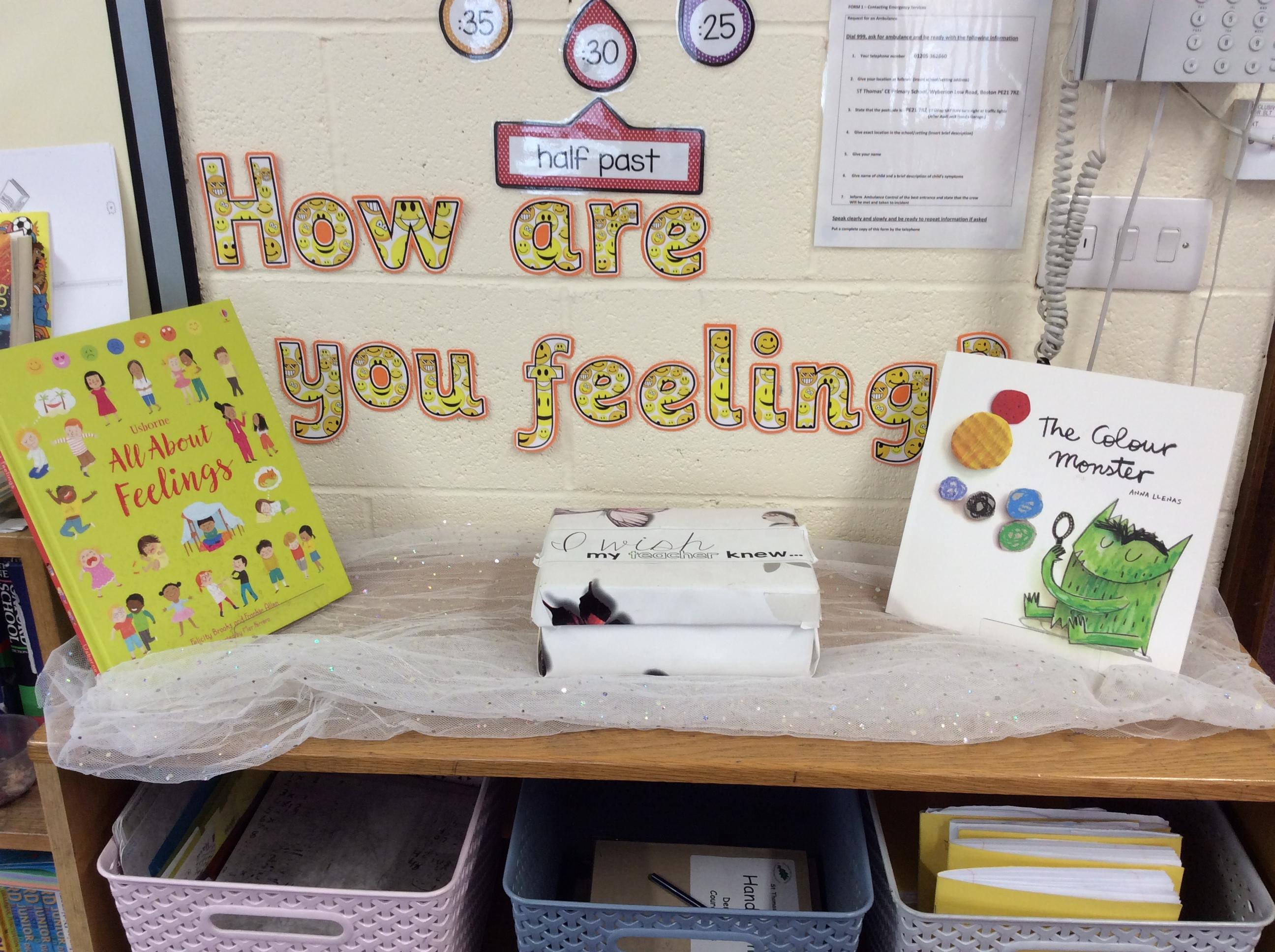Since September, we have focused on identifying our different feelings and how we can get help and support when needed. Every day we talk about how we are feeling during our morning greeting time and share them with our peers and adults. In Courage Class we have a 'What I want my teacher to know box', where we can share any private thoughts we are finding tricky to voice. This enables the adults to come to us and start the conversation so that any issue can be solved or supported by working together.
