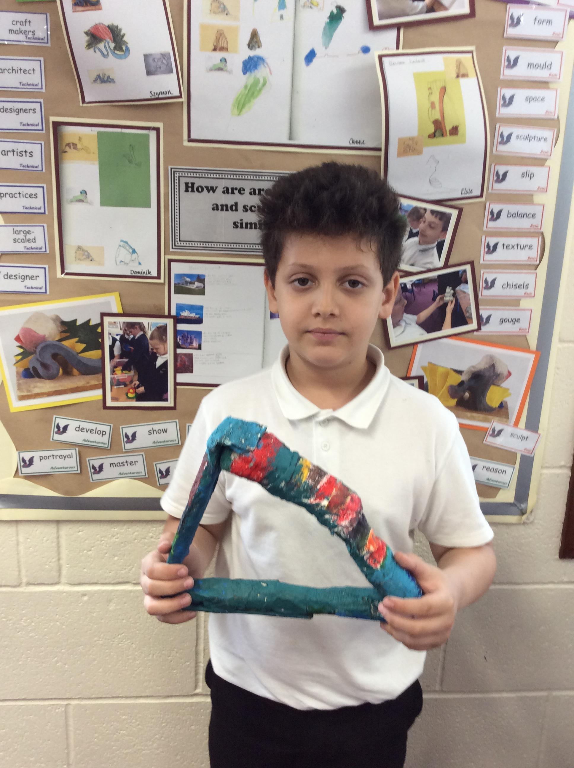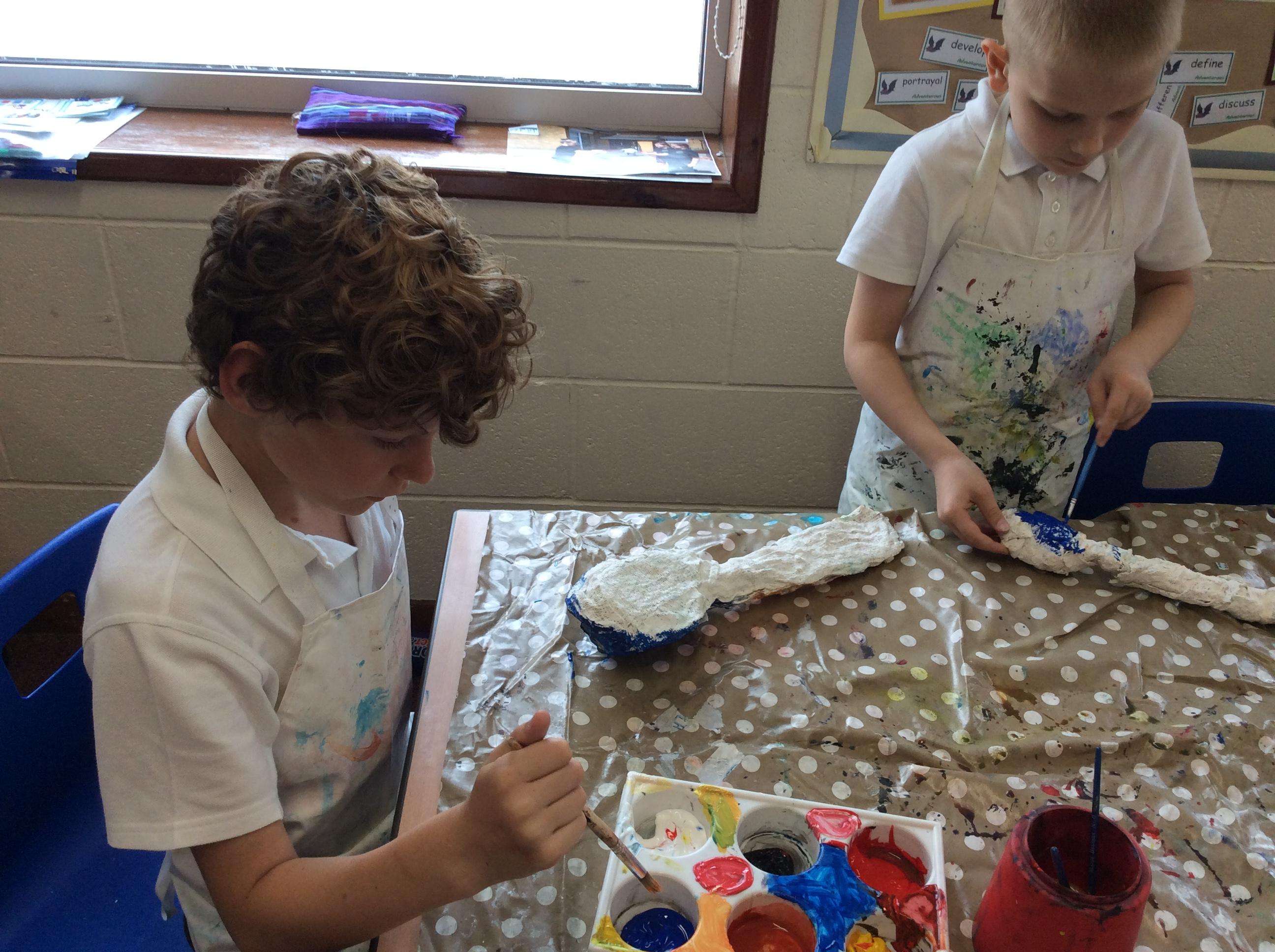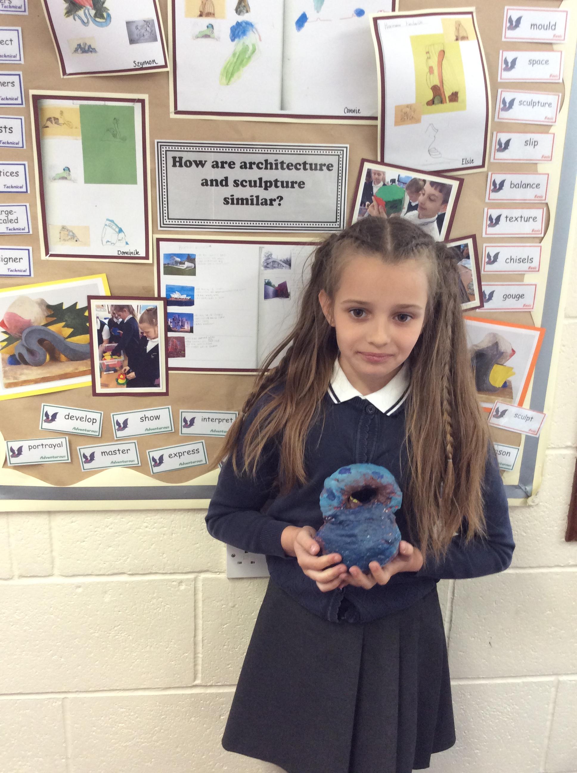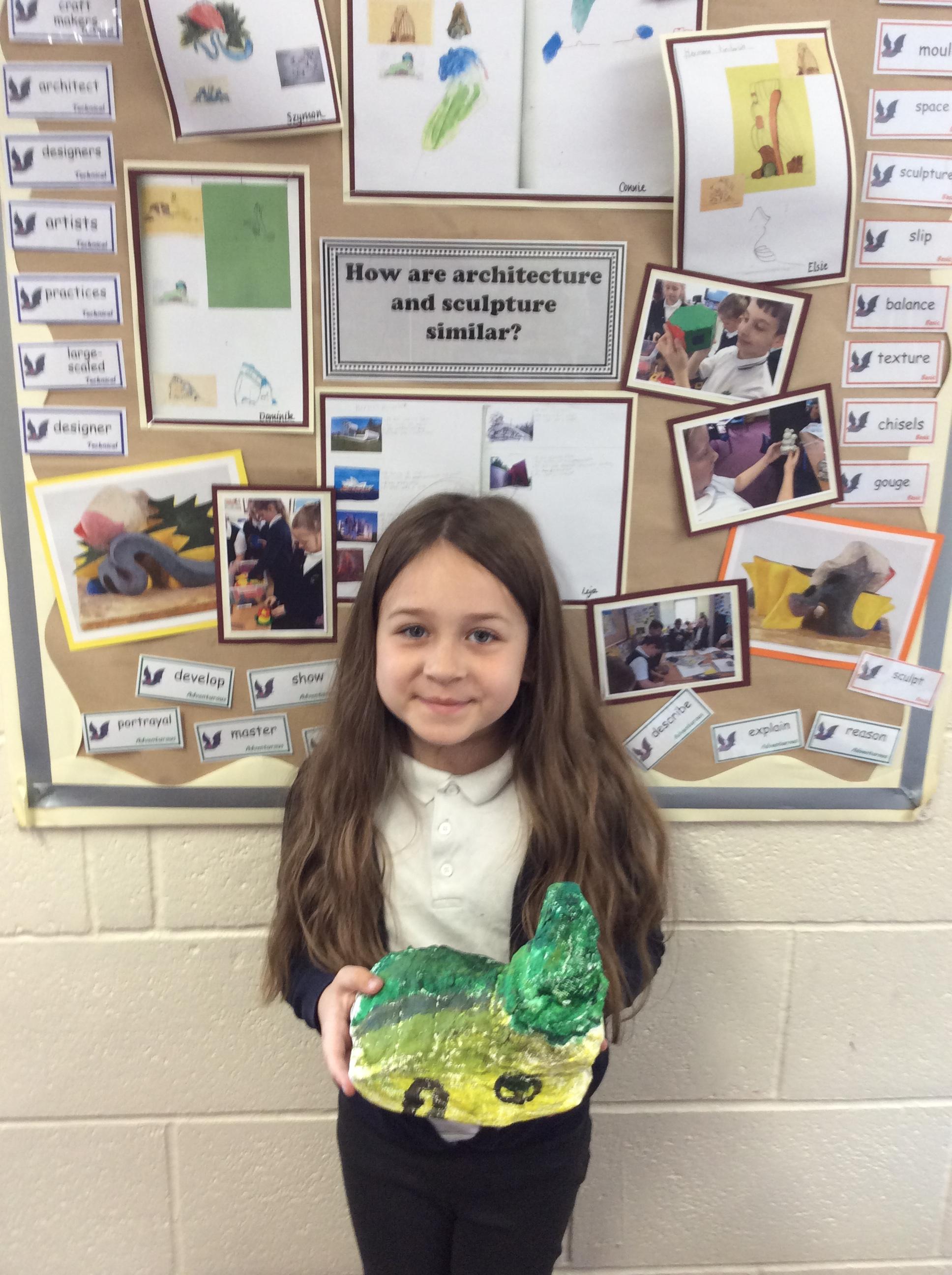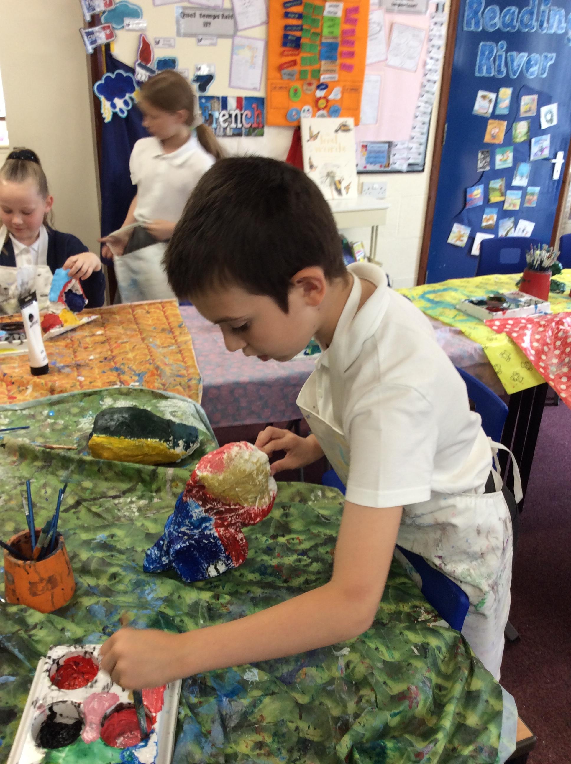 As we end of unit of work on sculpture and architecture, we were proud to share our finished sculptures with one another. After exploring the work of Hermann Finsterlin, sketching our own ideas, creating models using newspaper, adding Modroc to create our sculpture and painting them- we are finally finished! We discussed with our peers the type of place our sculptures would be placed in the world. For some, they would camouflage and blend into their surroundings and others would be bright buildings on the landscape to create conversation and intrigue. Can you identify which are which from our photos?