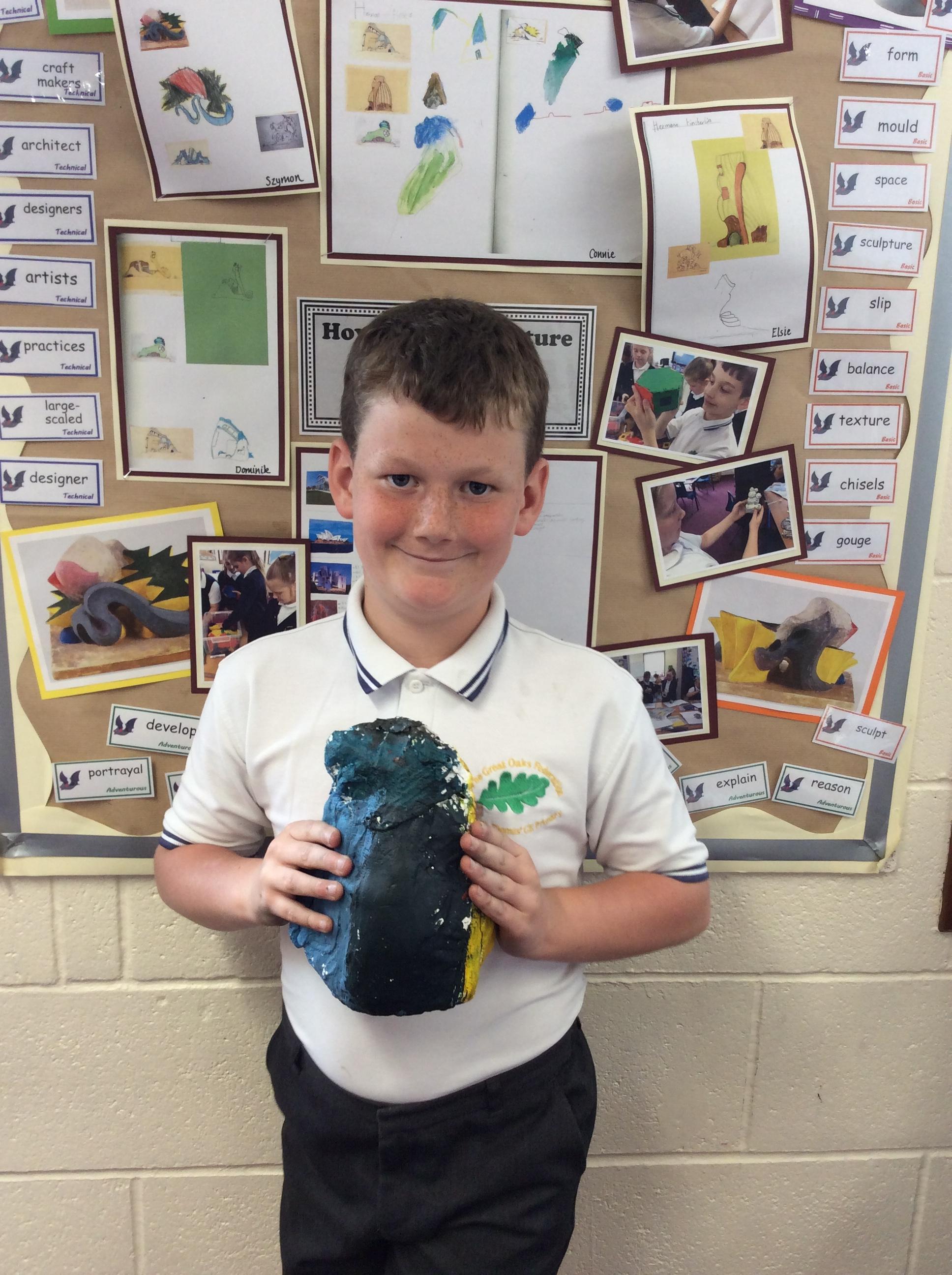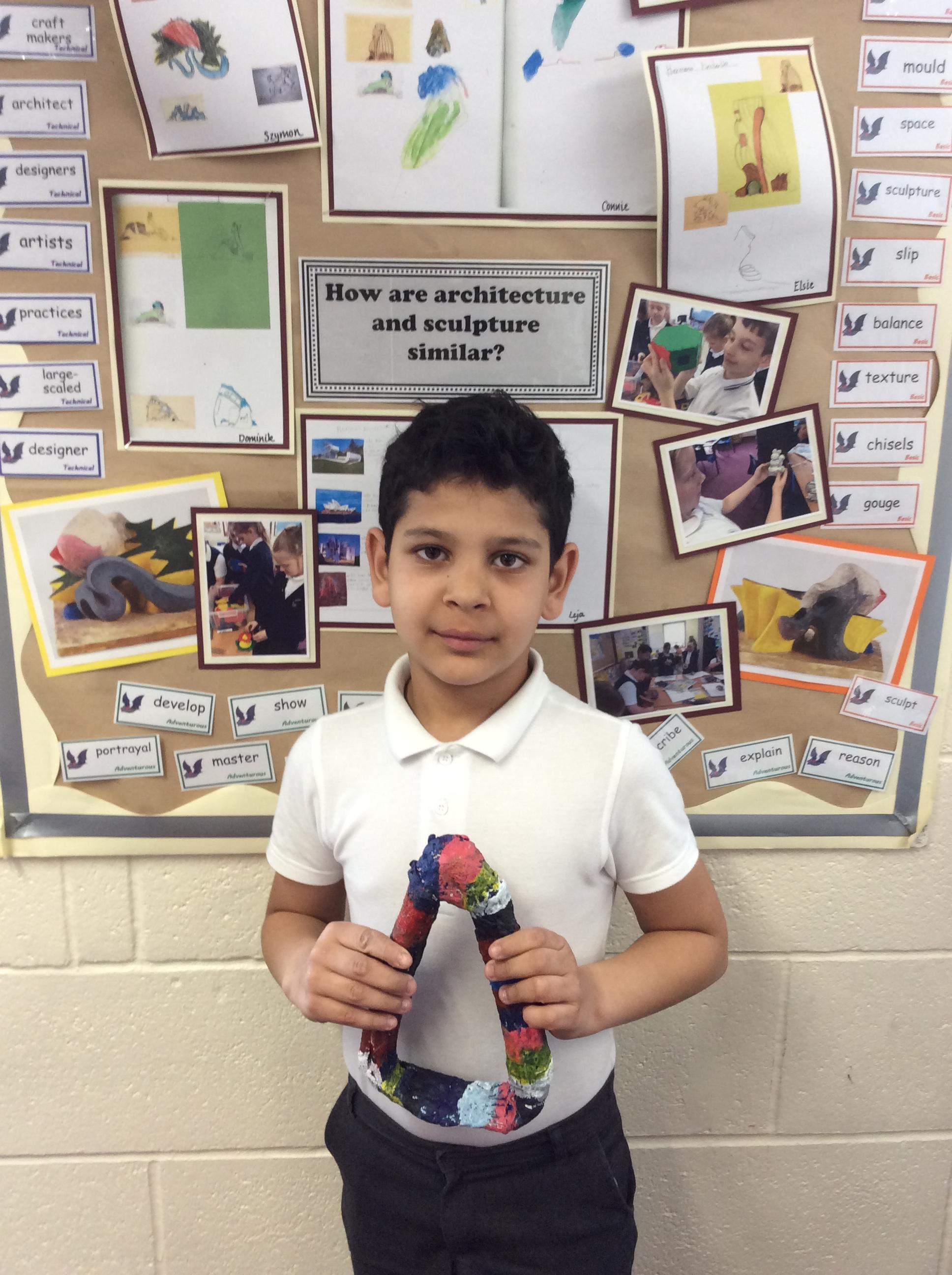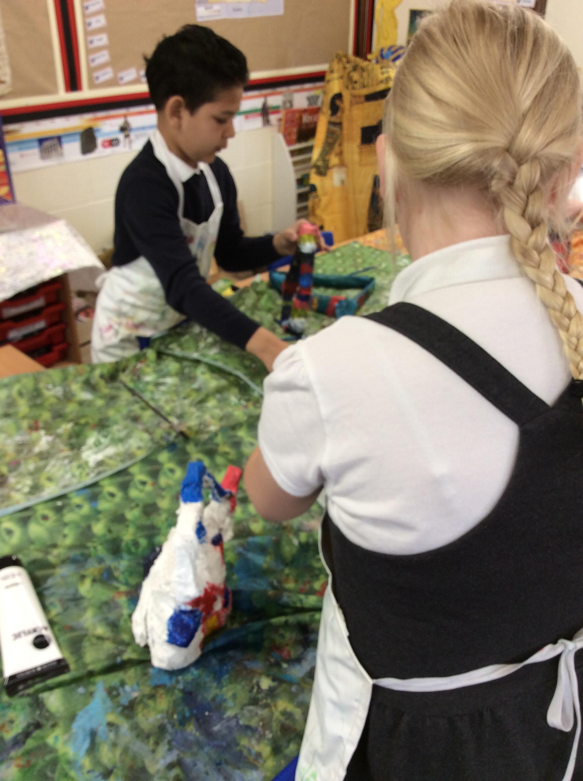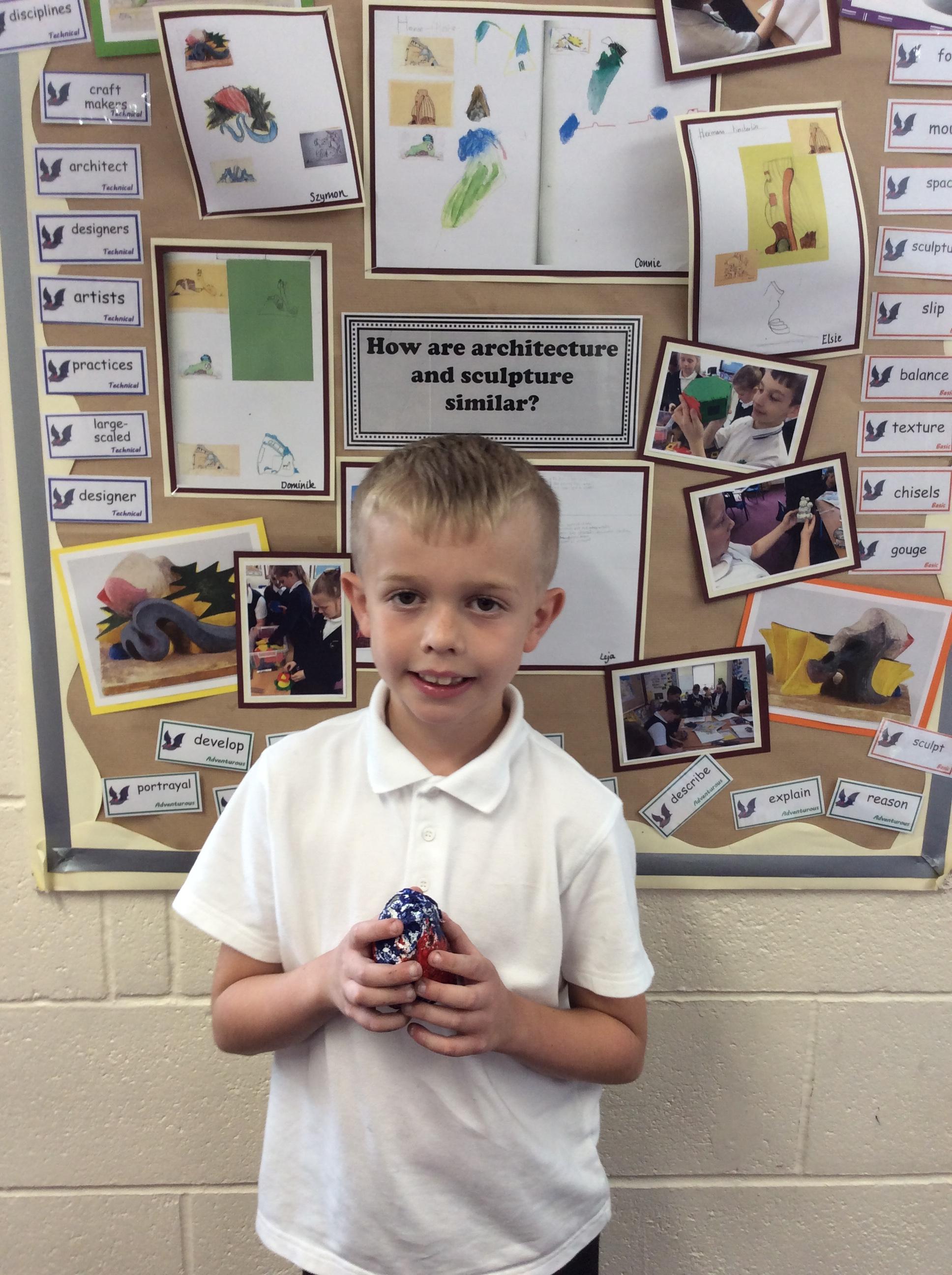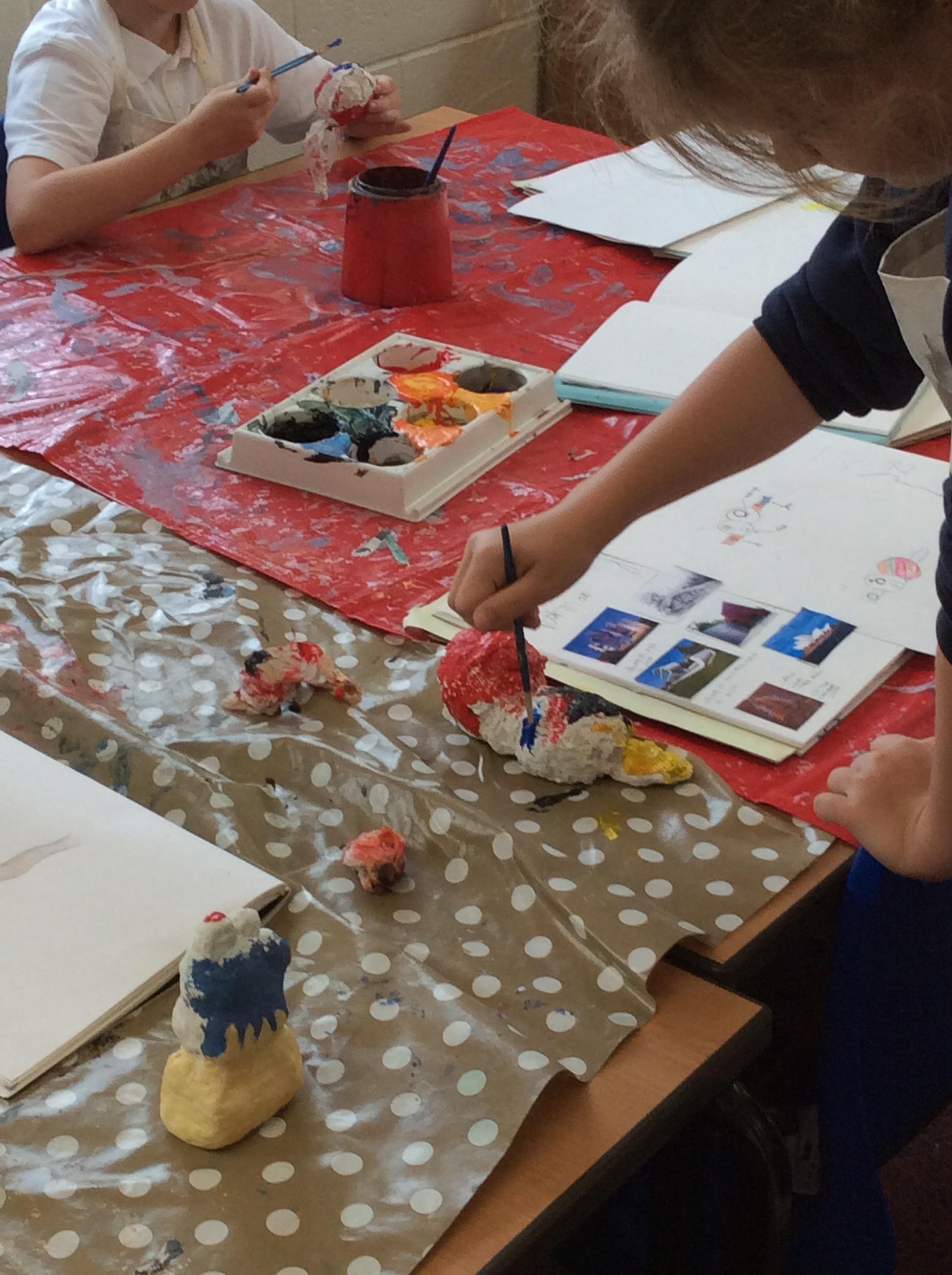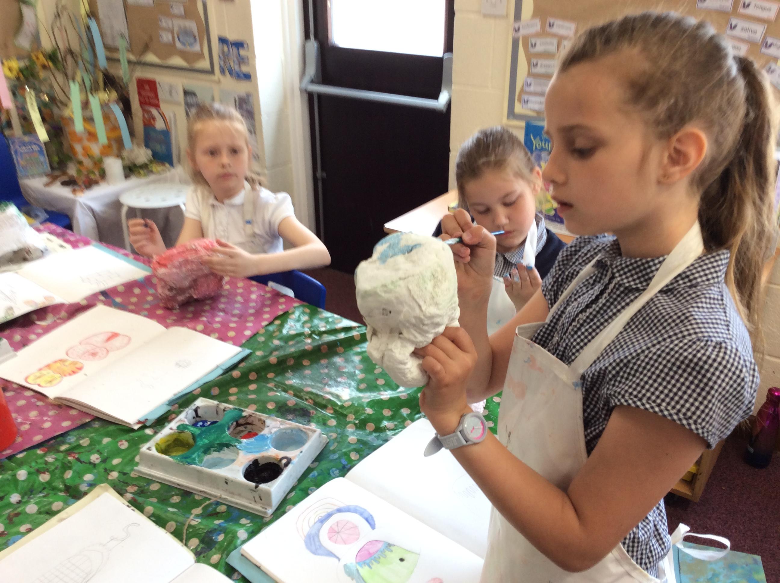 As we end of unit of work on sculpture and architecture, we were proud to share our finished sculptures with one another. After exploring the work of Hermann Finsterlin, sketching our own ideas, creating models using newspaper, adding Modroc to create our sculpture and painting them- we are finally finished! We discussed with our peers the type of place our sculptures would be placed in the world. For some, they would camouflage and blend into their surroundings and others would be bright buildings on the landscape to create conversation and intrigue. Can you identify which are which from our photos?