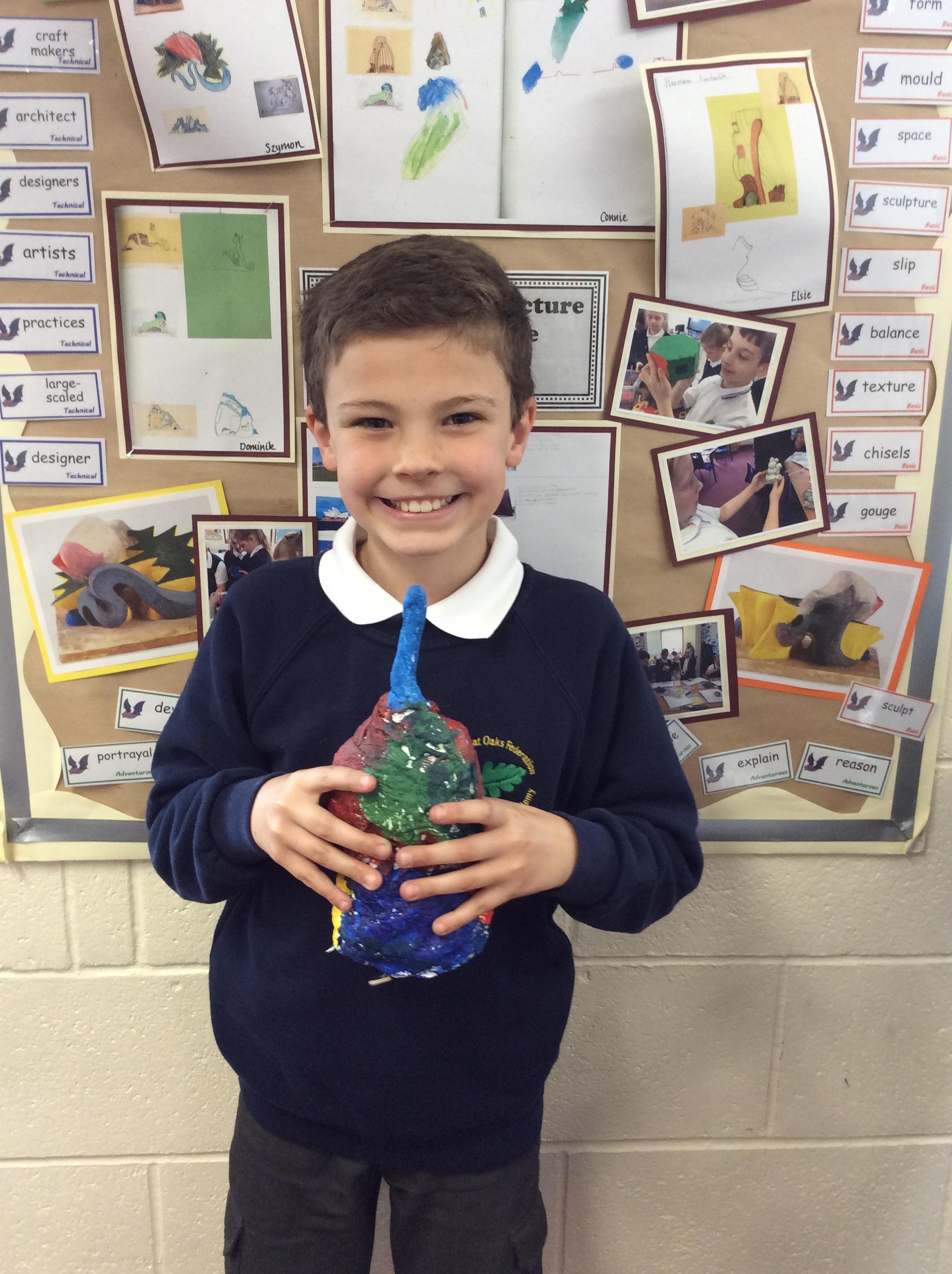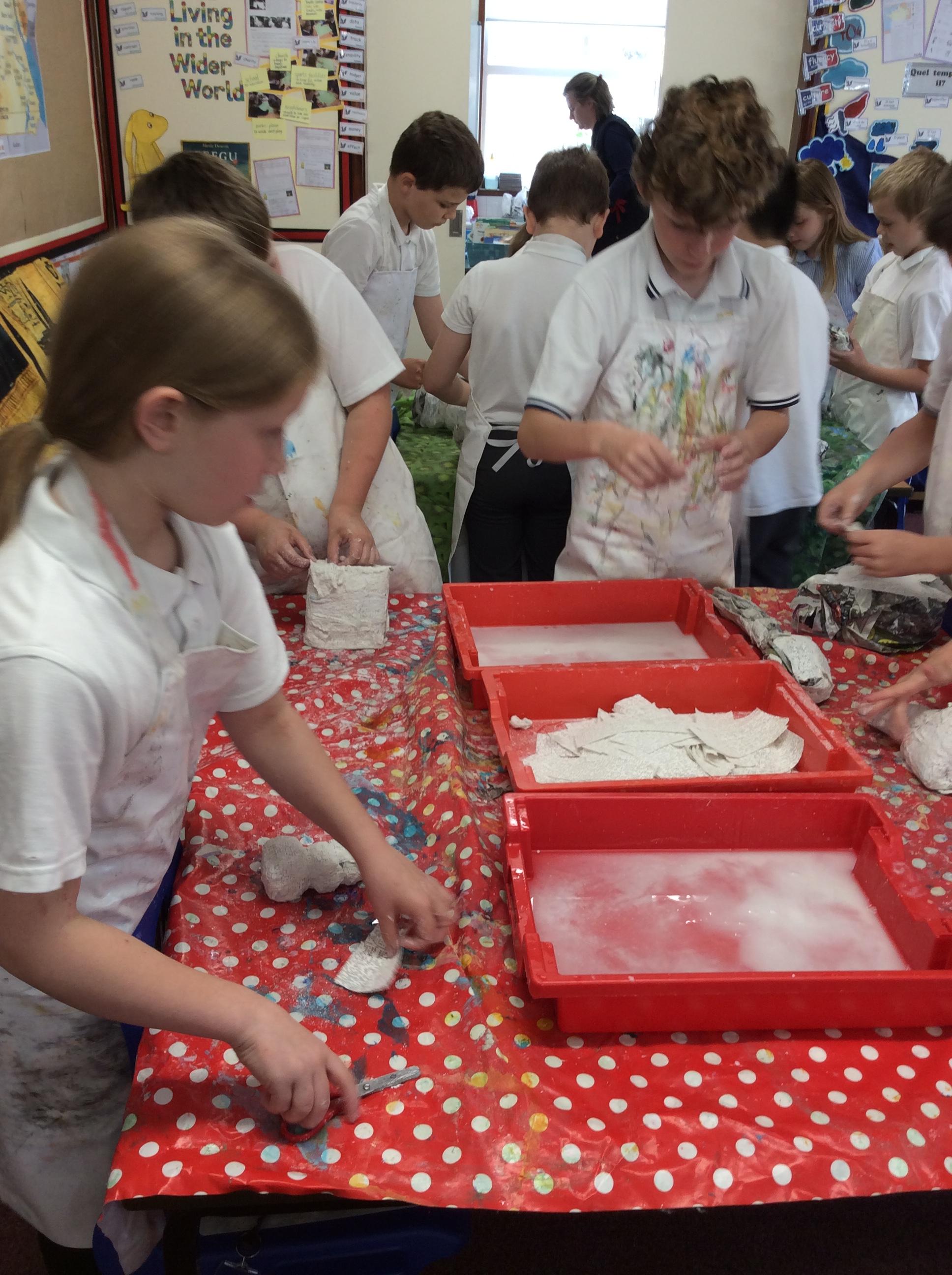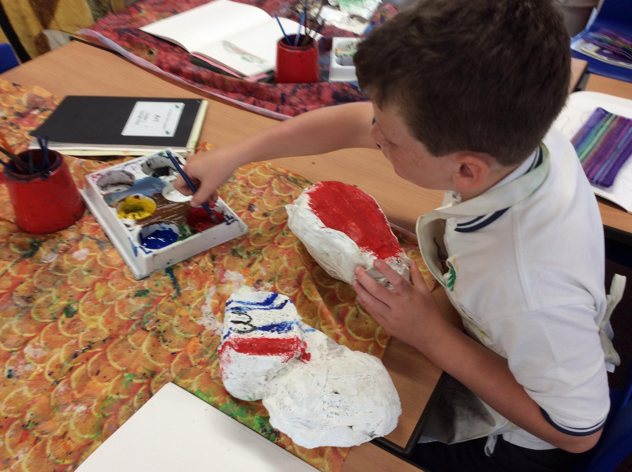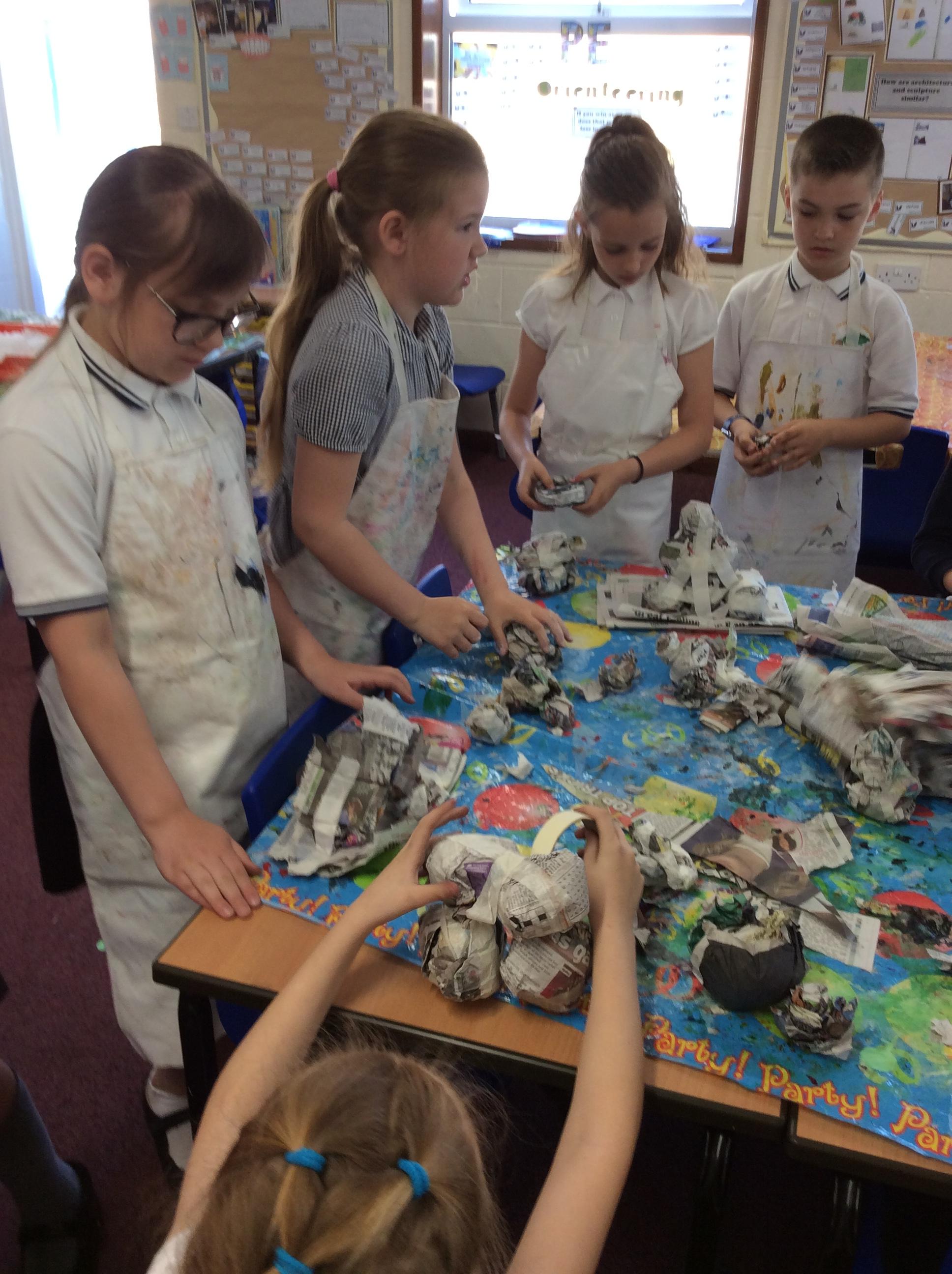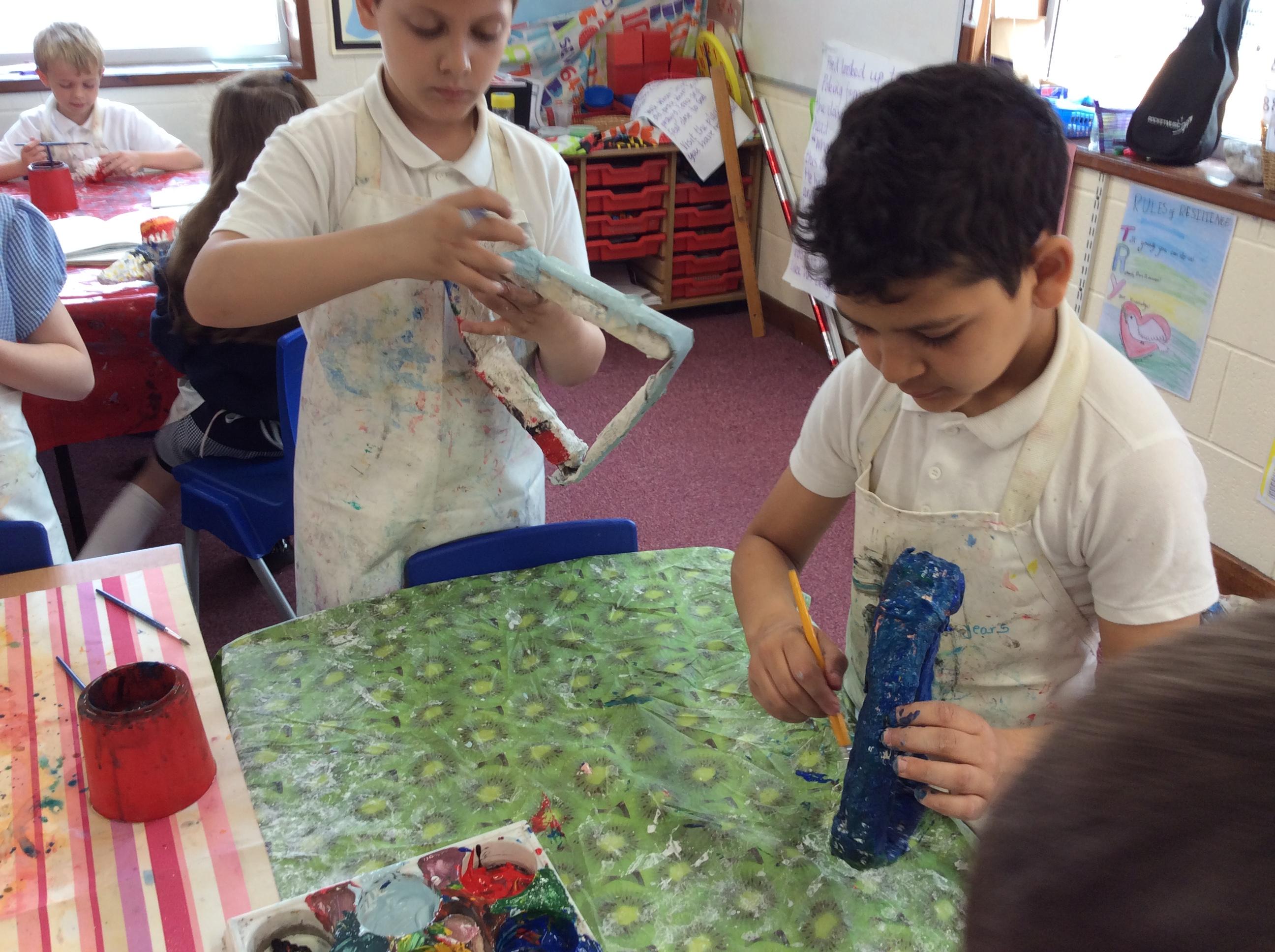 As we end of unit of work on sculpture and architecture, we were proud to share our finished sculptures with one another. After exploring the work of Hermann Finsterlin, sketching our own ideas, creating models using newspaper, adding Modroc to create our sculpture and painting them- we are finally finished! We discussed with our peers the type of place our sculptures would be placed in the world. For some, they would camouflage and blend into their surroundings and others would be bright buildings on the landscape to create conversation and intrigue. Can you identify which are which from our photos?