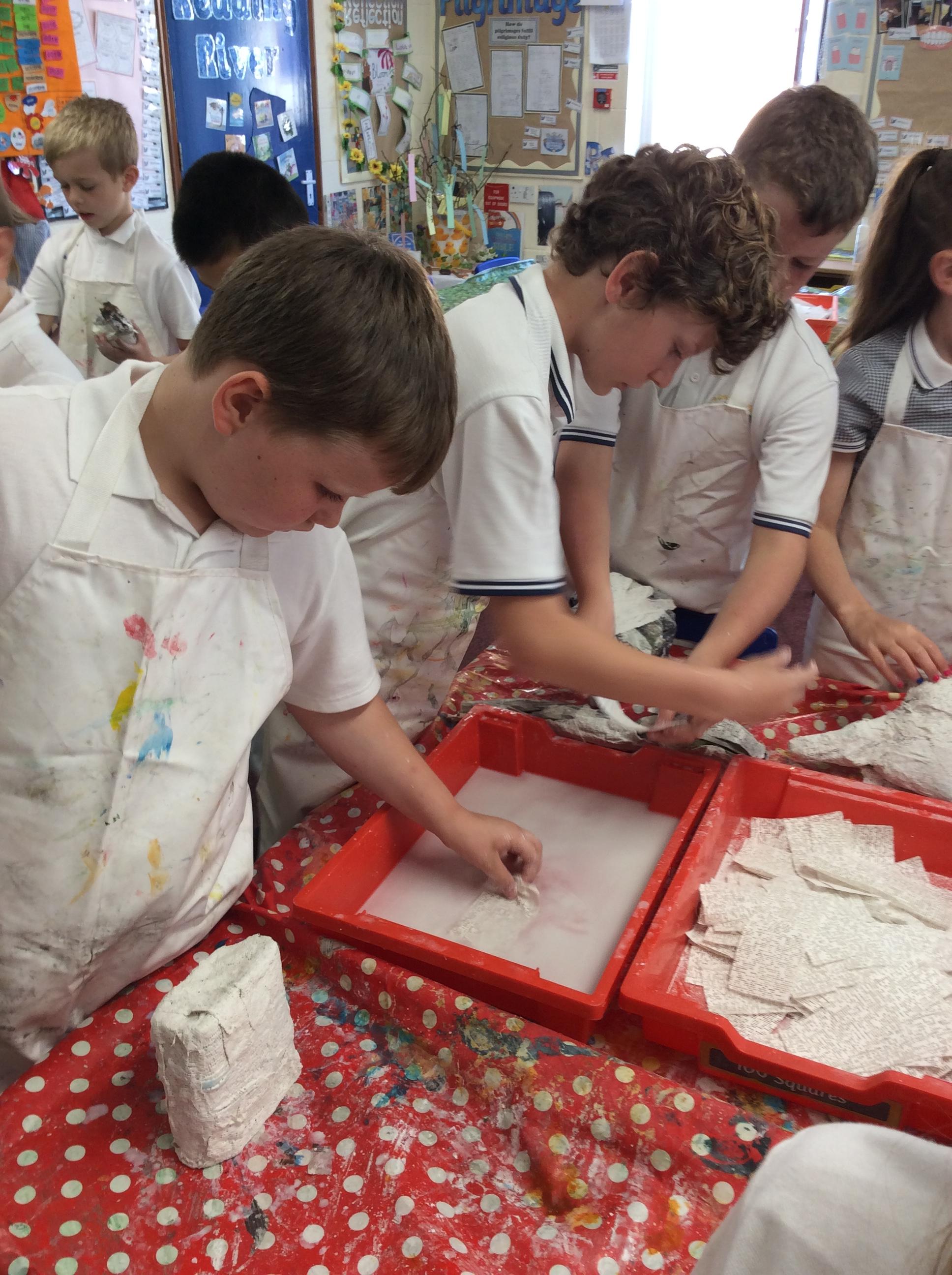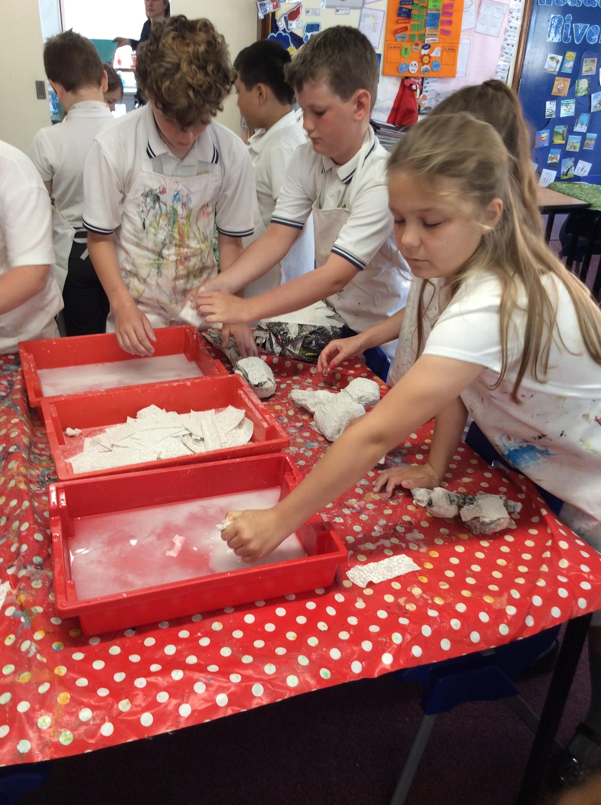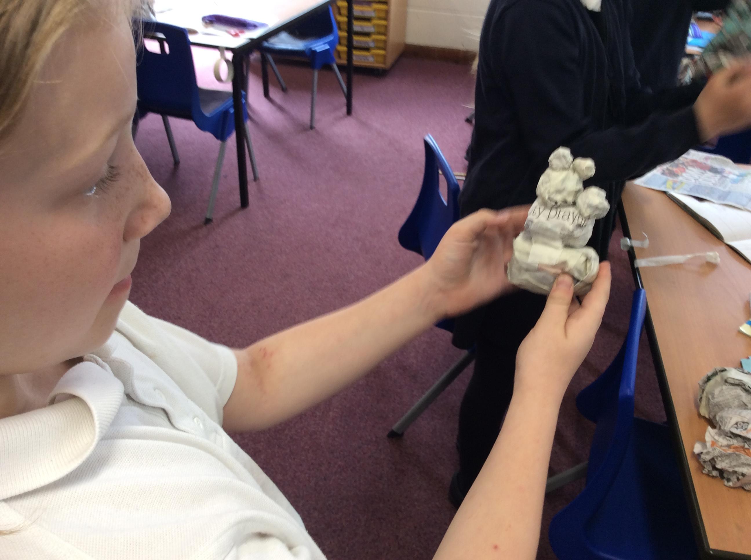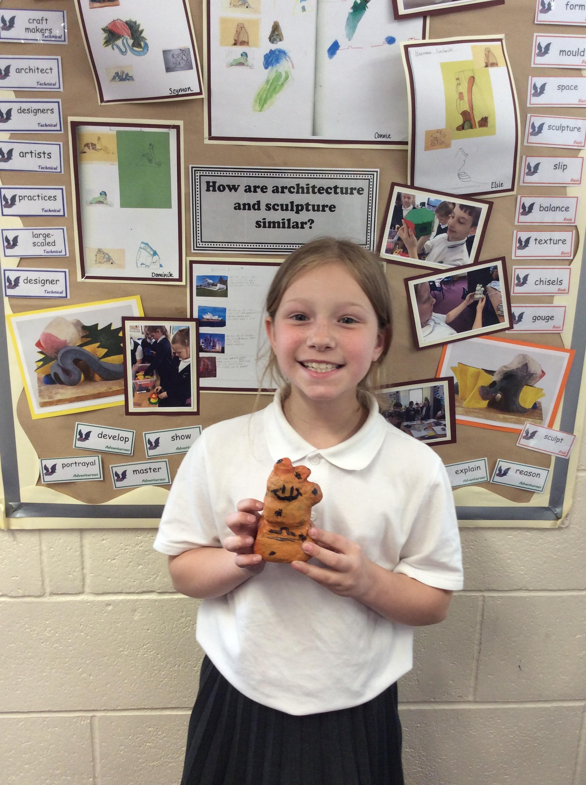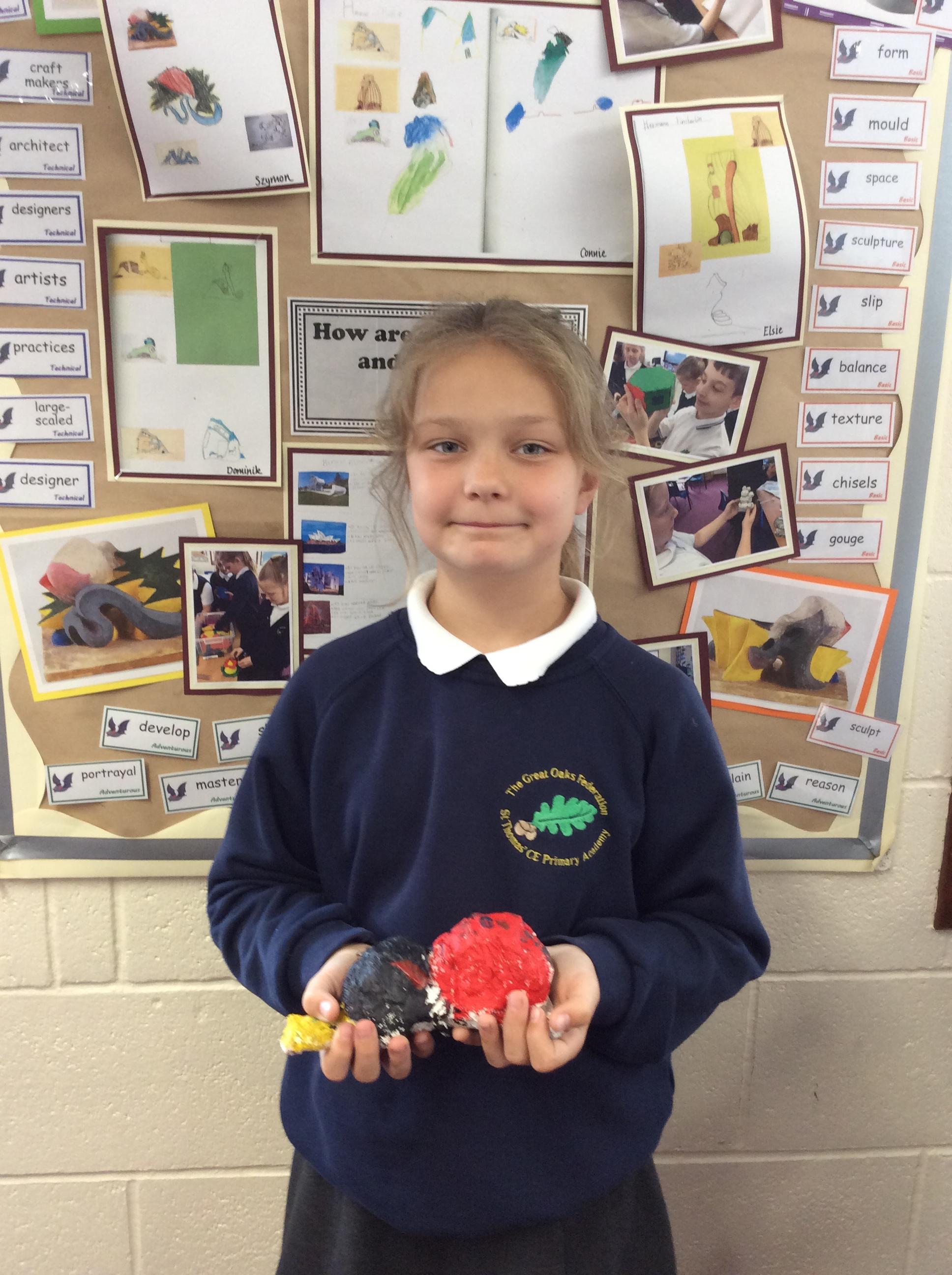 As we end of unit of work on sculpture and architecture, we were proud to share our finished sculptures with one another. After exploring the work of Hermann Finsterlin, sketching our own ideas, creating models using newspaper, adding Modroc to create our sculpture and painting them- we are finally finished! We discussed with our peers the type of place our sculptures would be placed in the world. For some, they would camouflage and blend into their surroundings and others would be bright buildings on the landscape to create conversation and intrigue. Can you identify which are which from our photos?
