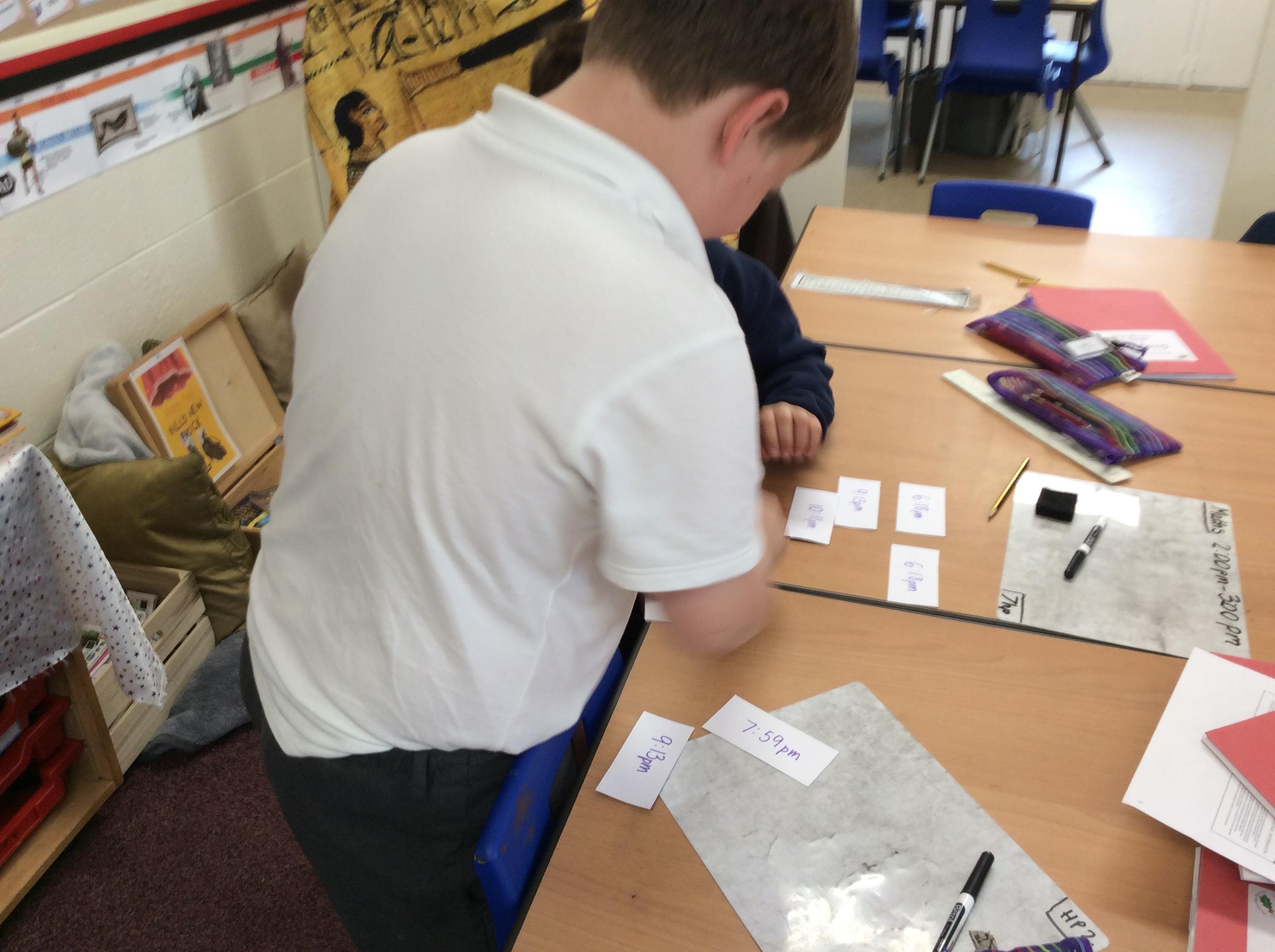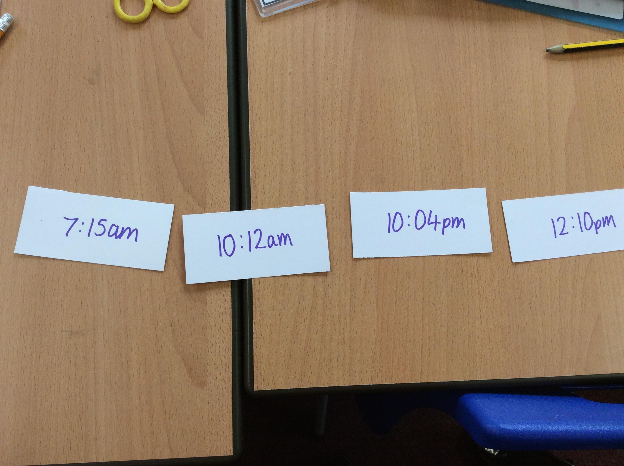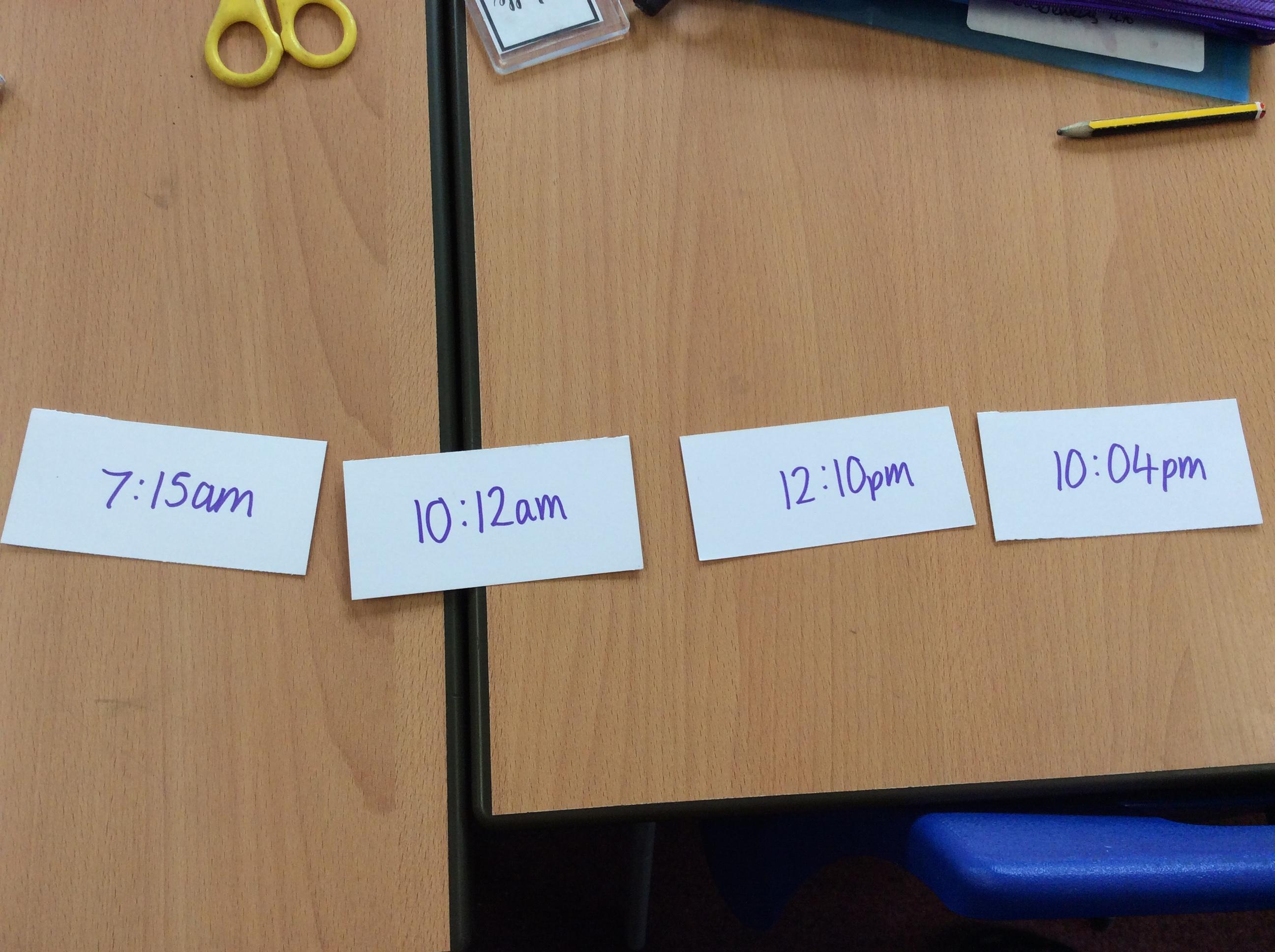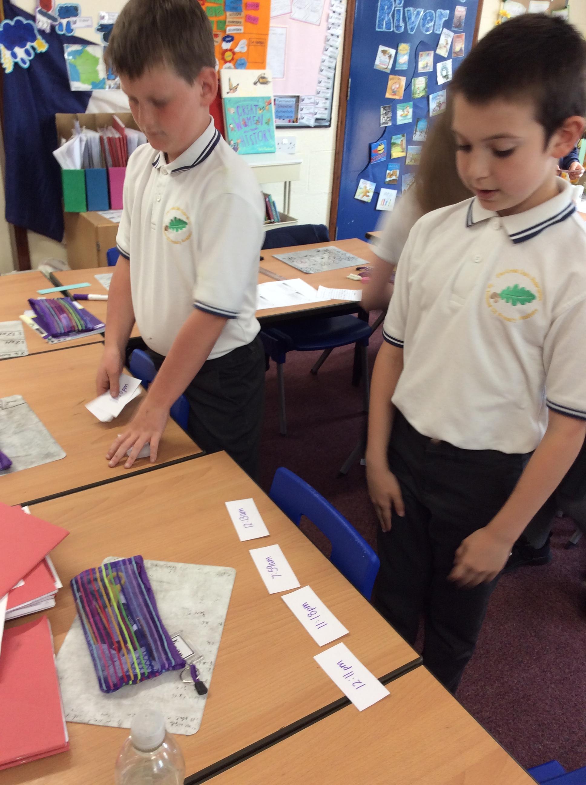 After recalling telling the time to the nearest minute last week, we have been looking at showing if it is morning or afternoon by using am and pm. We began our week by sequencing times correctly looking at the am and pm, thinking carefully about which order they come in if midnight is 12am and midday is 12pm.