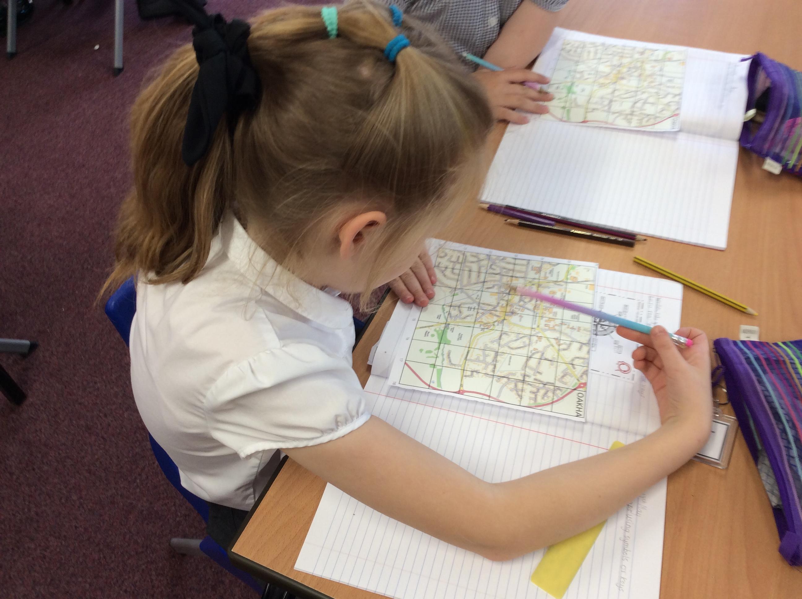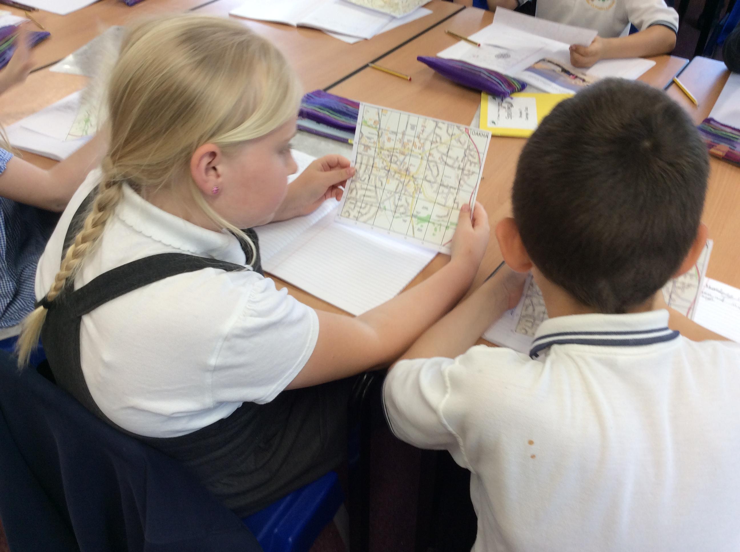 Revisiting learning from Autumn term, we worked again as cartographers. For retrieval, we identified Ordnance Survey symbols and then put this knowledge into practice as we explored maps. We identified key places of interest and then learnt how to use four figure grid references to locate key places of interest. We learnt how to use Eastings, the numbers than run form left to right on the map, first and then Northings, the numbers that run from South to North.