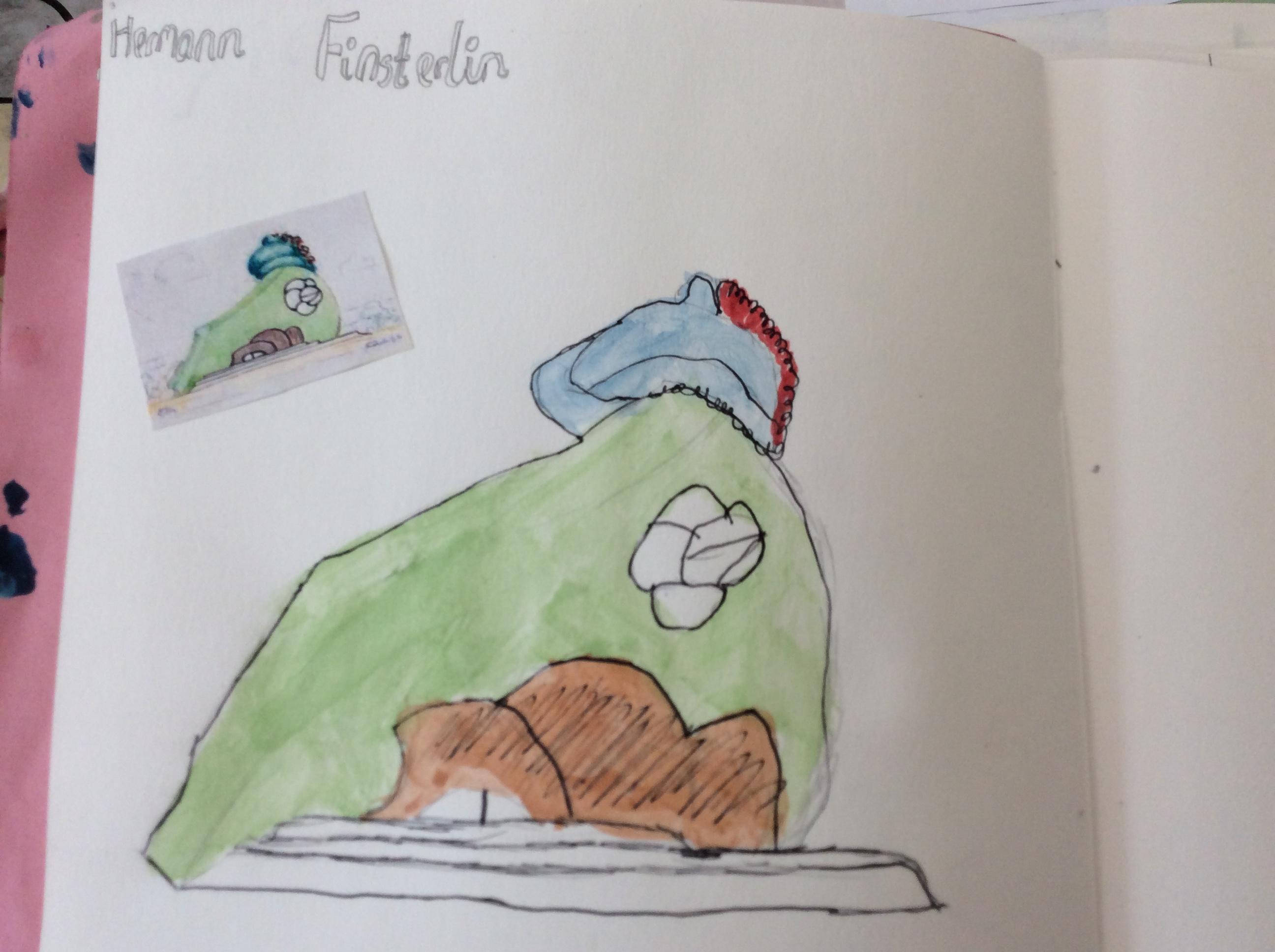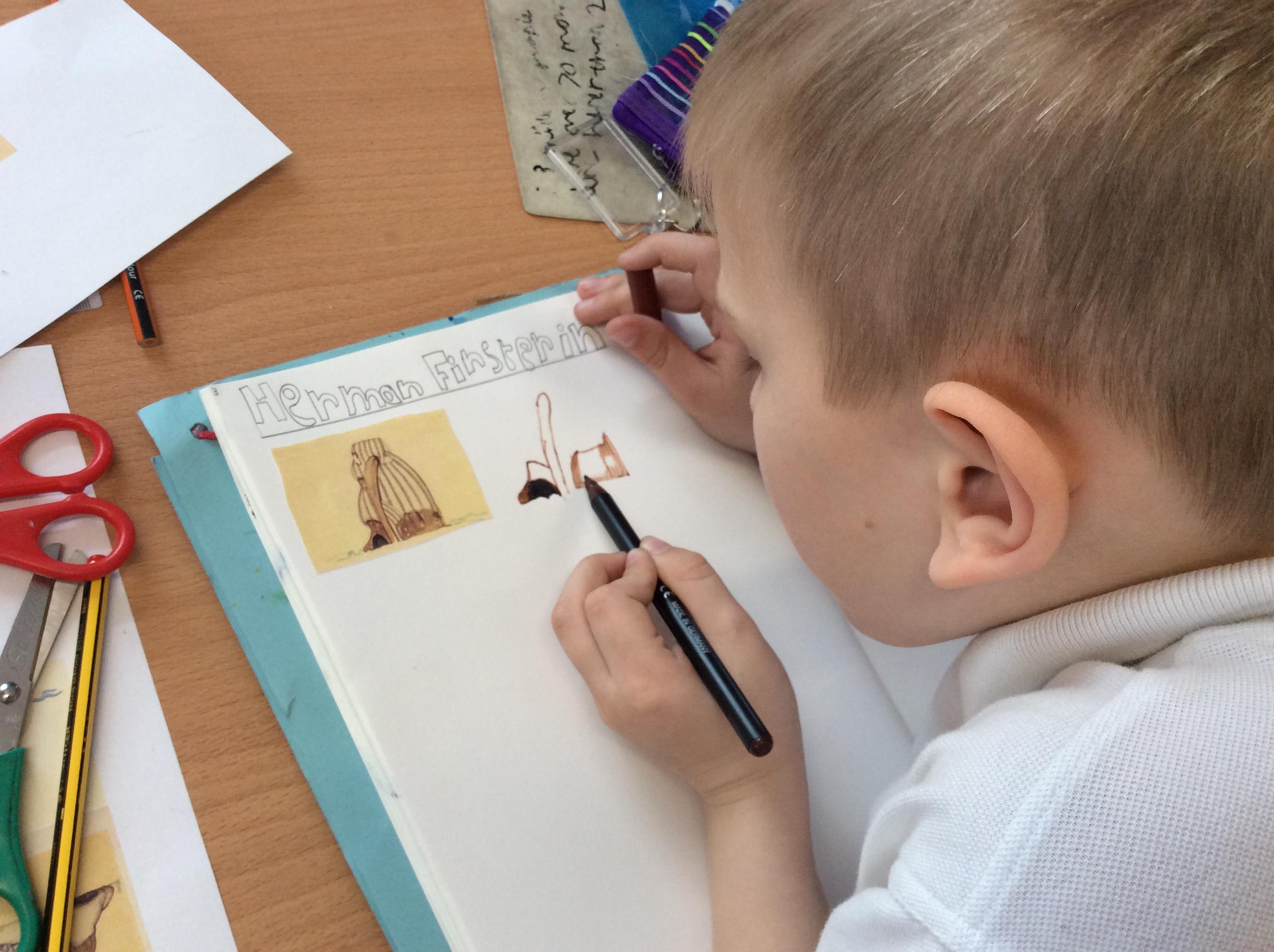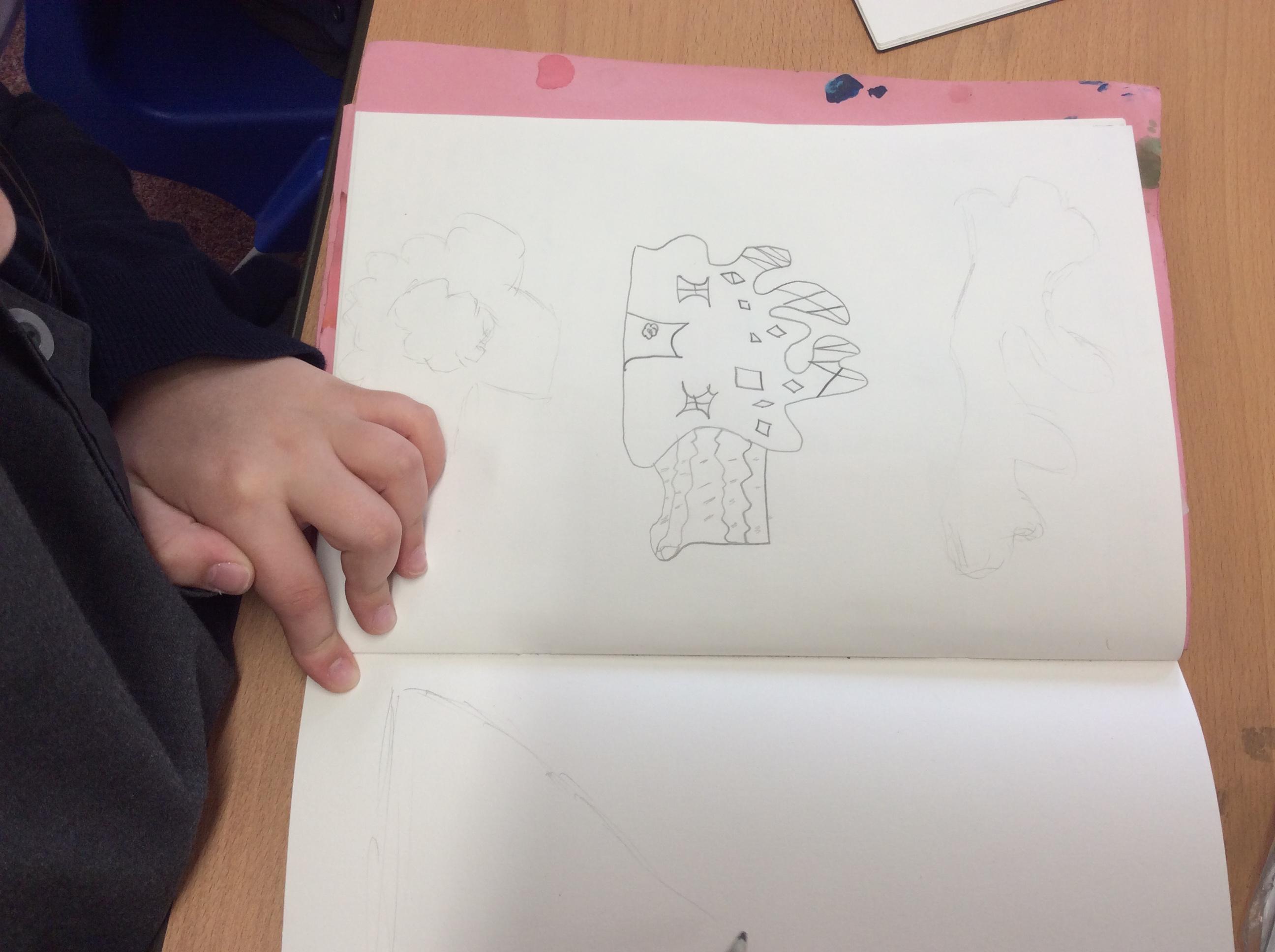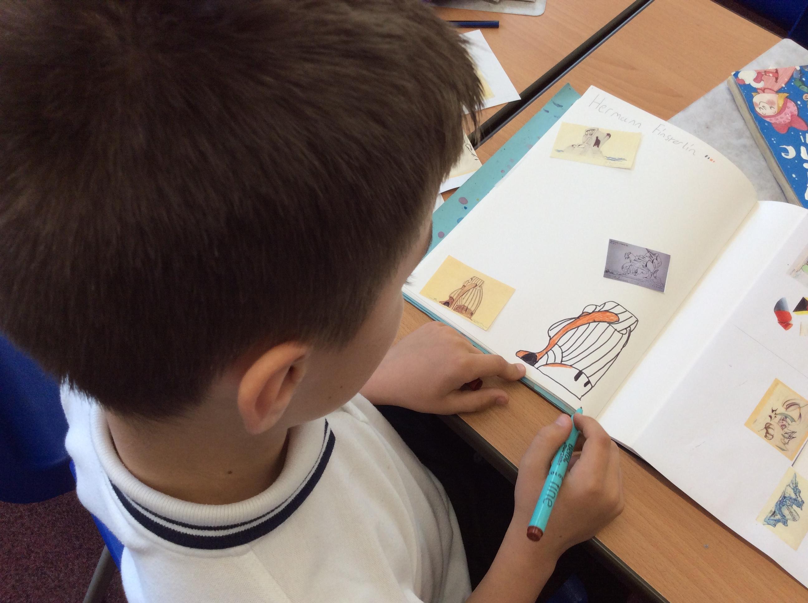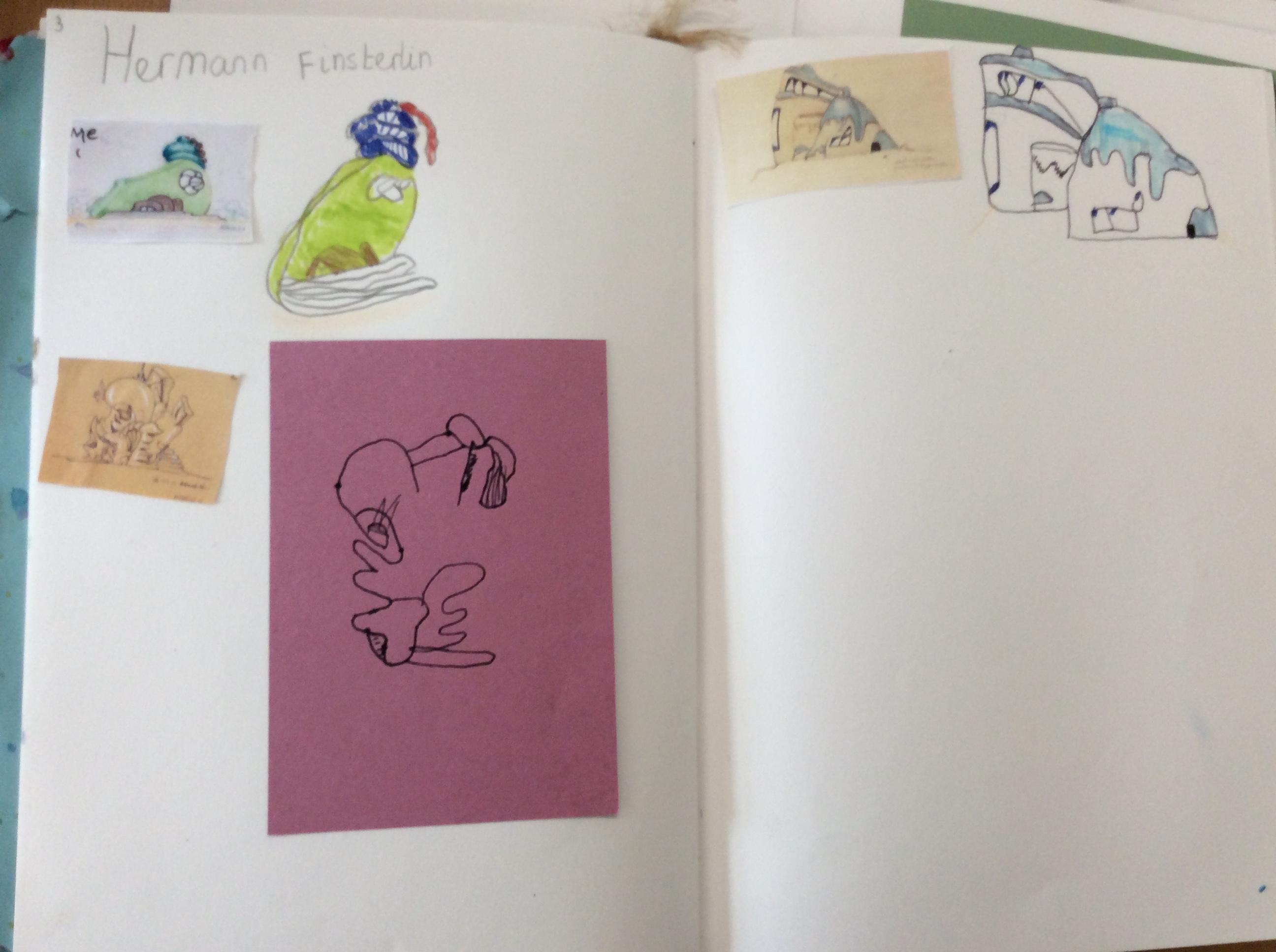 This term we are exploring the work of German architect Hermann Finsterlin. Looking at his sketches we noted his use of curved lines, 3D shapes and colour. Commenting on his somewhat crazy designs, we explored how he had created the sketches by creating the lines for ourselves using different media, similar to Finsterlin.
