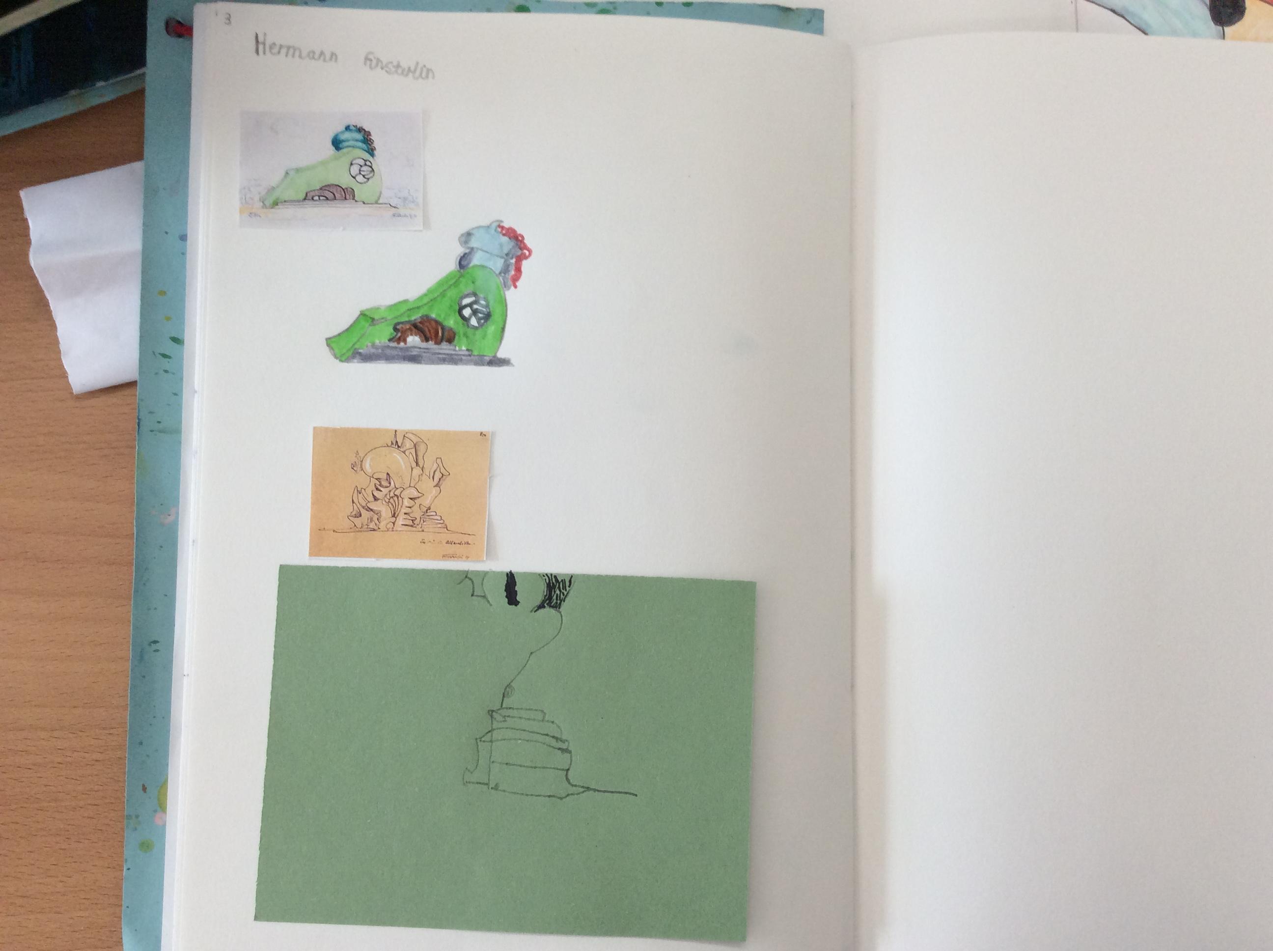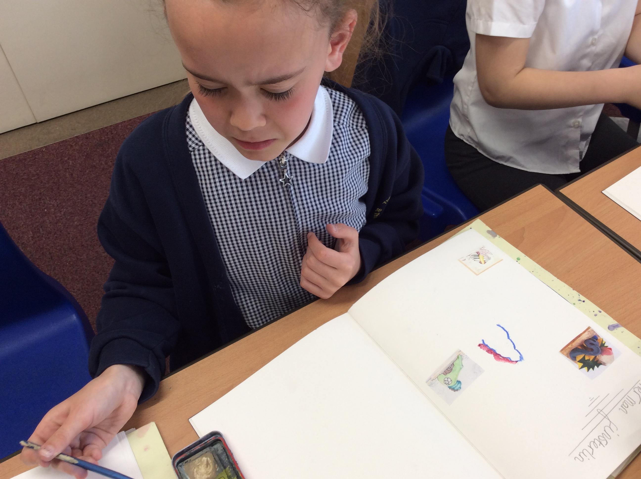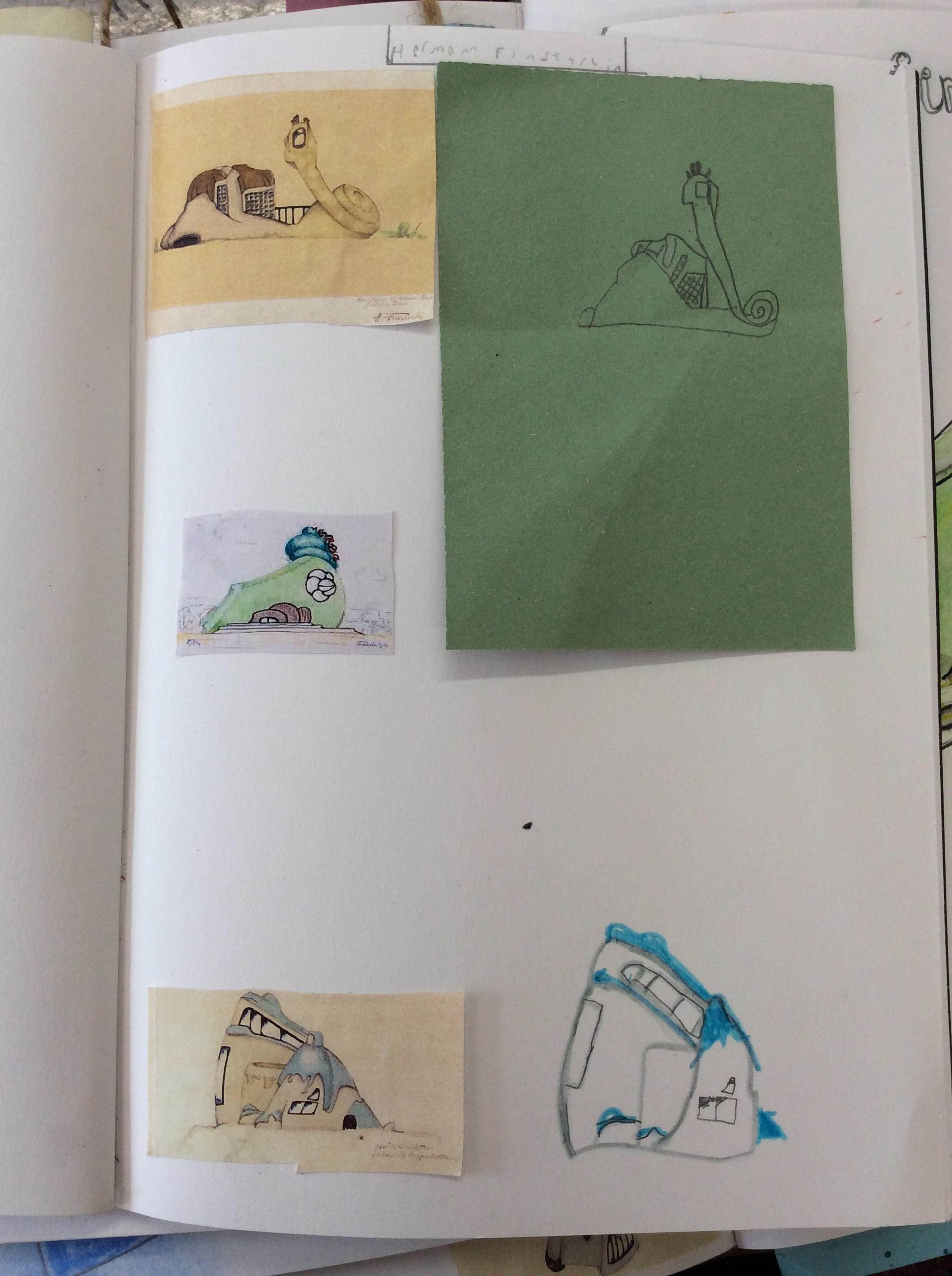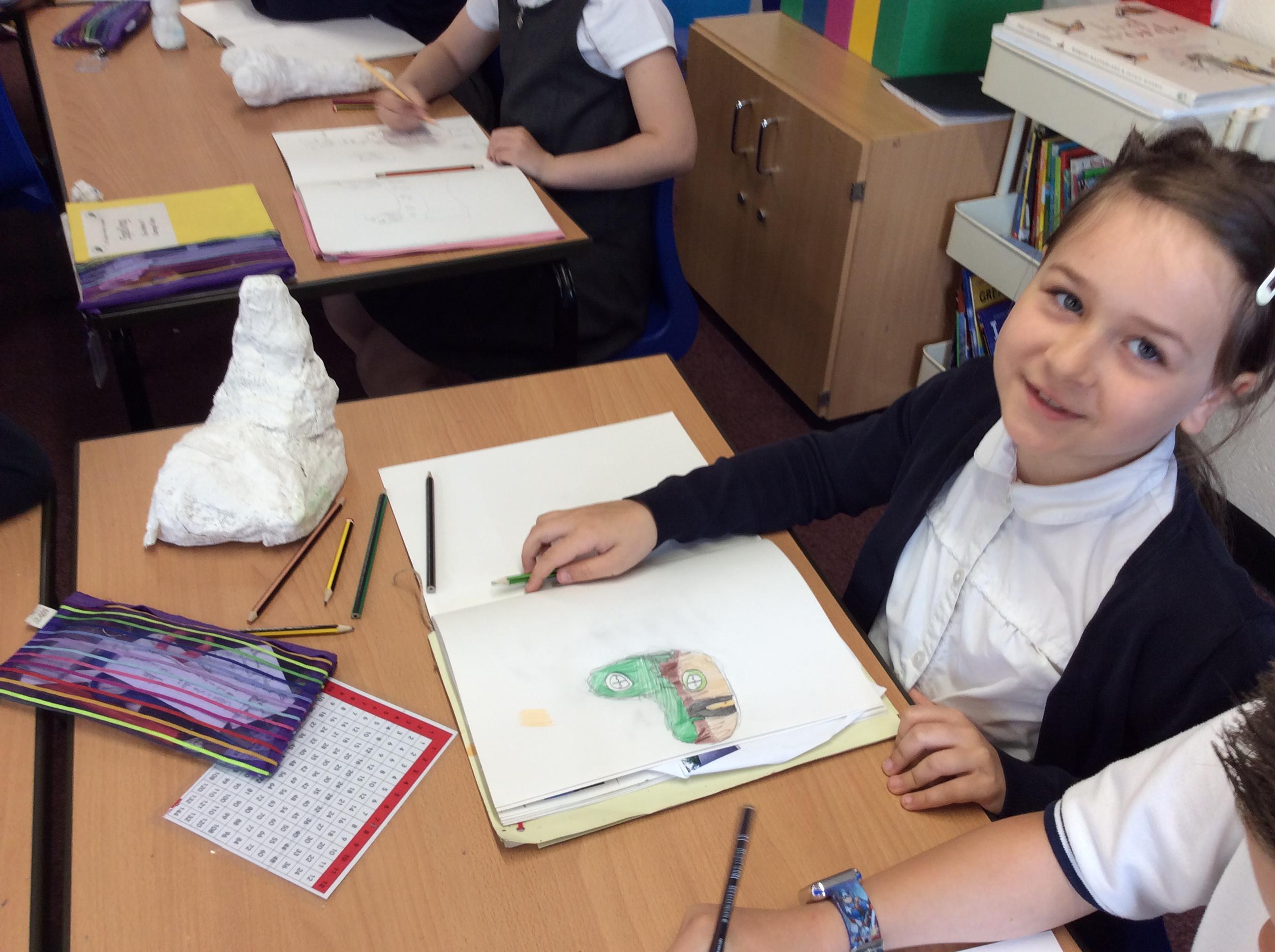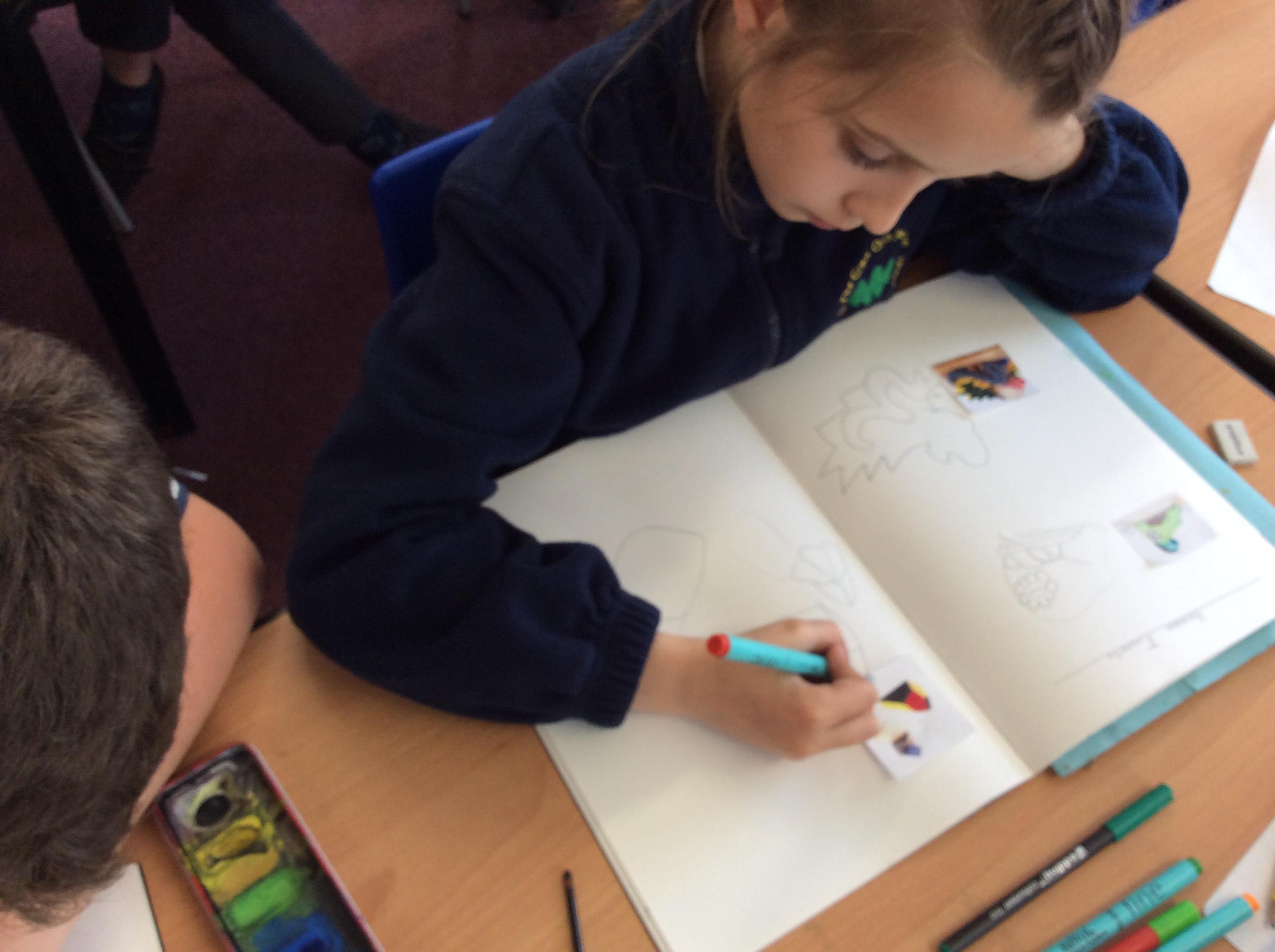 This term we are exploring the work of German architect Hermann Finsterlin. Looking at his sketches we noted his use of curved lines, 3D shapes and colour. Commenting on his somewhat crazy designs, we explored how he had created the sketches by creating the lines for ourselves using different media, similar to Finsterlin.