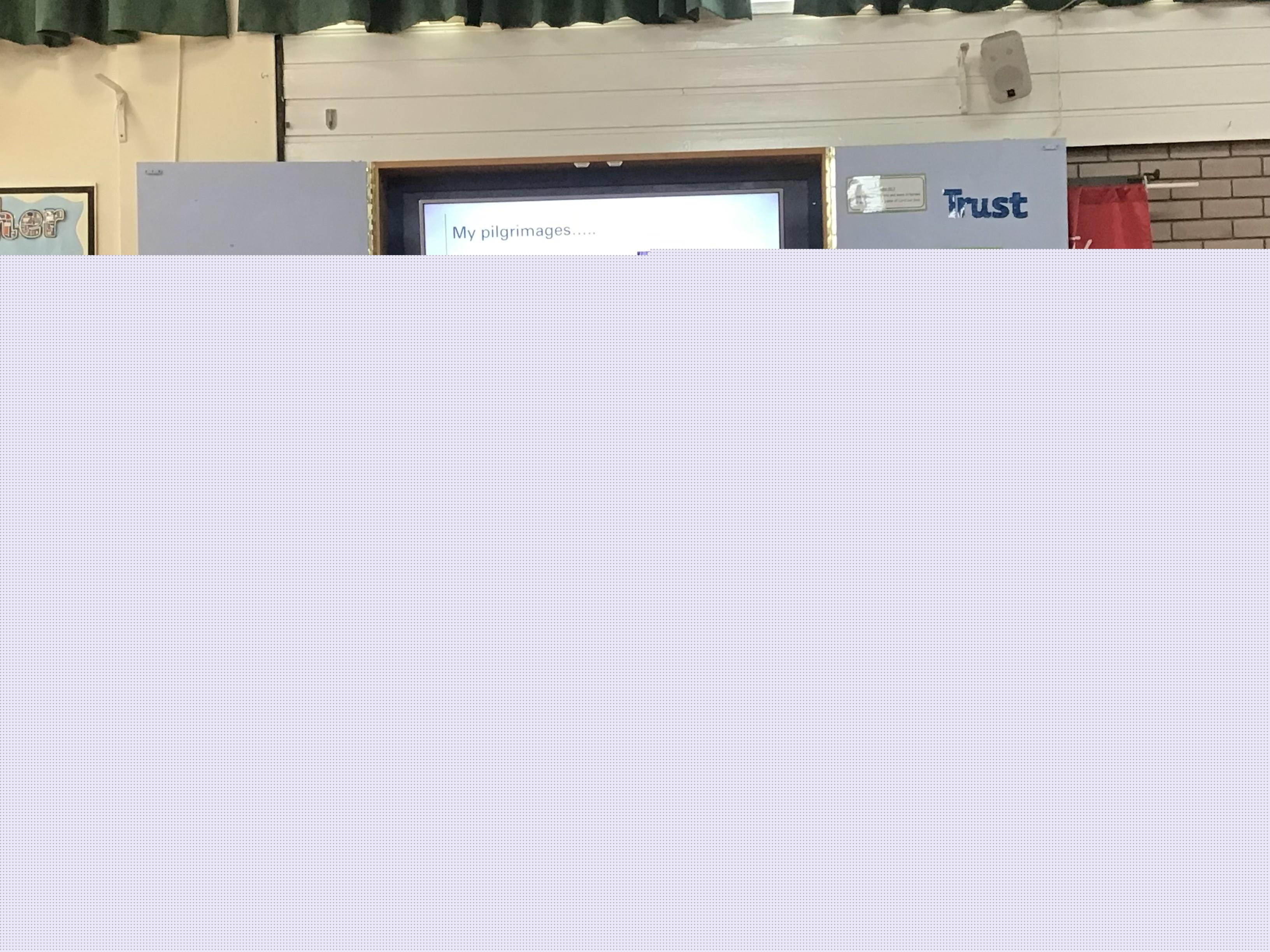 After identifying what a Pilgrimage is and who might go on one, we were lucky enough to have a visit from Reverend Jane. She shared with us her own experience of Pilgrimage when she visited the Holy Island in Northumberland. The journey from the mainland was difficult at times as they walked to the island across the seabed at low tide. The risk of the tide coming in at any time, means the Pilgrim has to stay focussed and move with some speed. During her visit, she remained silent on this journey, allowing her time to focus on the journey and being with God. She also shared some of her knowledge about Walsingham, a Christian Pilgrimage site that we will visit next term.