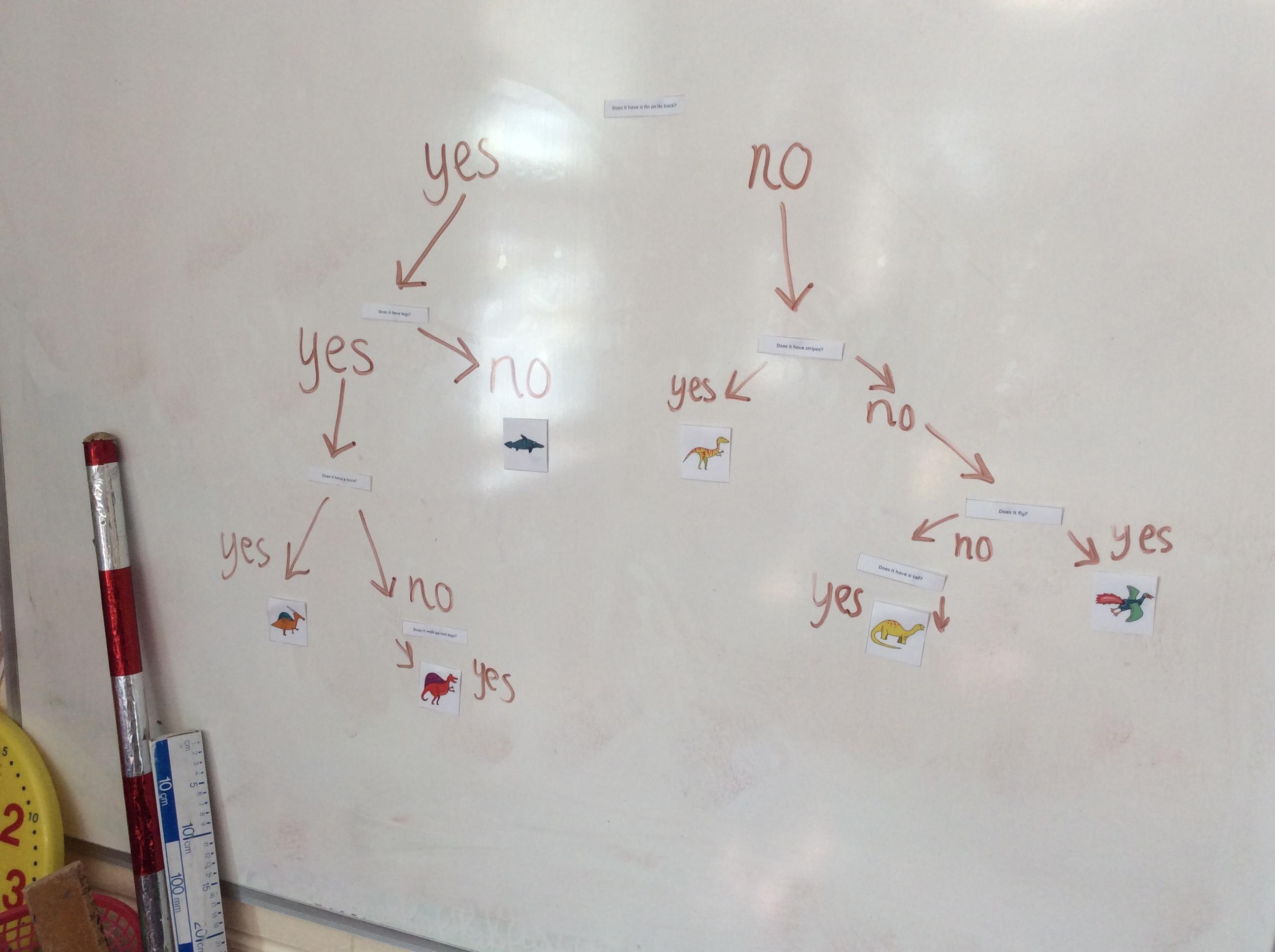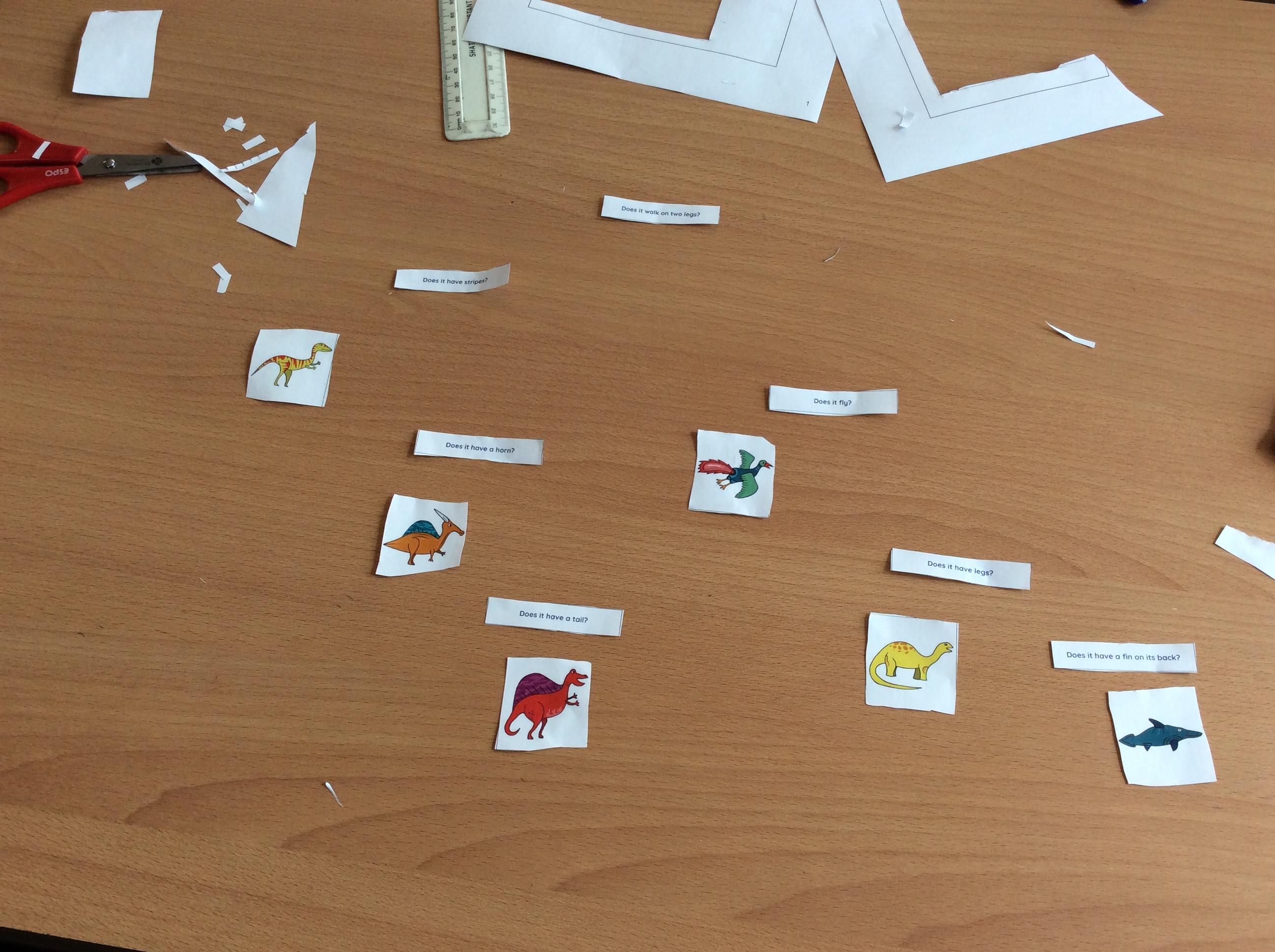 In Computing, we have been exploring yes and no questions that are asked to enable us to sort objects according to their attributes. We looked at suitable sentence openers, like 'Is it...?' or 'Does it..?' to enable us to get a yes or no answer. We then sorted a group of dinosaurs according to their features, selecting and answering an appropriate answer to enable us to sort. This is the start of our creation of branching databases.