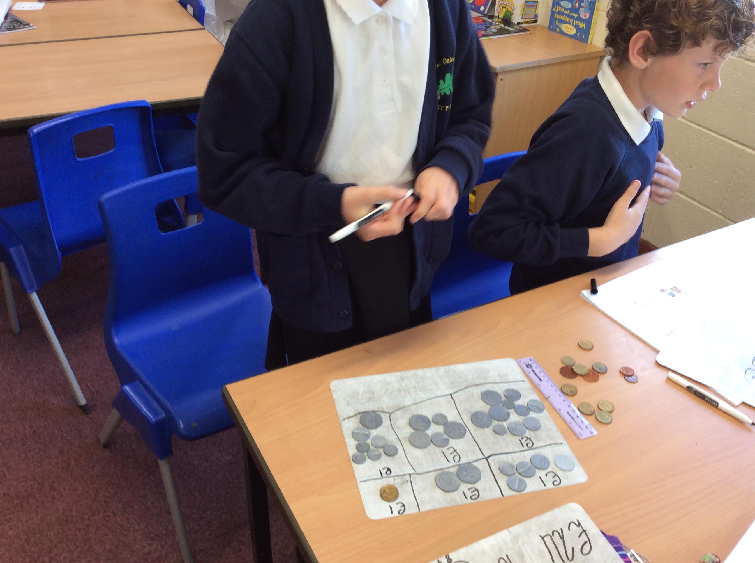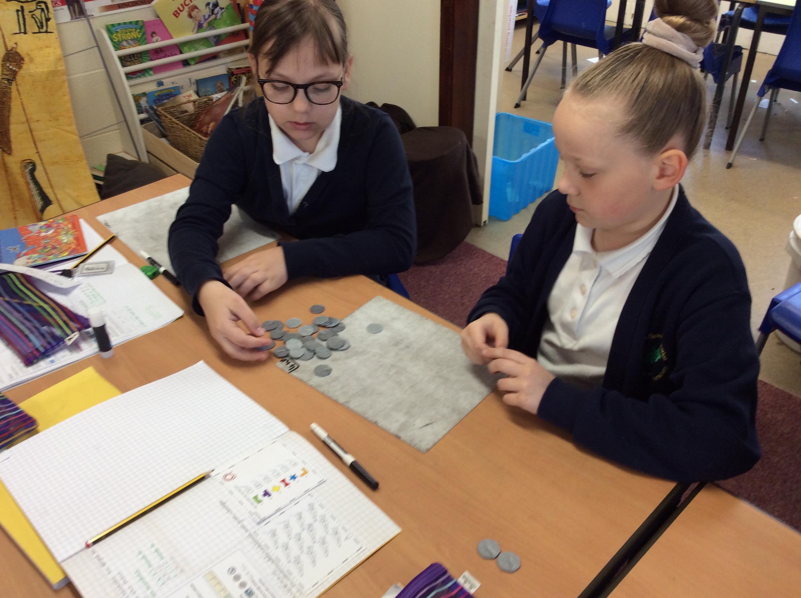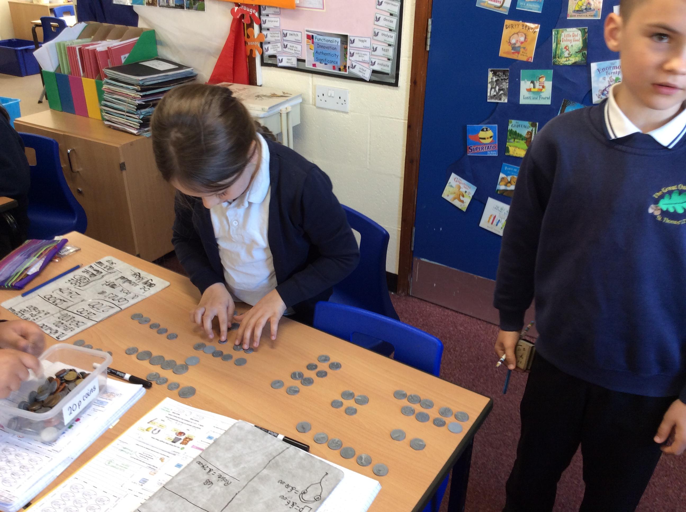By exploring the different ways of making amounts, we were able to identify how we can then partition amounts in different ways, which can help when we are giving change.