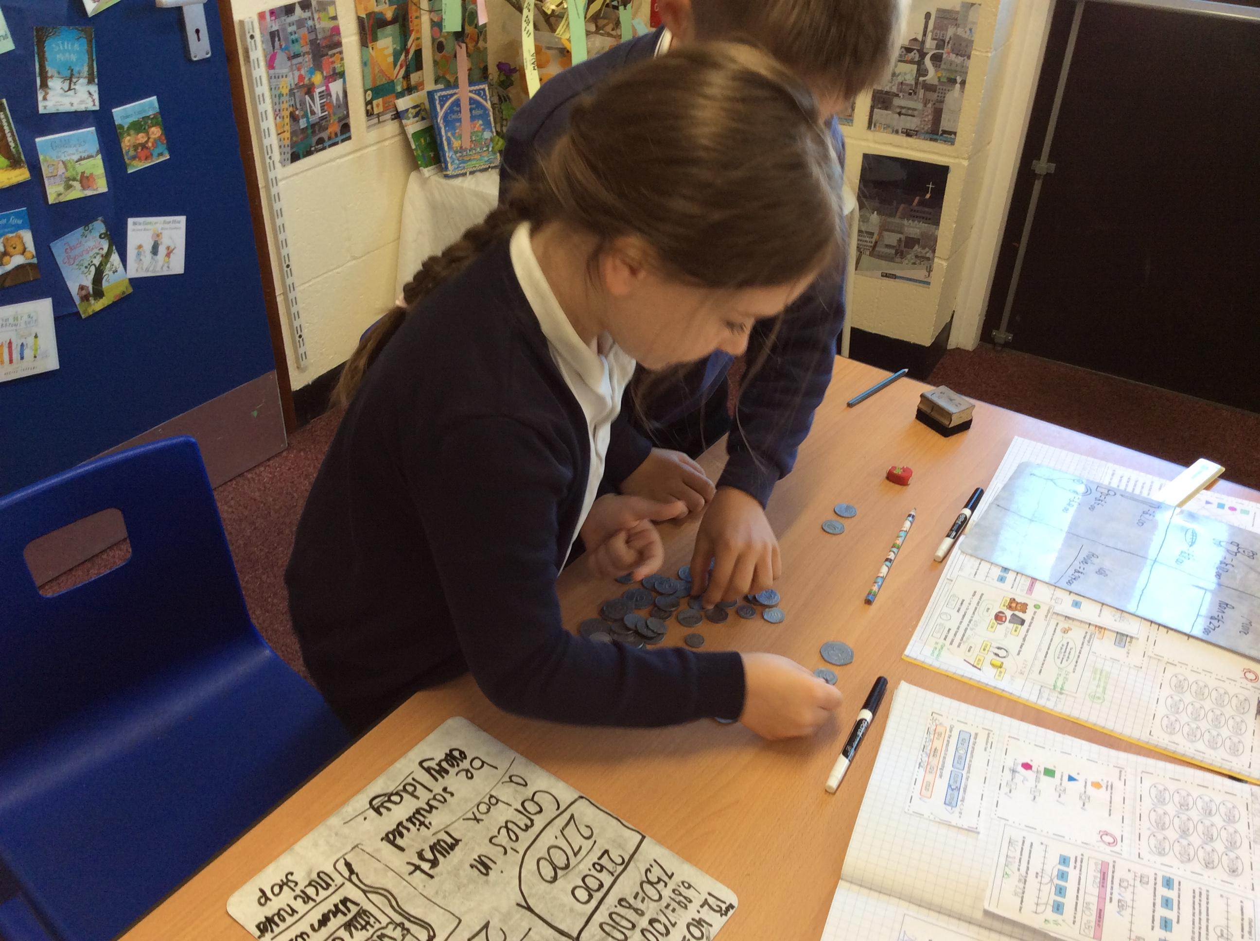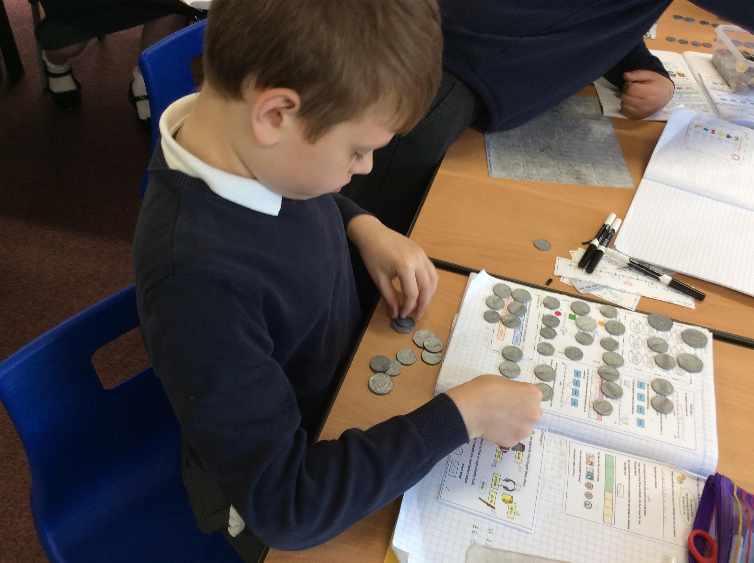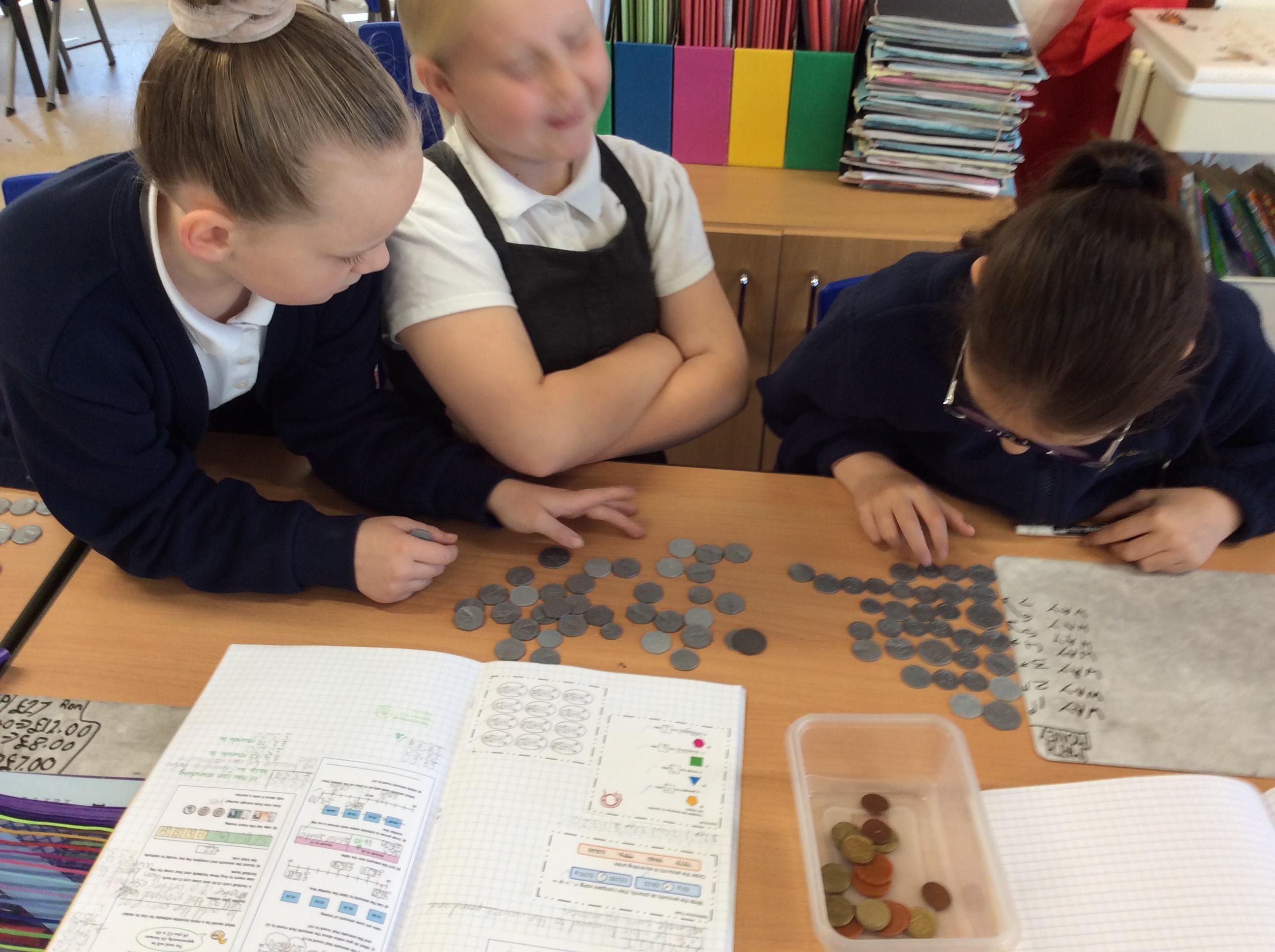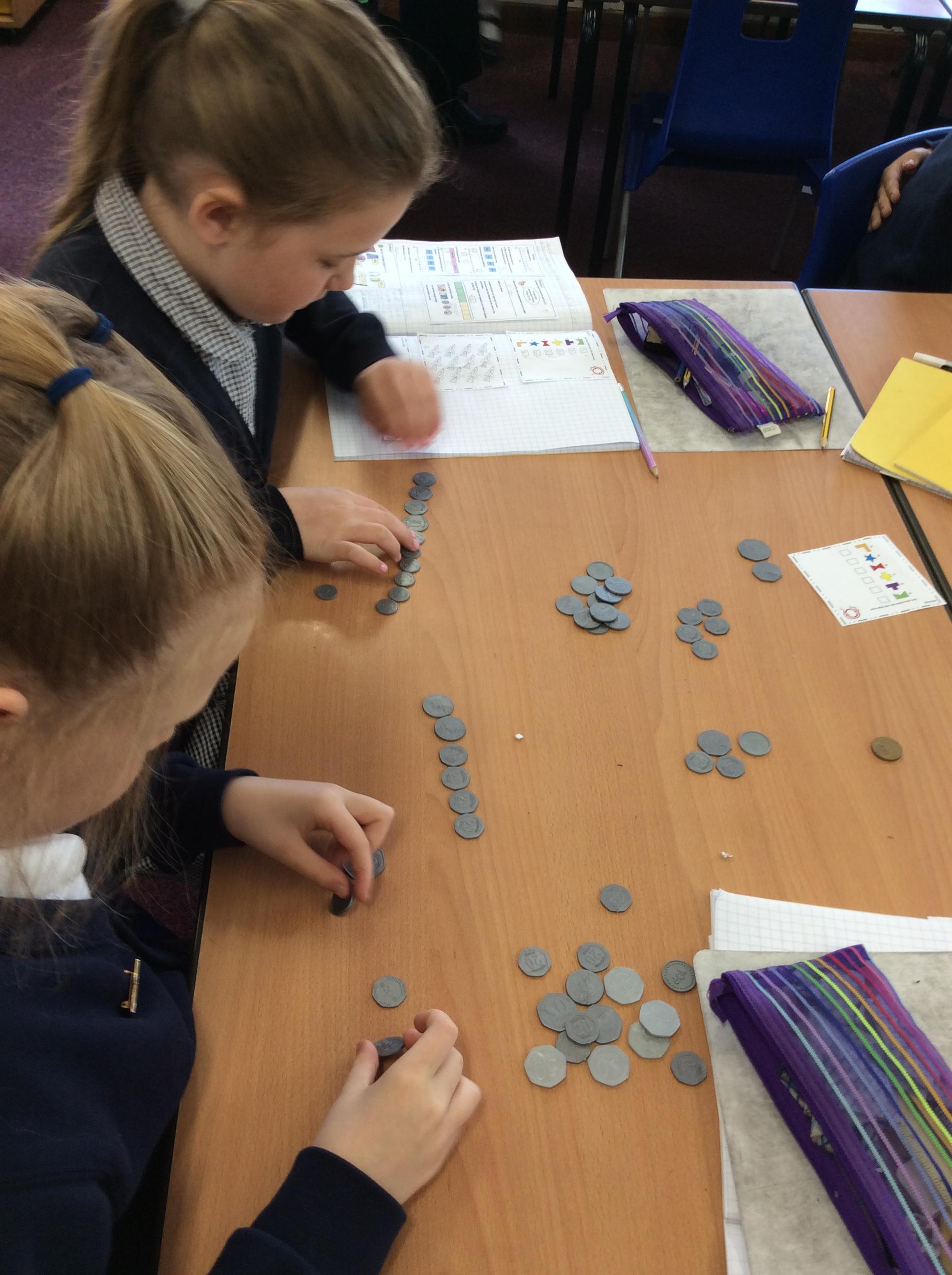 In Maths this week, we have been recalling all that we know about money. Making connections between pounds and pence and our work on decimal numbers, we were able to compare, order, estimate by rounding and calculate amounts. Focusing on the value of each coin, we explored the different ways of making £1 using different coins. Could it be made with 1,2,3 and then 4 coins? How many different ways could we find?