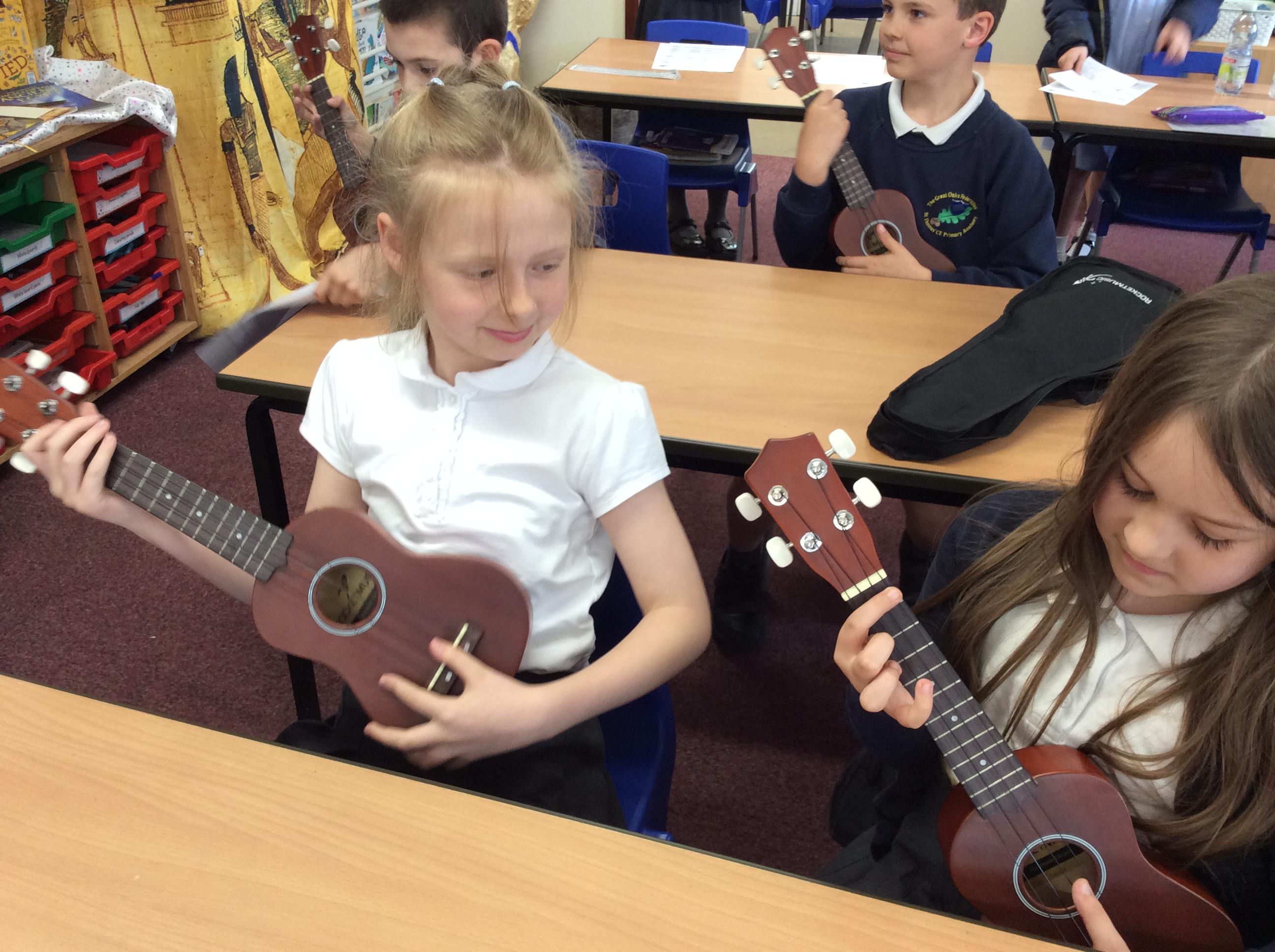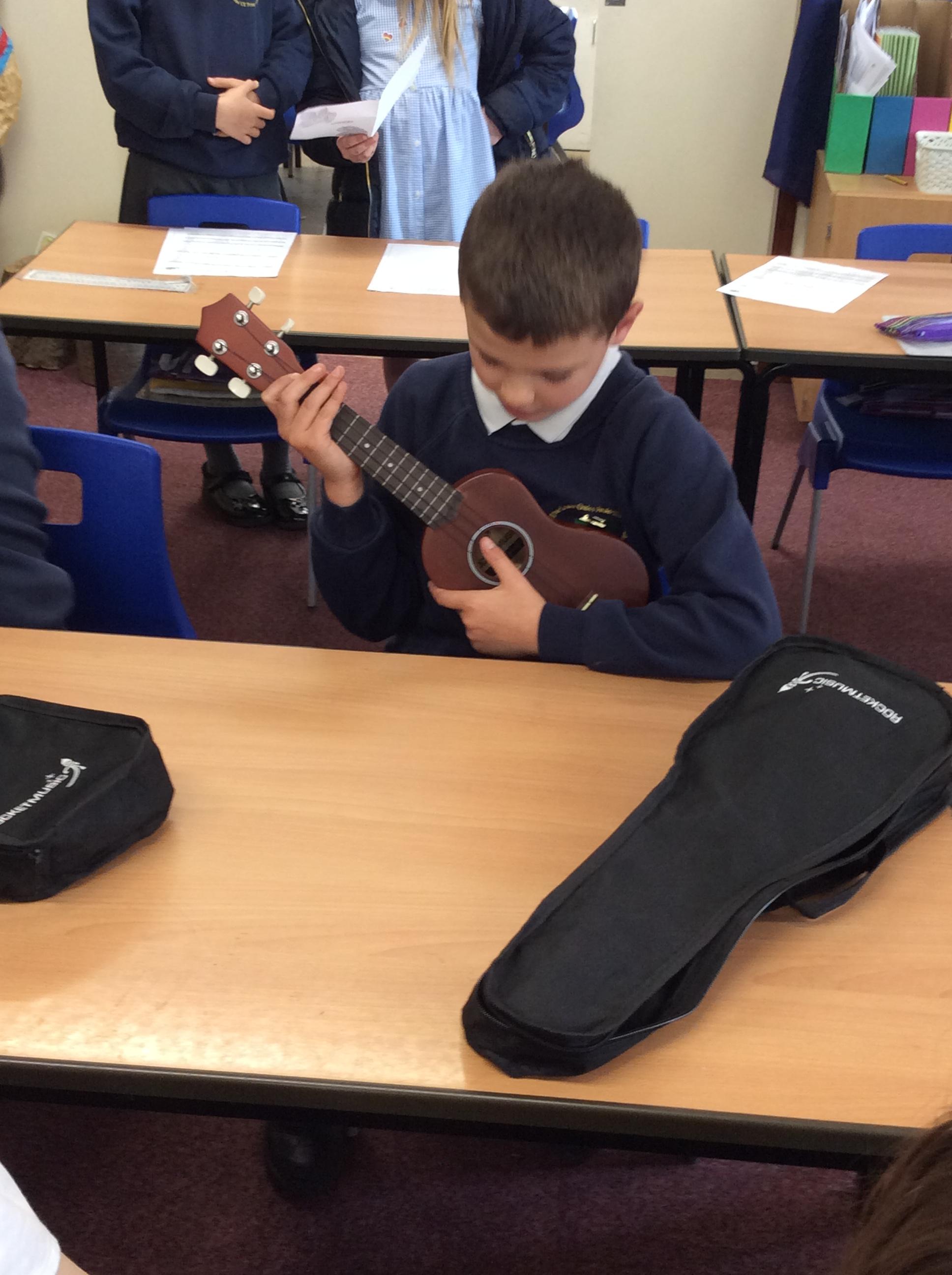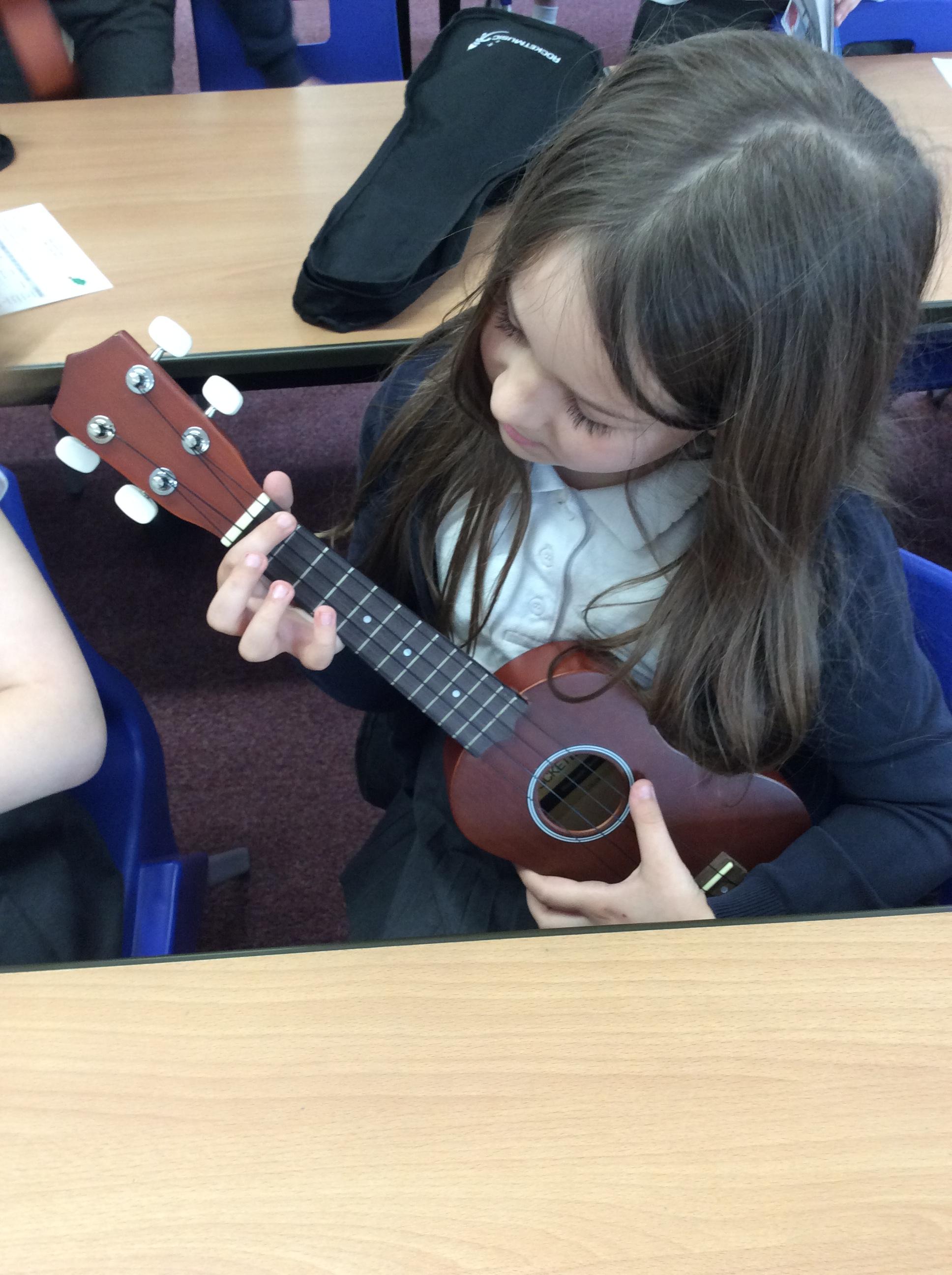 Music this term sees us continuing our learning of Ukuleles looking at major and minor chords. We began by recalling what we knew and how to hold it correctly. We also revisited Science learning from the Autumn Term as we discussed how the sound is made by the strings vibrating after being strummed or plucked.