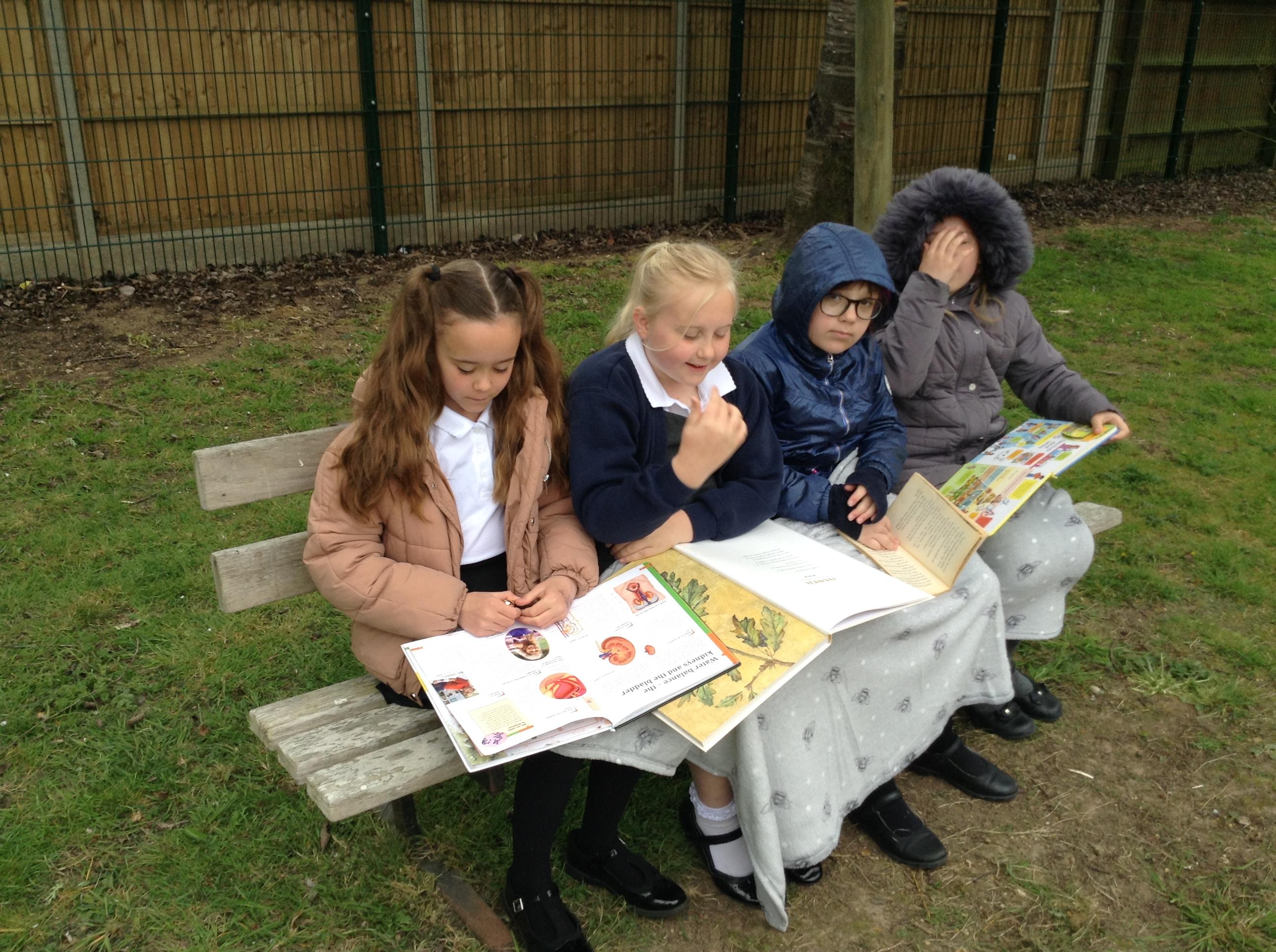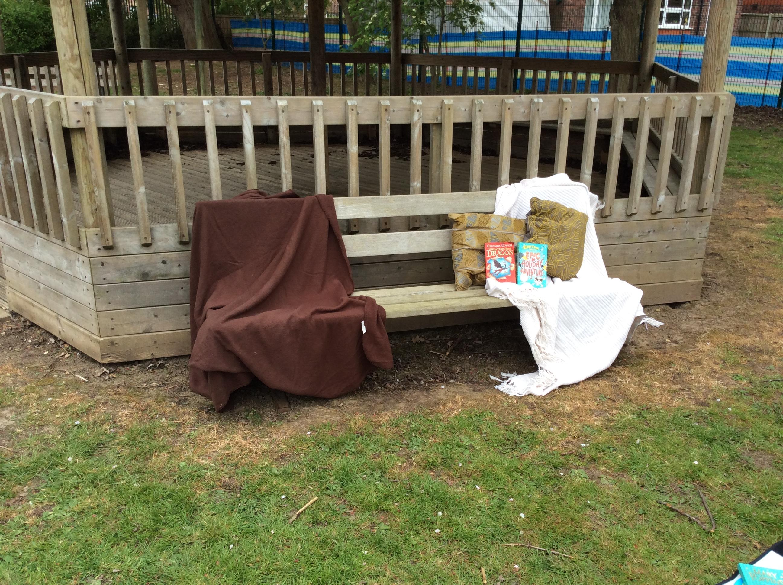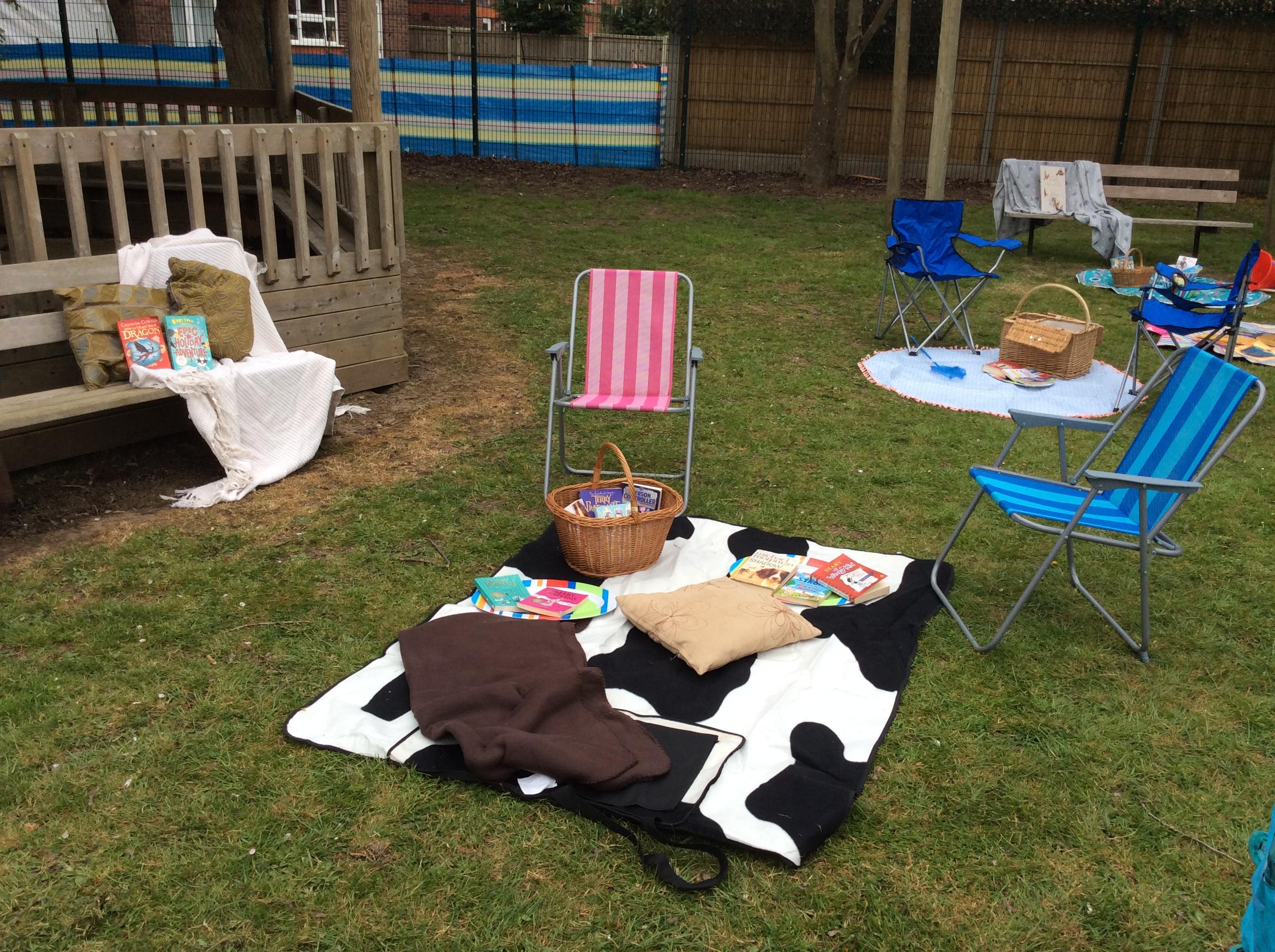 This week we had a lovely surprise as a reading picnic, or 'booknic' was set up for us on the field. We went outside and enjoyed sharing books together, reading and discussing books with friends or sitting quietly to get a few chapters ahead with the book we had already been enjoying at home!