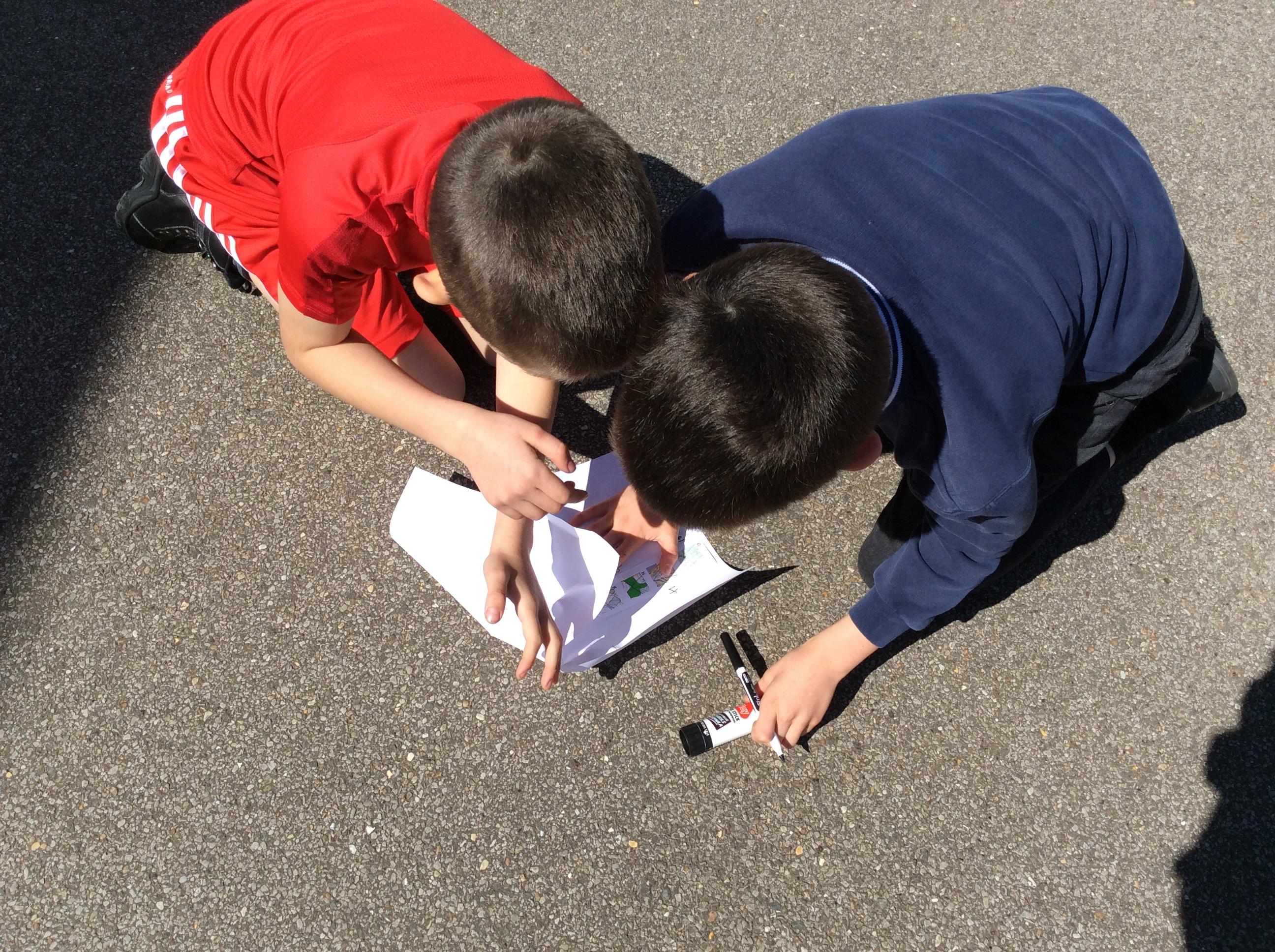 We began our orienteering this term, by working in groups to memorise maps. We each had a set of pieces from a map and after memorising one, had to run to the other end of the playground to see which was the matching image- taking notice of the number next to it. We then ran back and noted the number down, this continued with us each taking turns to work as a team. After completing them all, we were given the pieces of a map cut up and had to put them back together to create the map of our school grounds.