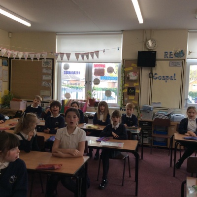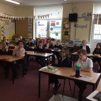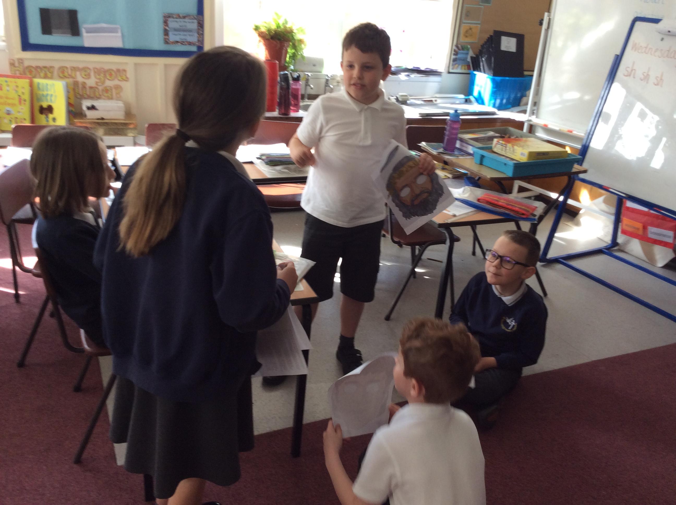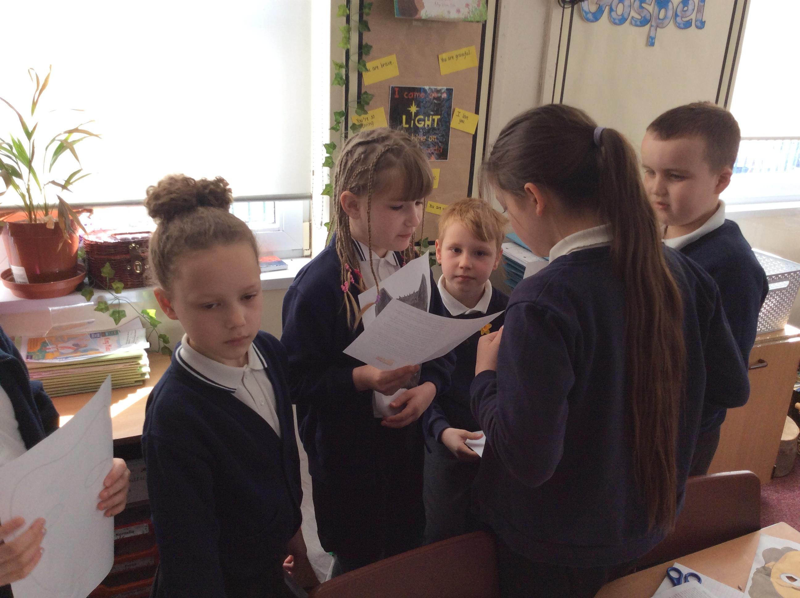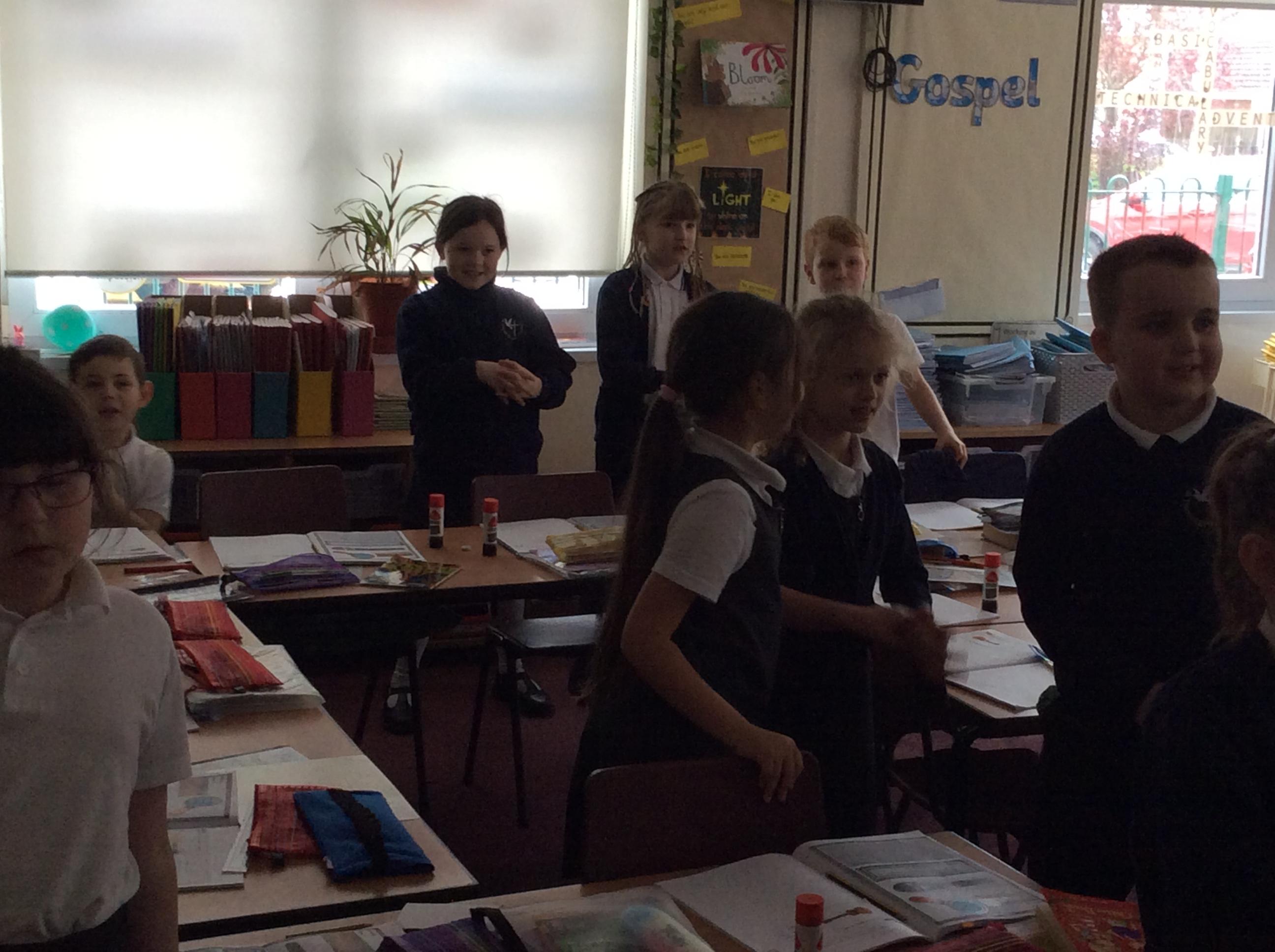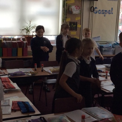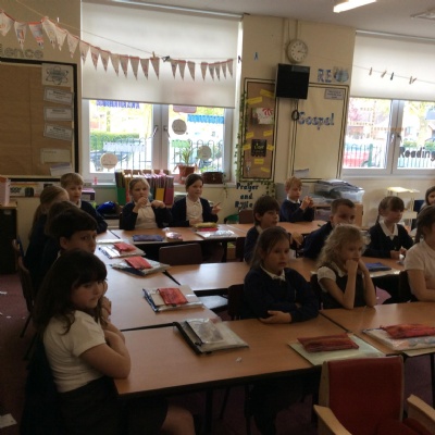 We began by introducing the idea of a ‘Gospel’ — a life-story or biography of the life and teaching of Jesus. We then drew our three favourite possessions before reading about Jesus calling his first disciples. We thought about how following Jesus meant they had to give up a lot. We then reflected on our lists of favourite possessions and how we might feel about giving things up. We then took on the role of Peter or Andrew and decided what they may have thought on hearing Jesus words, we recorded our ideas on speech bubbles and fish.