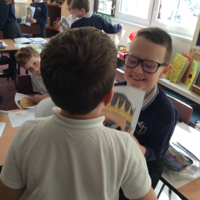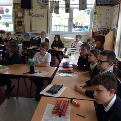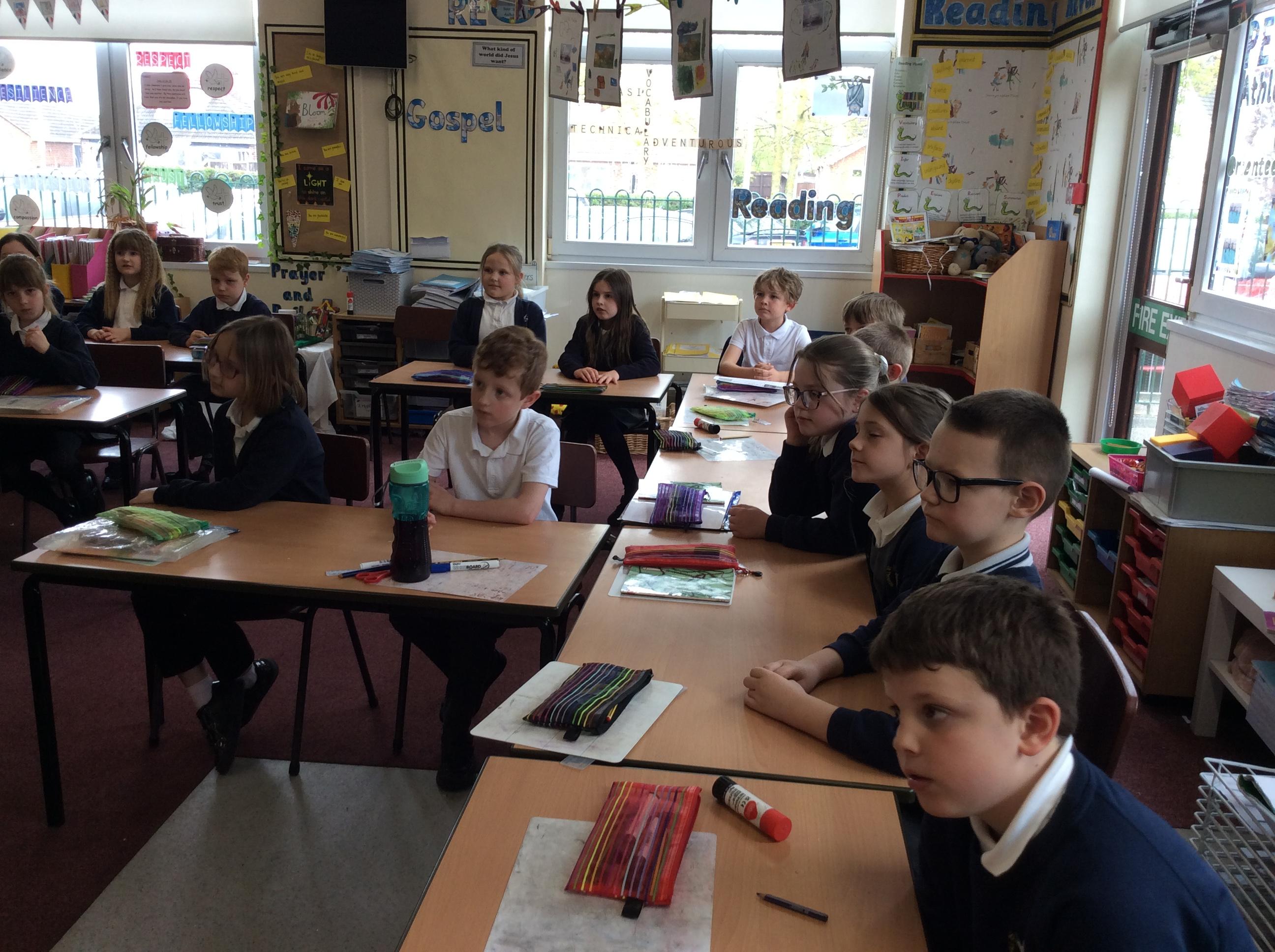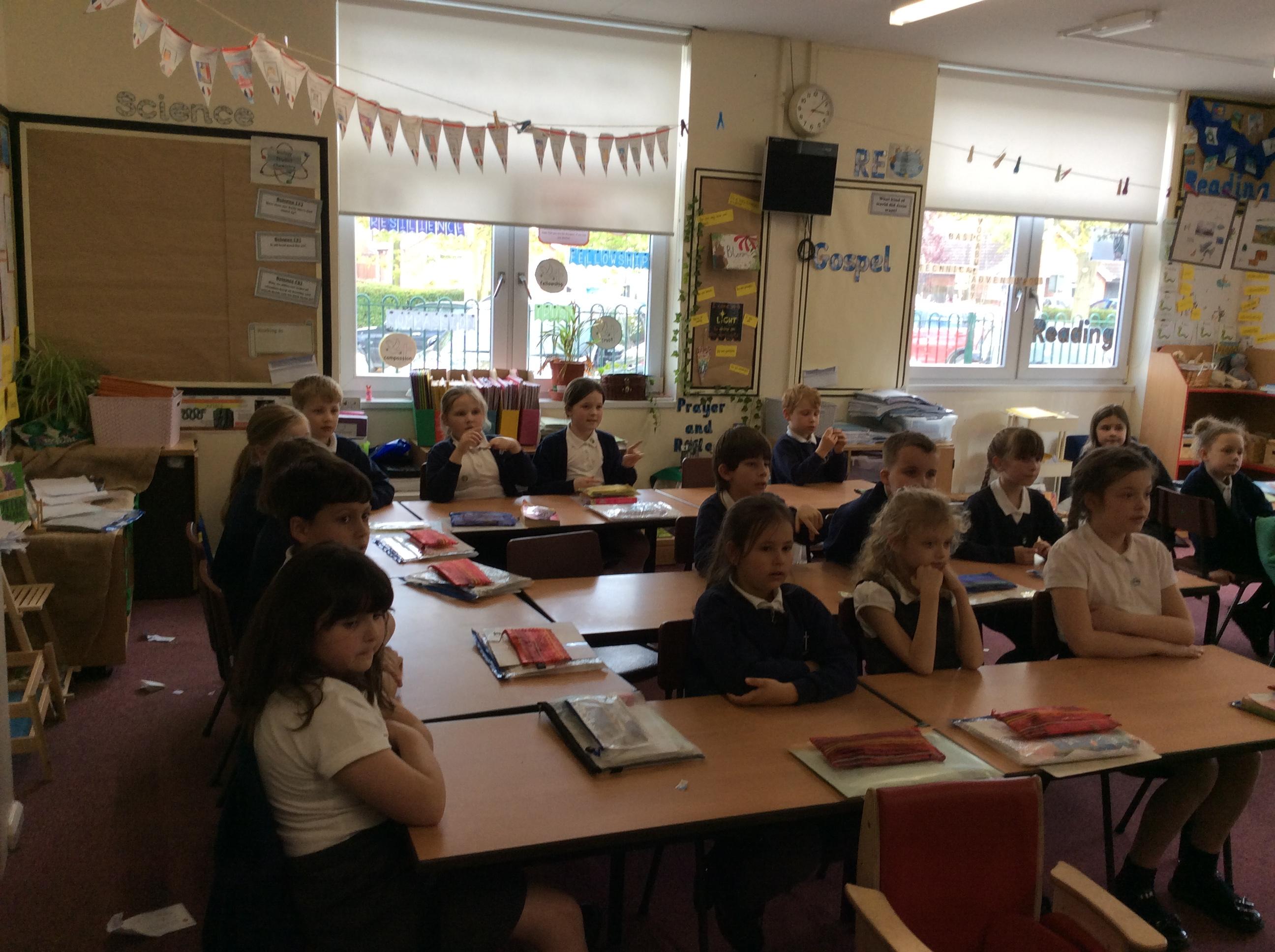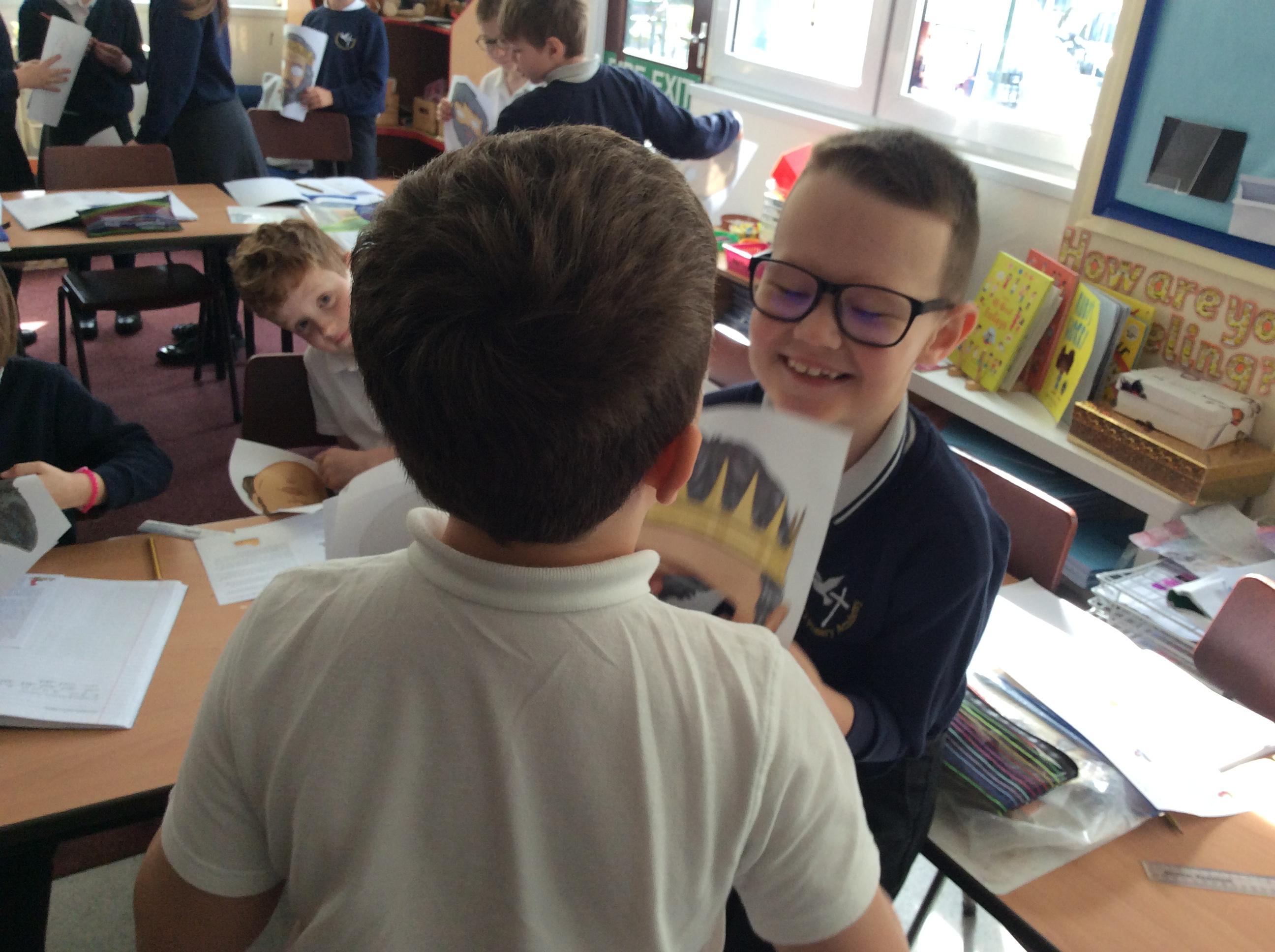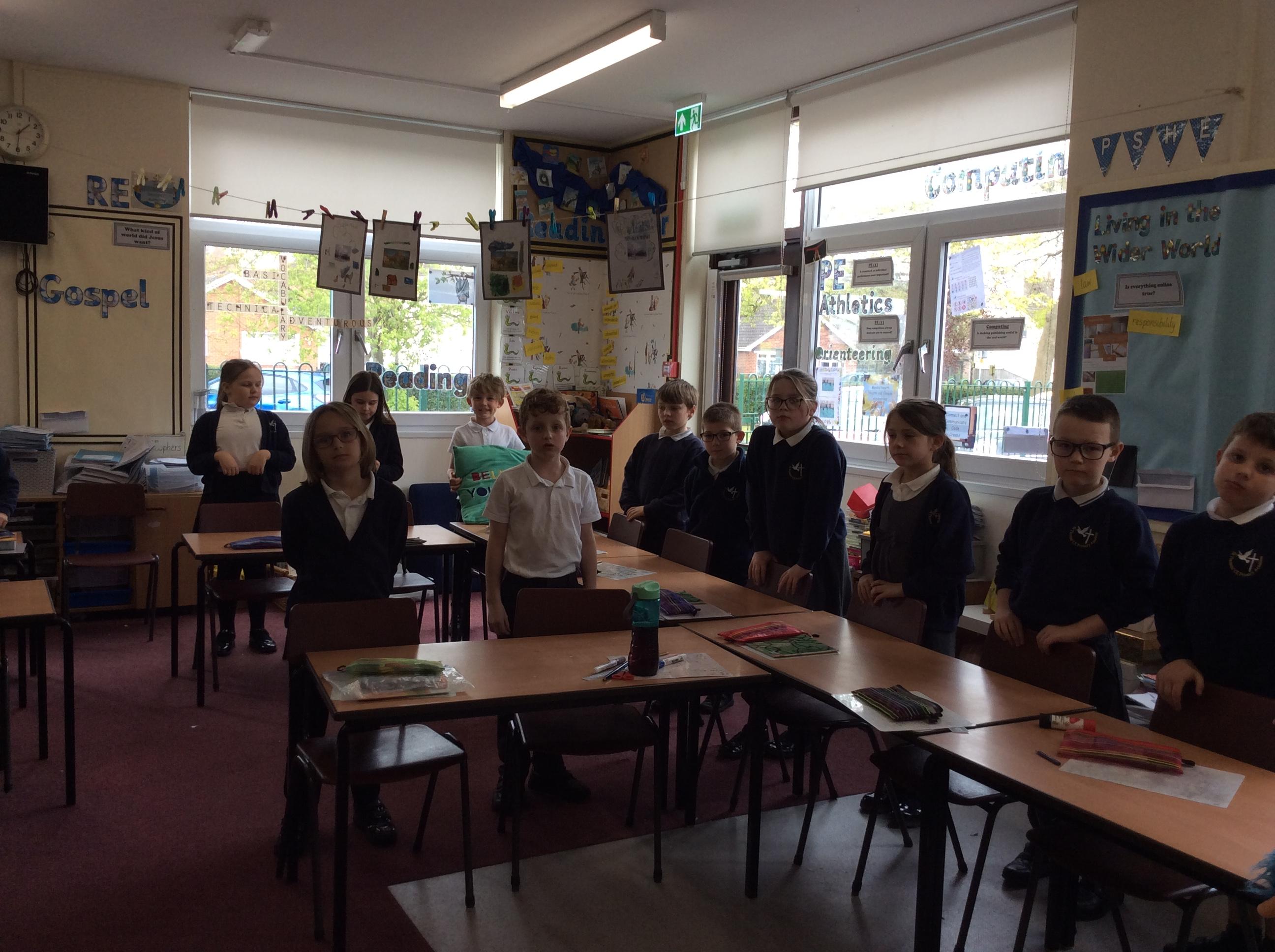 We began by introducing the idea of a ‘Gospel’ — a life-story or biography of the life and teaching of Jesus. We then drew our three favourite possessions before reading about Jesus calling his first disciples. We thought about how following Jesus meant they had to give up a lot. We then reflected on our lists of favourite possessions and how we might feel about giving things up. We then took on the role of Peter or Andrew and decided what they may have thought on hearing Jesus words, we recorded our ideas on speech bubbles and fish.
