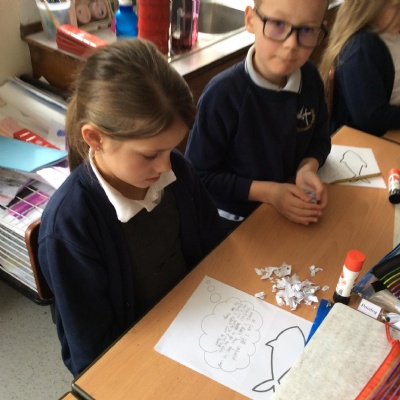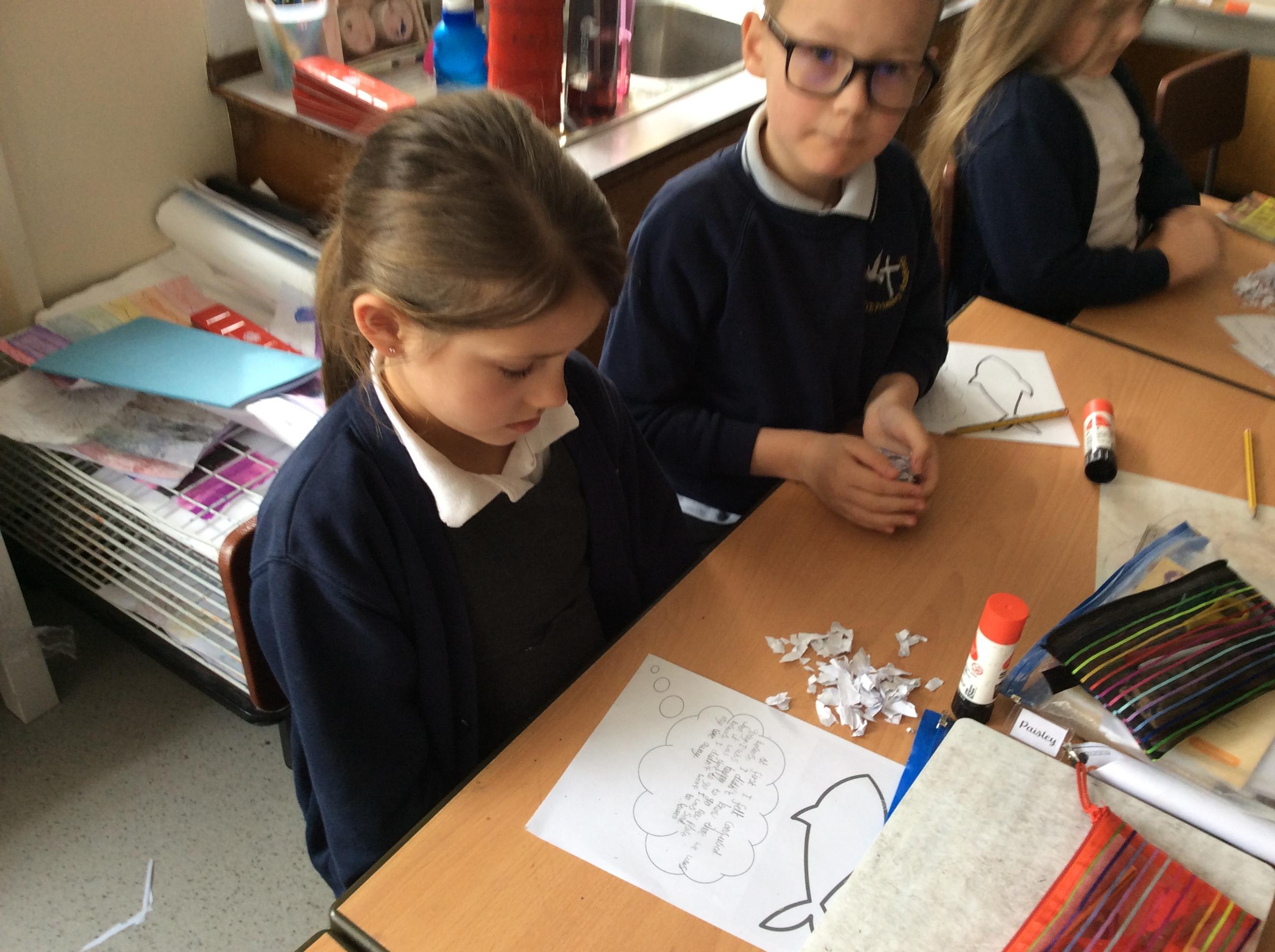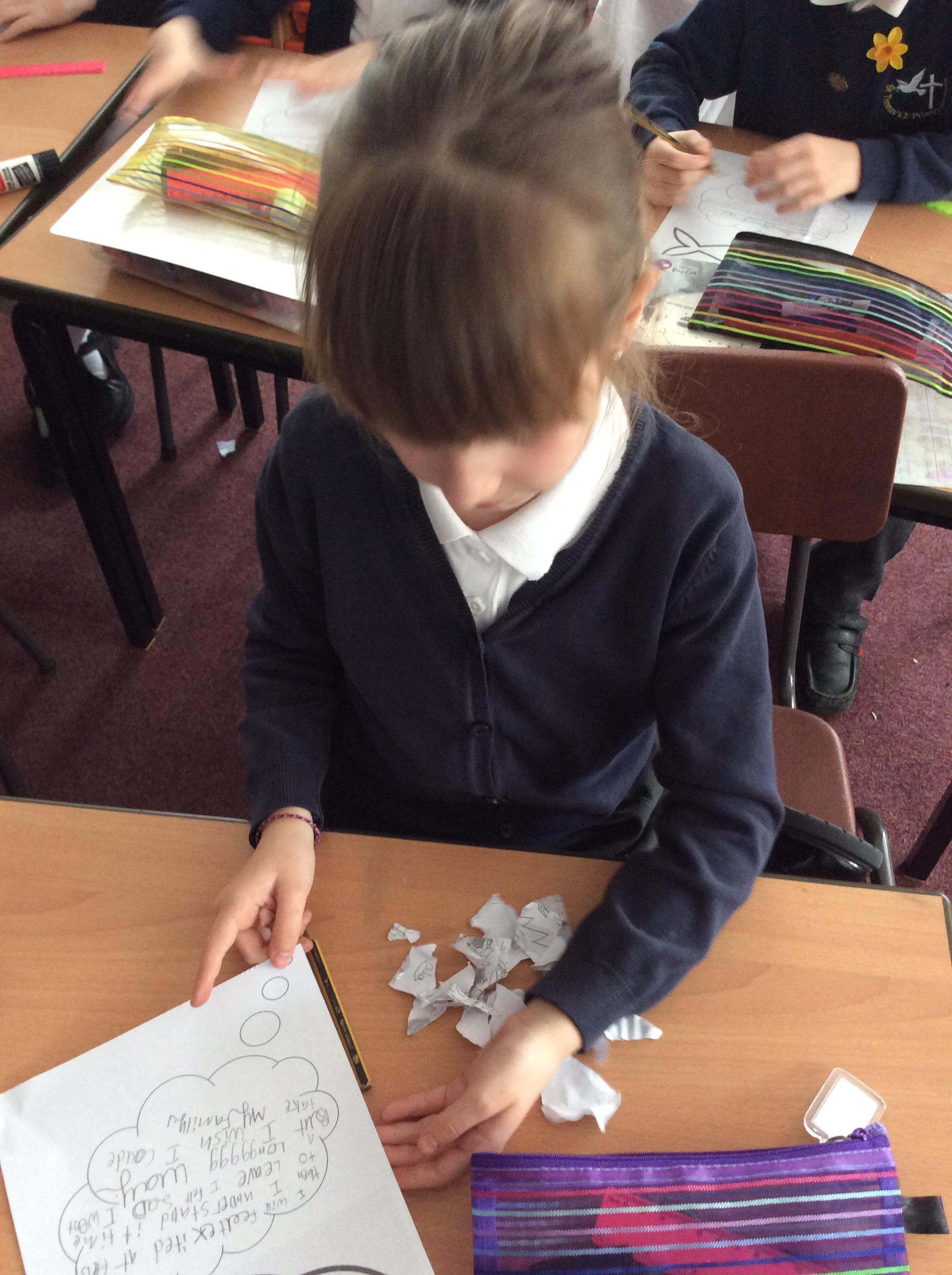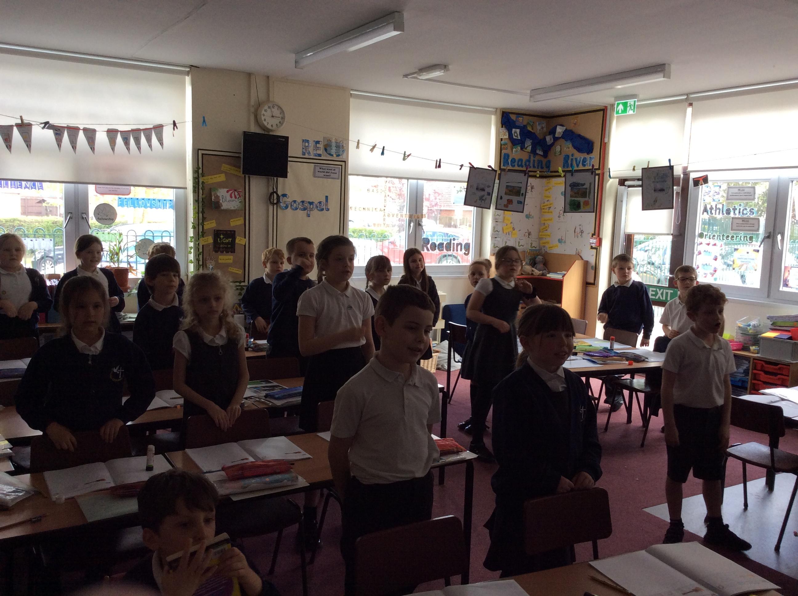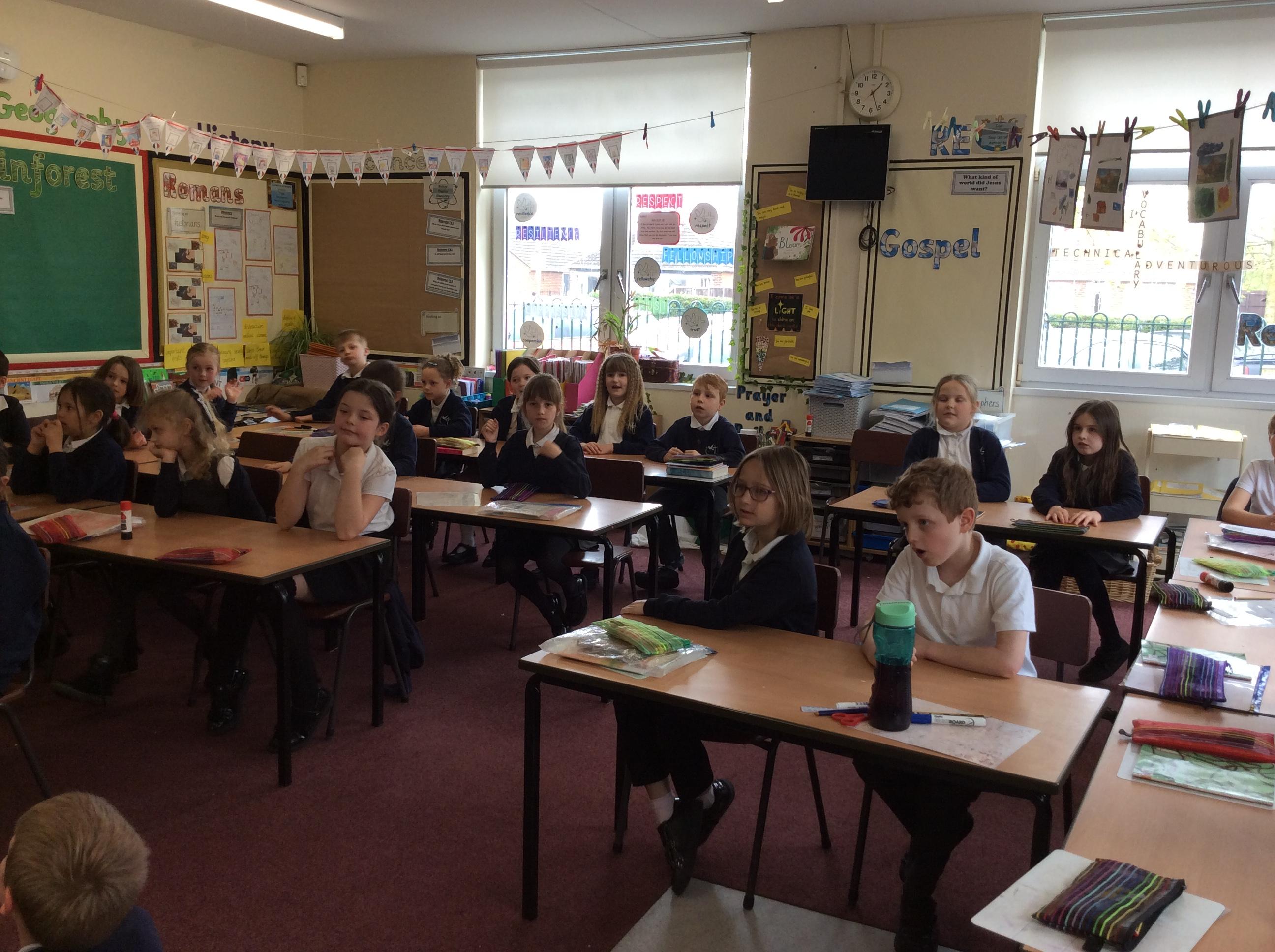 We began by introducing the idea of a ‘Gospel’ — a life-story or biography of the life and teaching of Jesus. We then drew our three favourite possessions before reading about Jesus calling his first disciples. We thought about how following Jesus meant they had to give up a lot. We then reflected on our lists of favourite possessions and how we might feel about giving things up. We then took on the role of Peter or Andrew and decided what they may have thought on hearing Jesus words, we recorded our ideas on speech bubbles and fish.