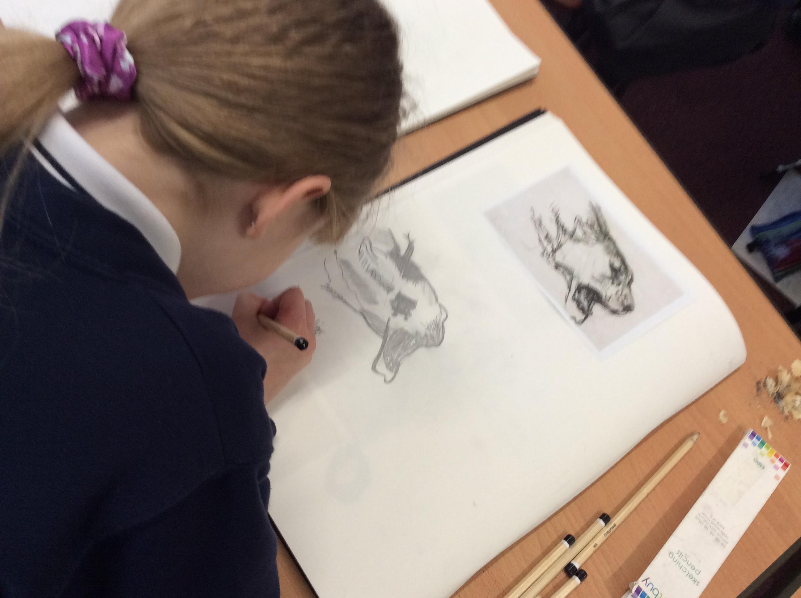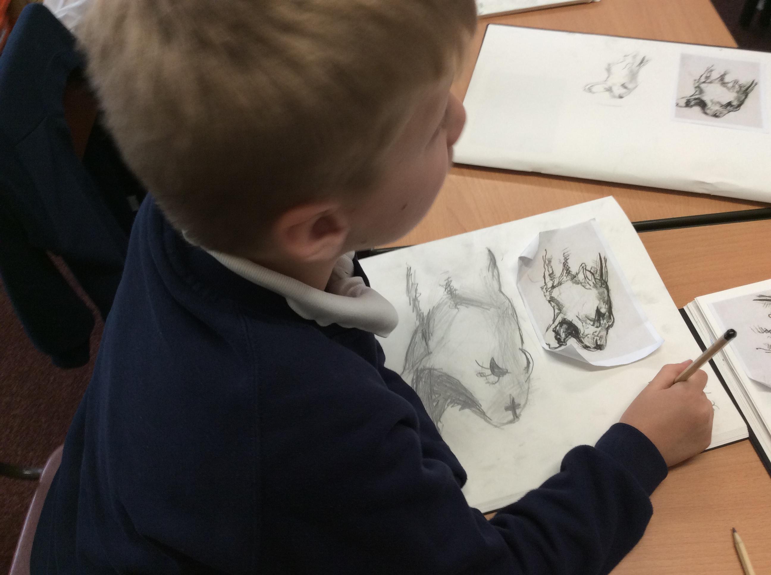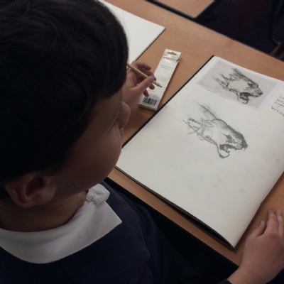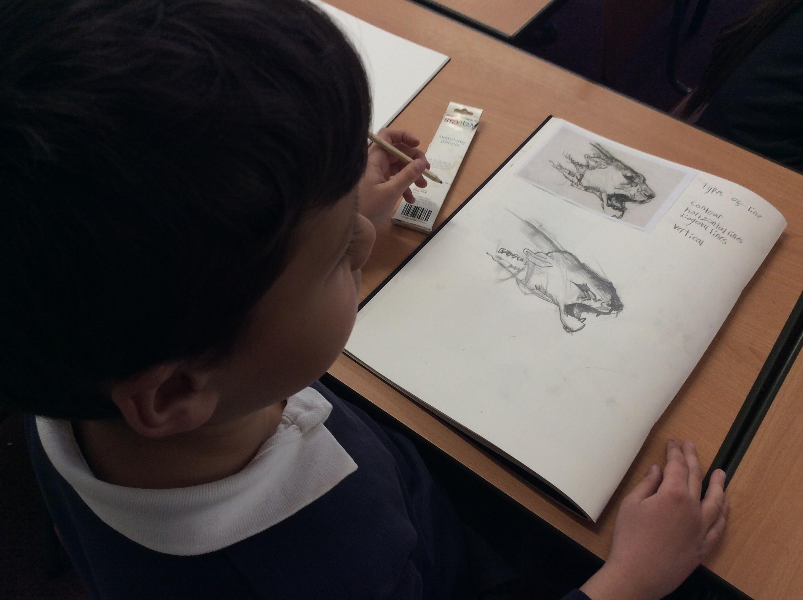 In this lesson, we explored line, looking at how we could observe and make sketches of animals in the artists style.