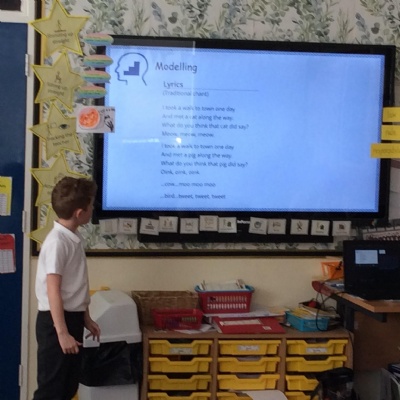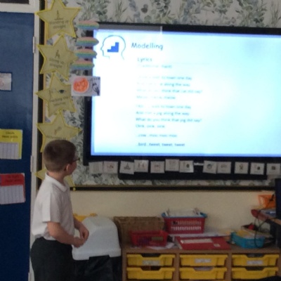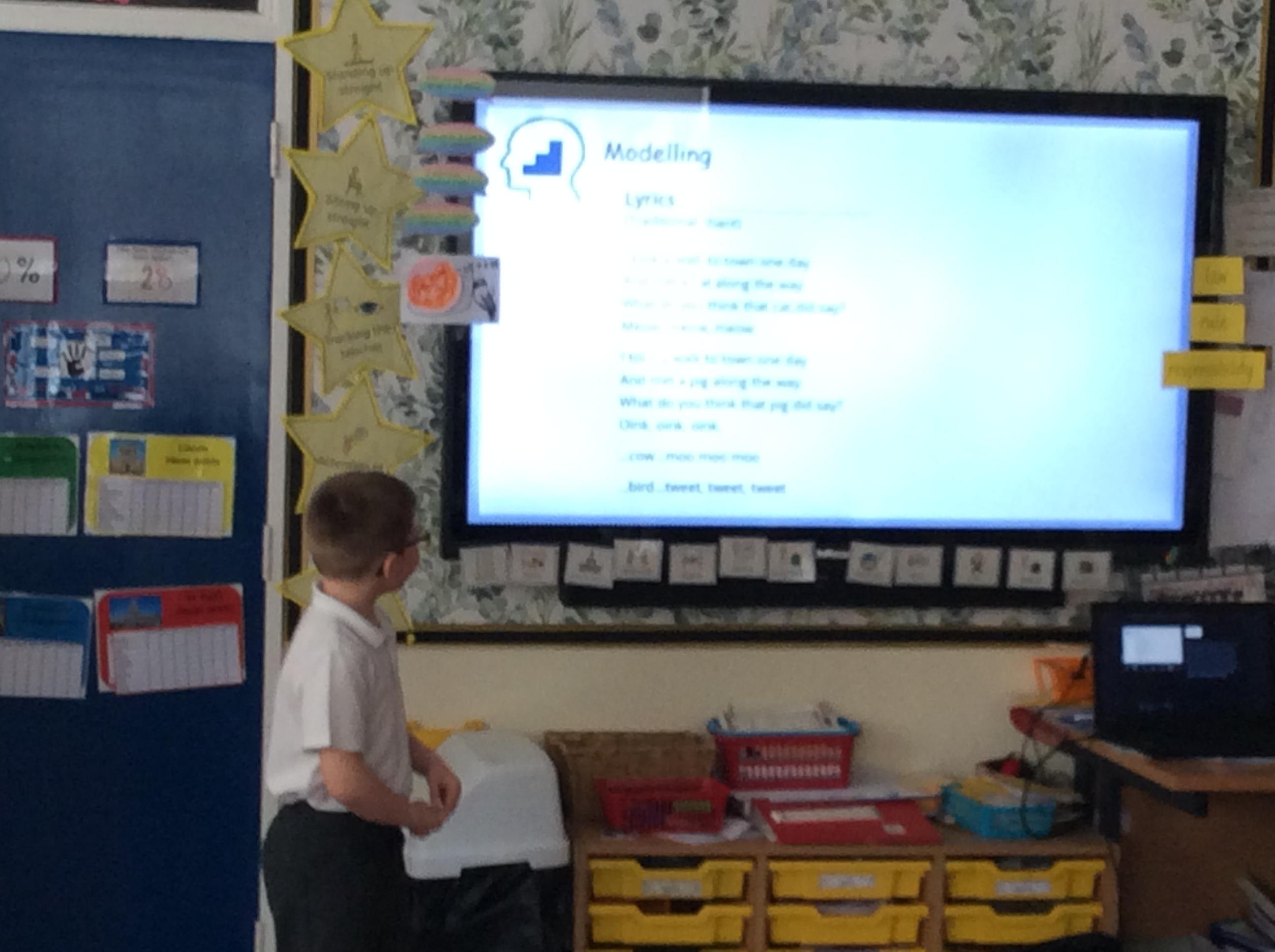 Today we learnt a song that combined actions with singing too. We began by focusing on the chorus and then aimed to combine actions when singing. We used Makaton signing as actions whilst singing. We watched first, before trying to pick up the signing.