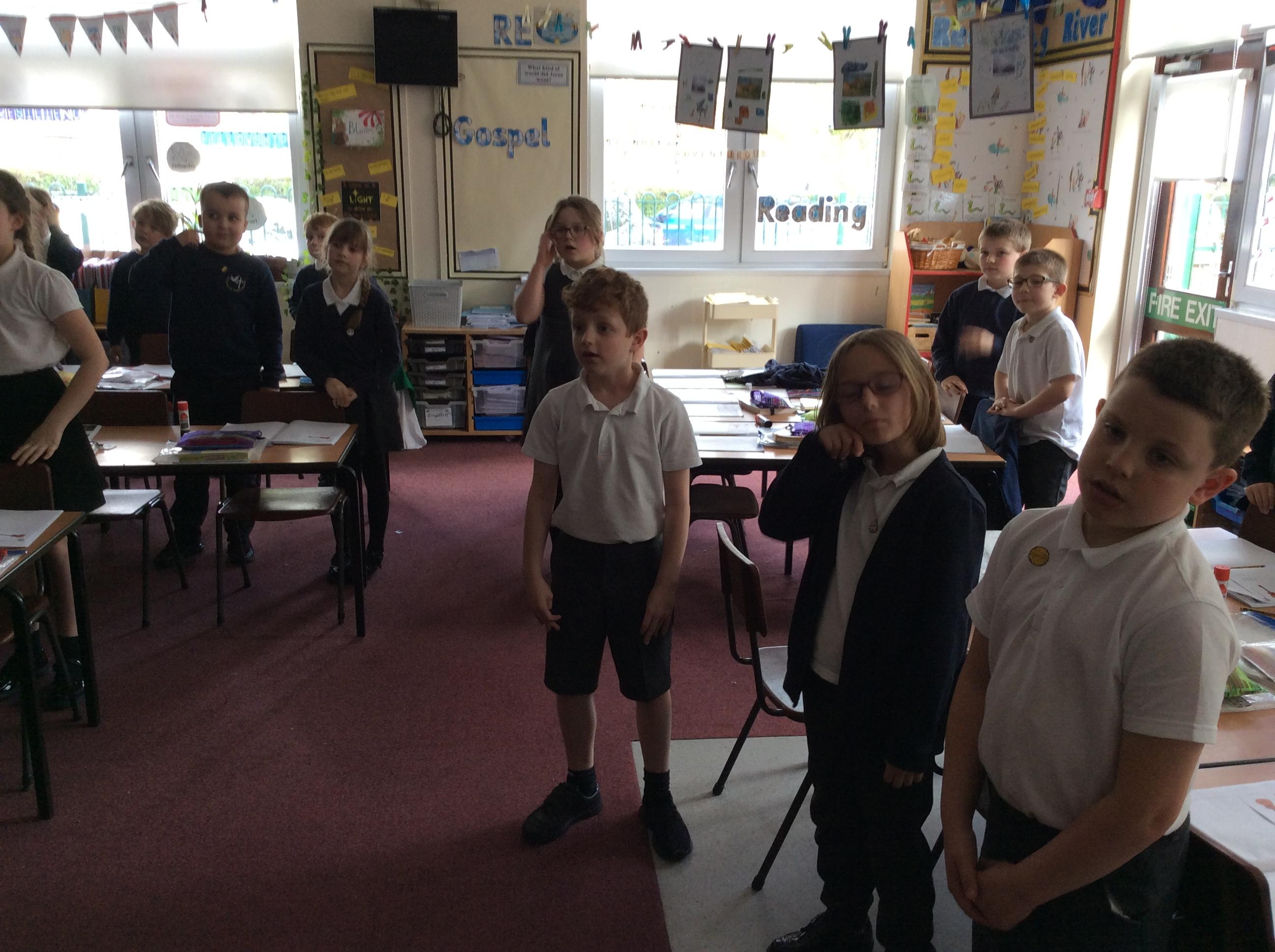 Today we explored singing in unison. We learnt that good posture when singing is vital to create the best sound. We discussed and choose which of the images we were shown was the best singing posture. We know that standing up with feet shoulder width apart, straight backs and arms relaxed by the side is a good singing posture.