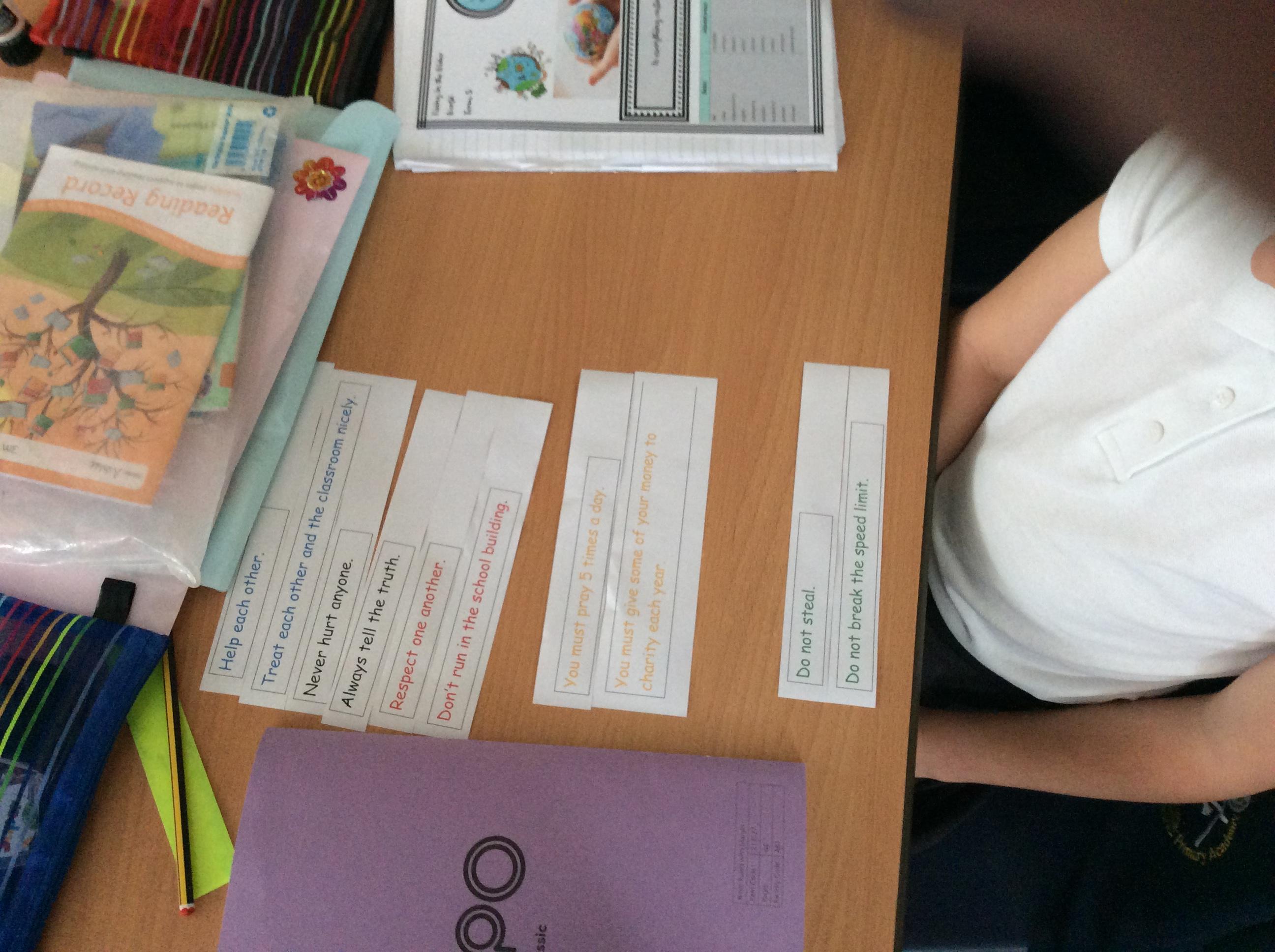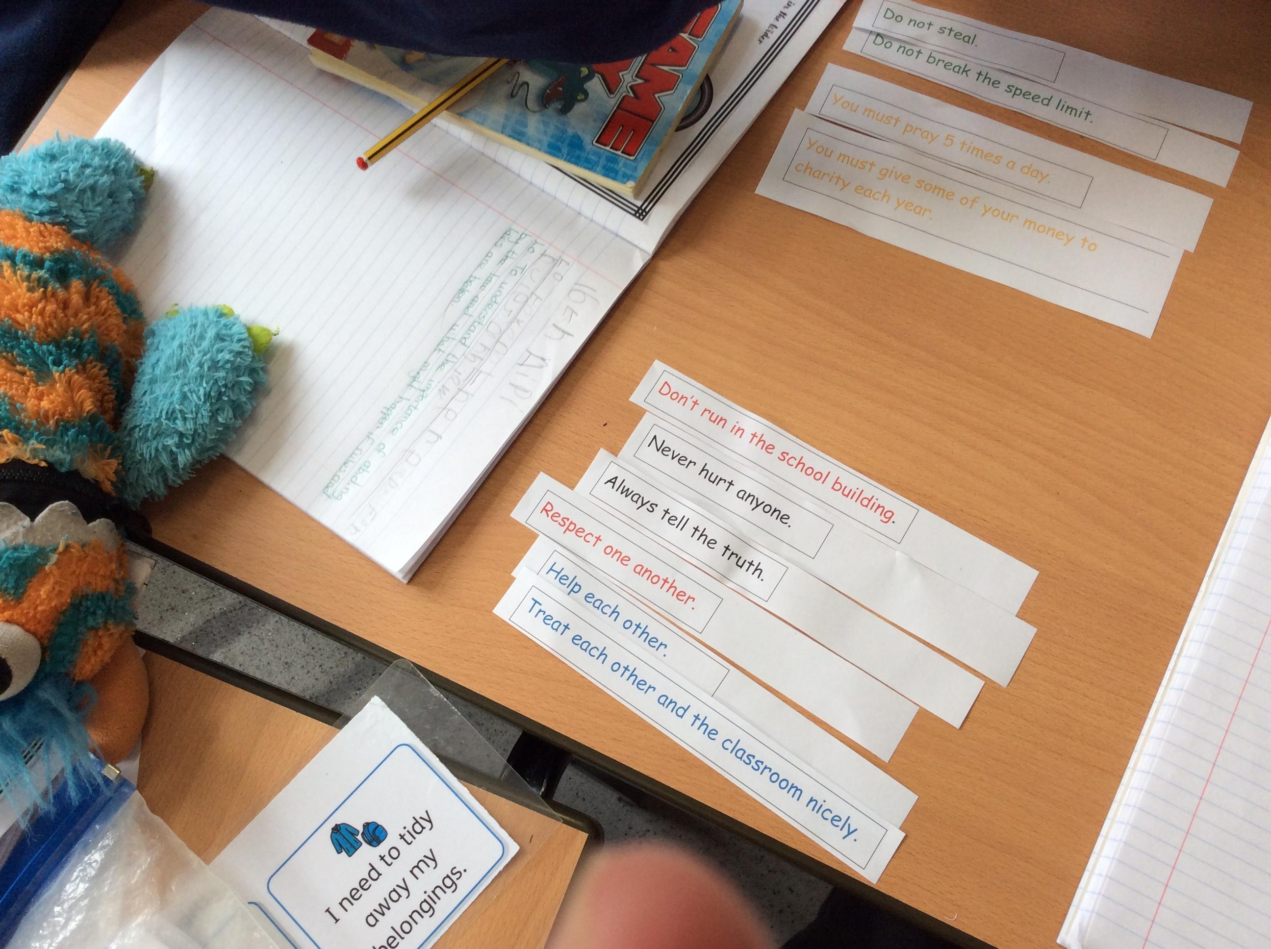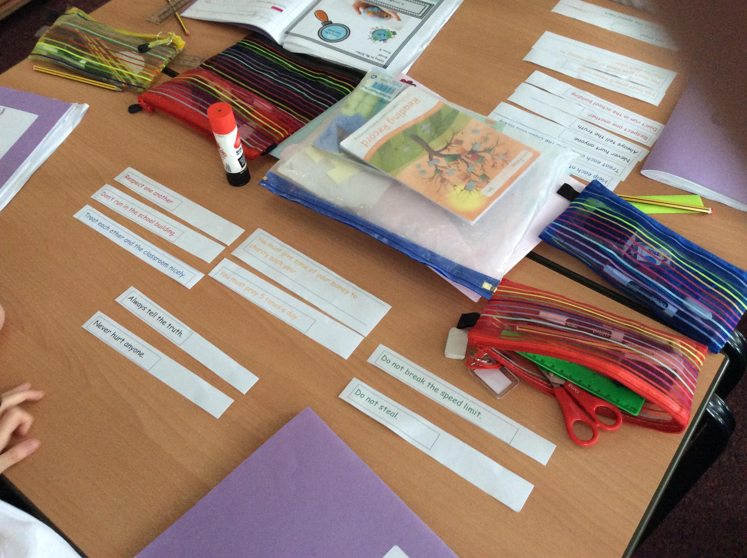 We began our leaning about living in the wider world by exploring the reasons for rules and laws. We began to understand the importance of abiding by the law and what might happen if rules and laws are broken. We read through school rules, laws and commandments to begin to discuss which are important to us and why. We then decided which might be most important for Christians or Muslims and the reasons for our choices.