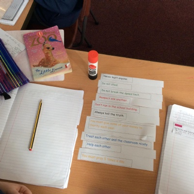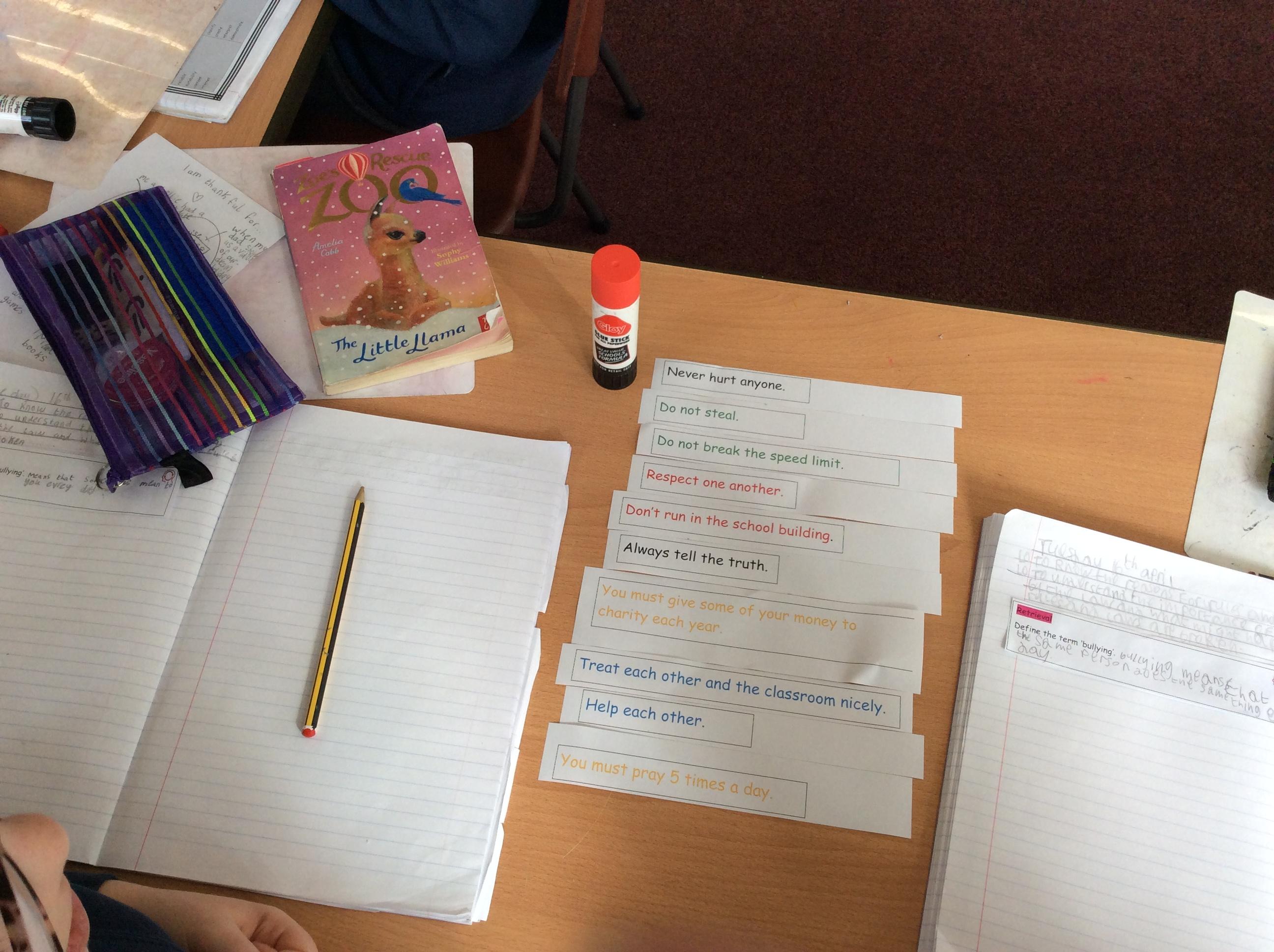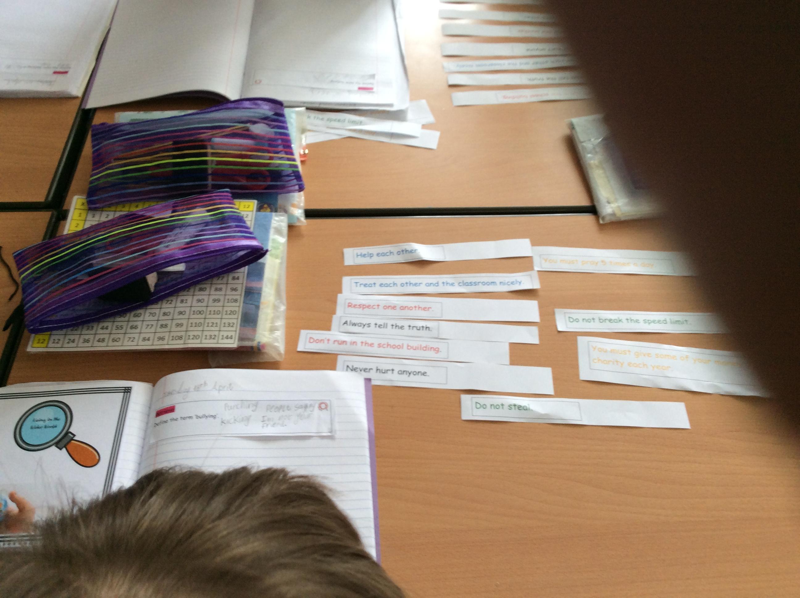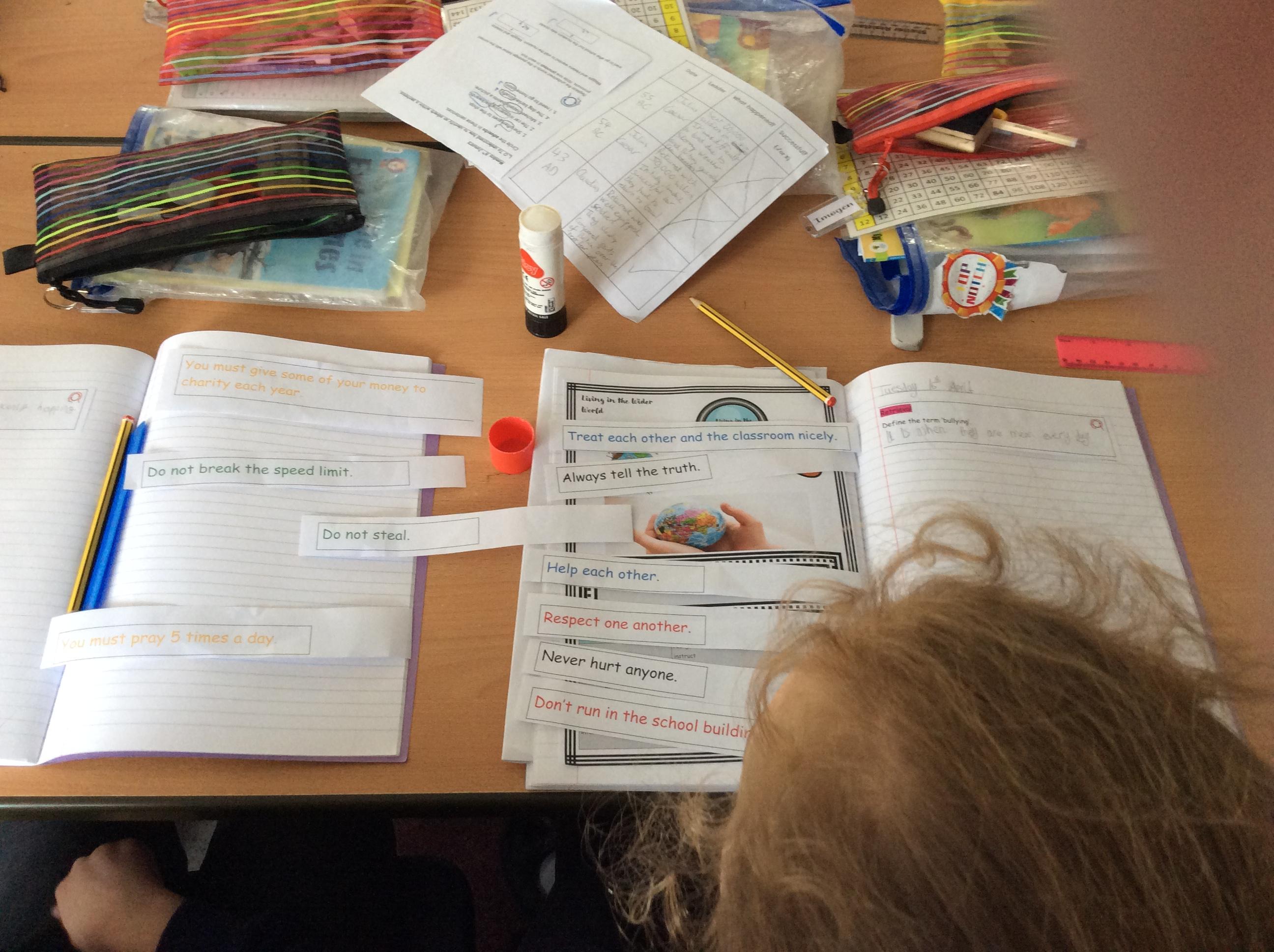 We began our leaning about living in the wider world by exploring the reasons for rules and laws. We began to understand the importance of abiding by the law and what might happen if rules and laws are broken. We read through school rules, laws and commandments to begin to discuss which are important to us and why. We then decided which might be most important for Christians or Muslims and the reasons for our choices.