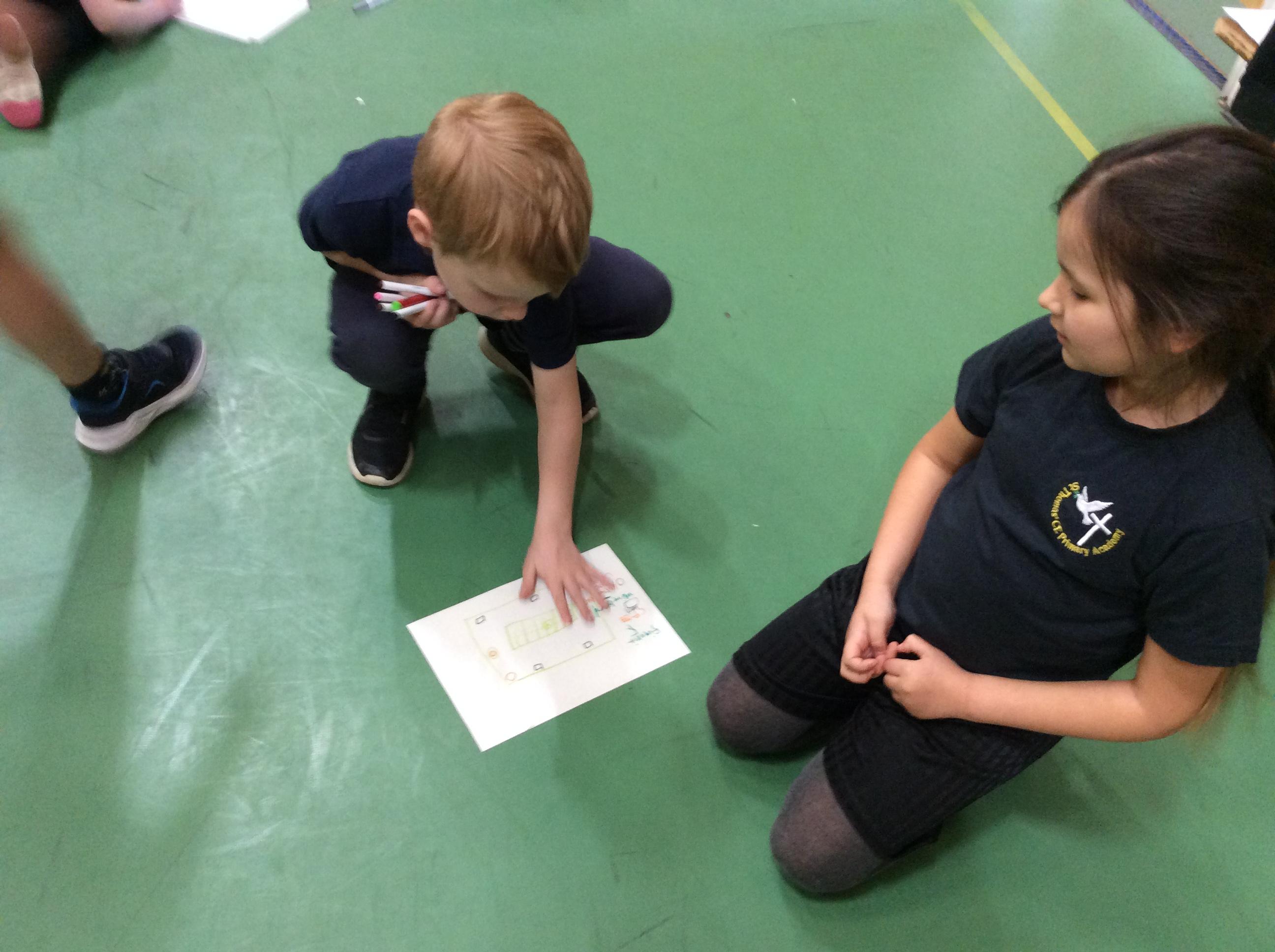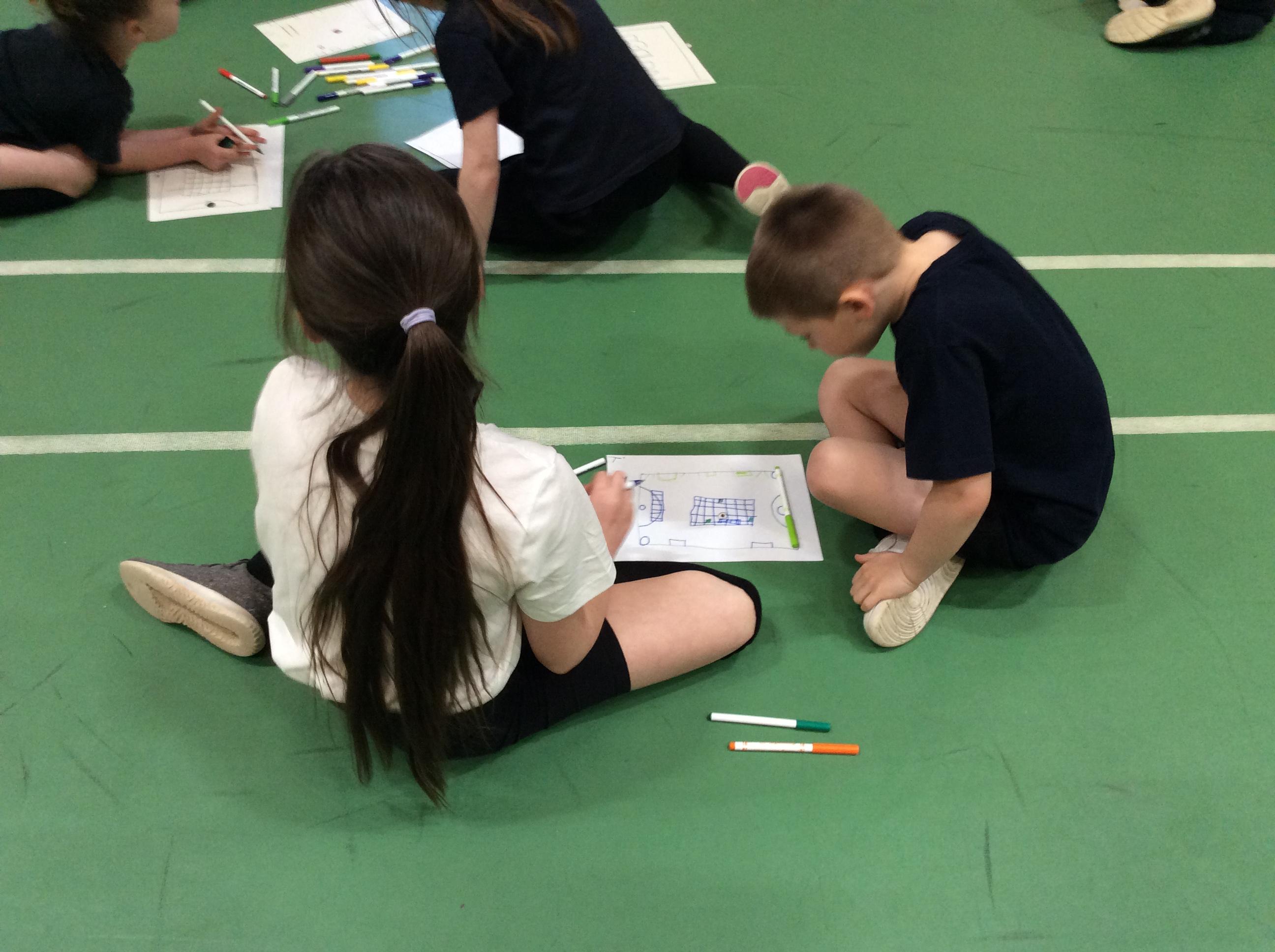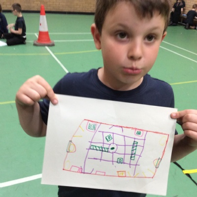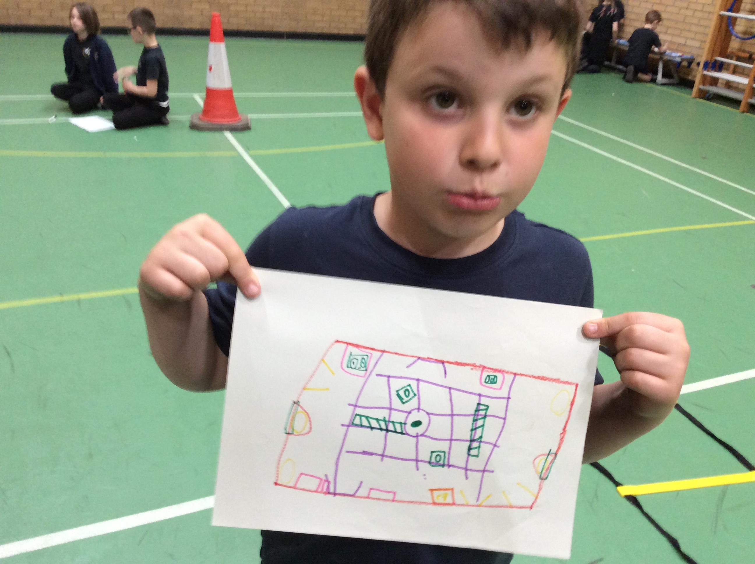 In our first lesson, we looked at how to set a map ready for us to be able to find the controls needed. We modelled how the sports hall might look and where things were in relation to one another before creating a birds eye view map.
