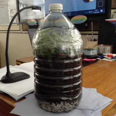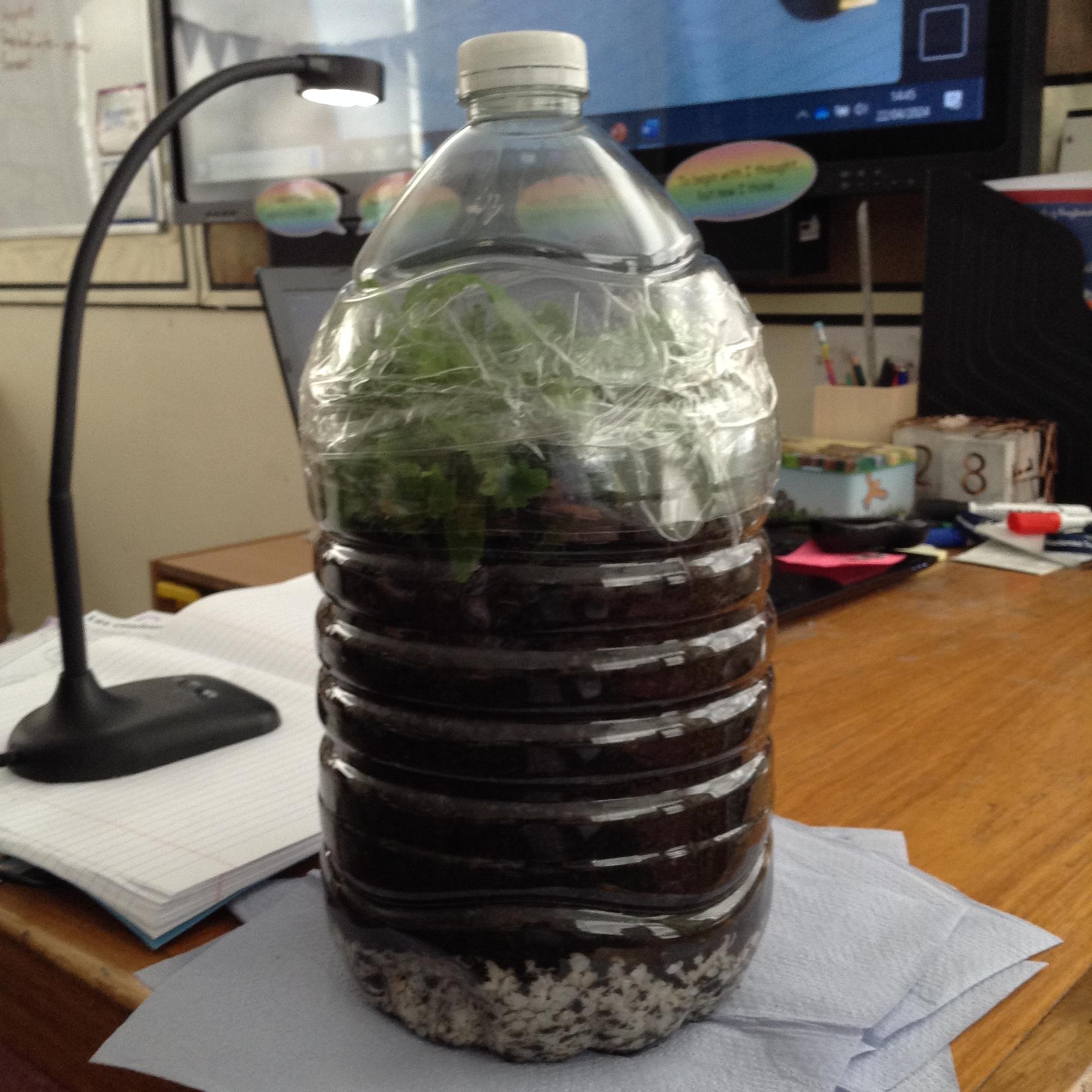 We have been looking into what a biome is and the different layers of the rainforest. We then designed a class terrarium to help us understand that a rainforest is one example of a biome with it's closed continuous tree canopy, high annual rainfall with a lack of wildfire and moisture dependent vegetation.