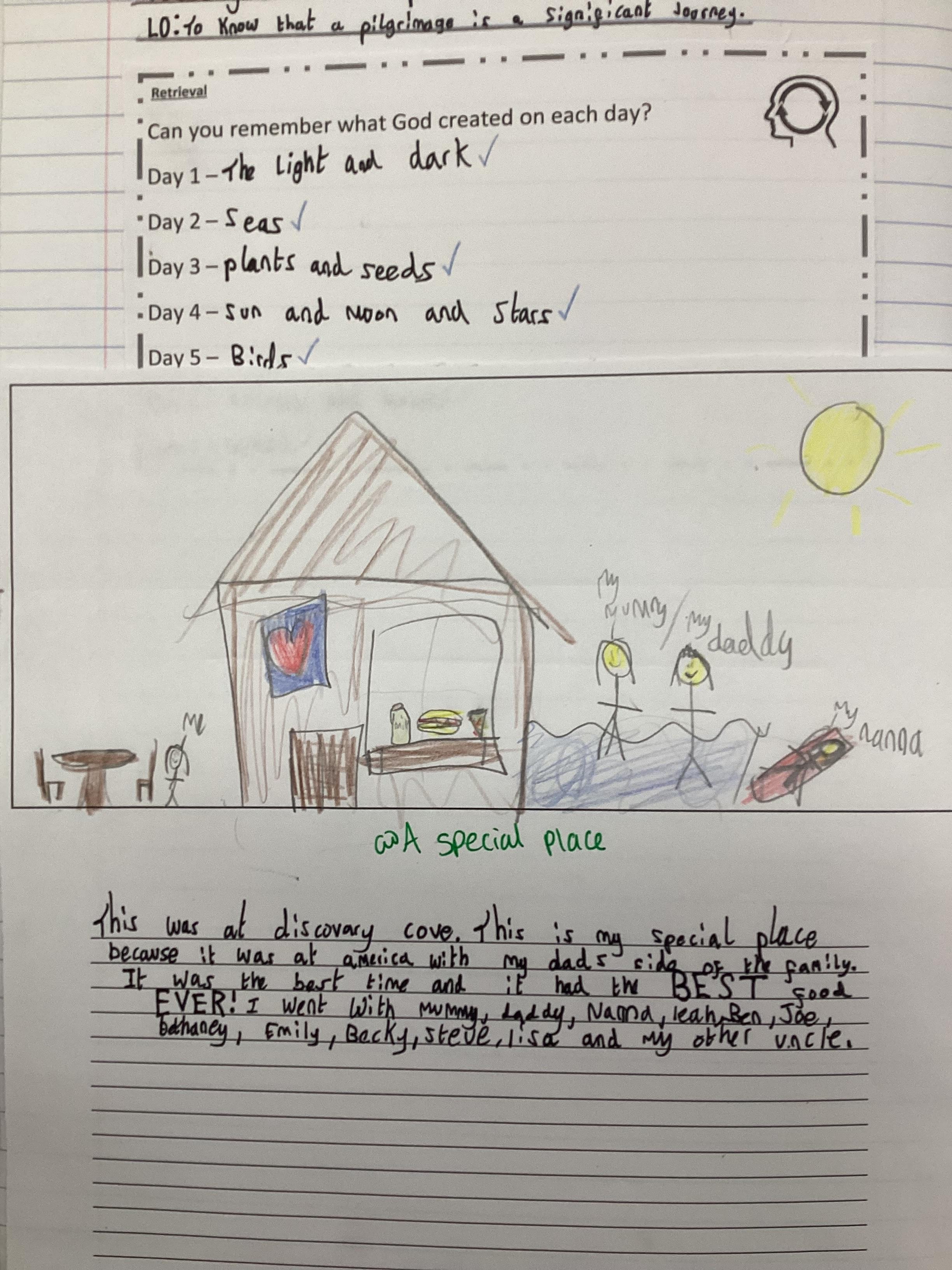 Our first RE lesson has seen us discussing how pilgrimages are not always the destination, but the journey is as important. We spoke about what places are special to us and shared these in our books.