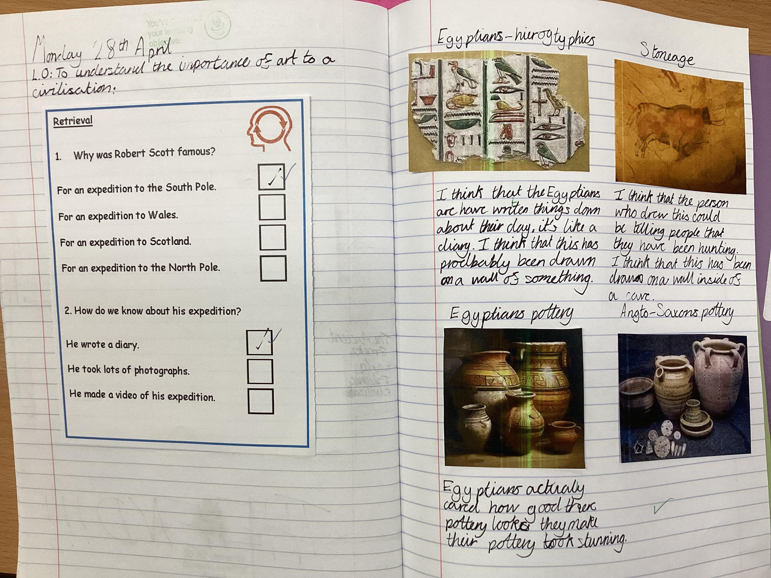 We started our history unit by looking at the Egyptian timeline of events. We found this fascinating! Then, we looked at where the Egyptian timeline fitted in with other historical events such as the Romans. We were shocked to found out that this was happening at the same time as key events as other historical timelines.