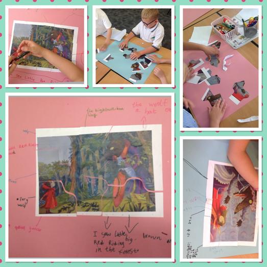 In English we have begun to look at our new text 'Little Red Riding Hood'. To get the children hooked on this text we started of by going on a treasure hunt to find lots of jigsaw pieces. We made the jigsaw and made inferences about the picture. We then read the story together and talked about the different characters.