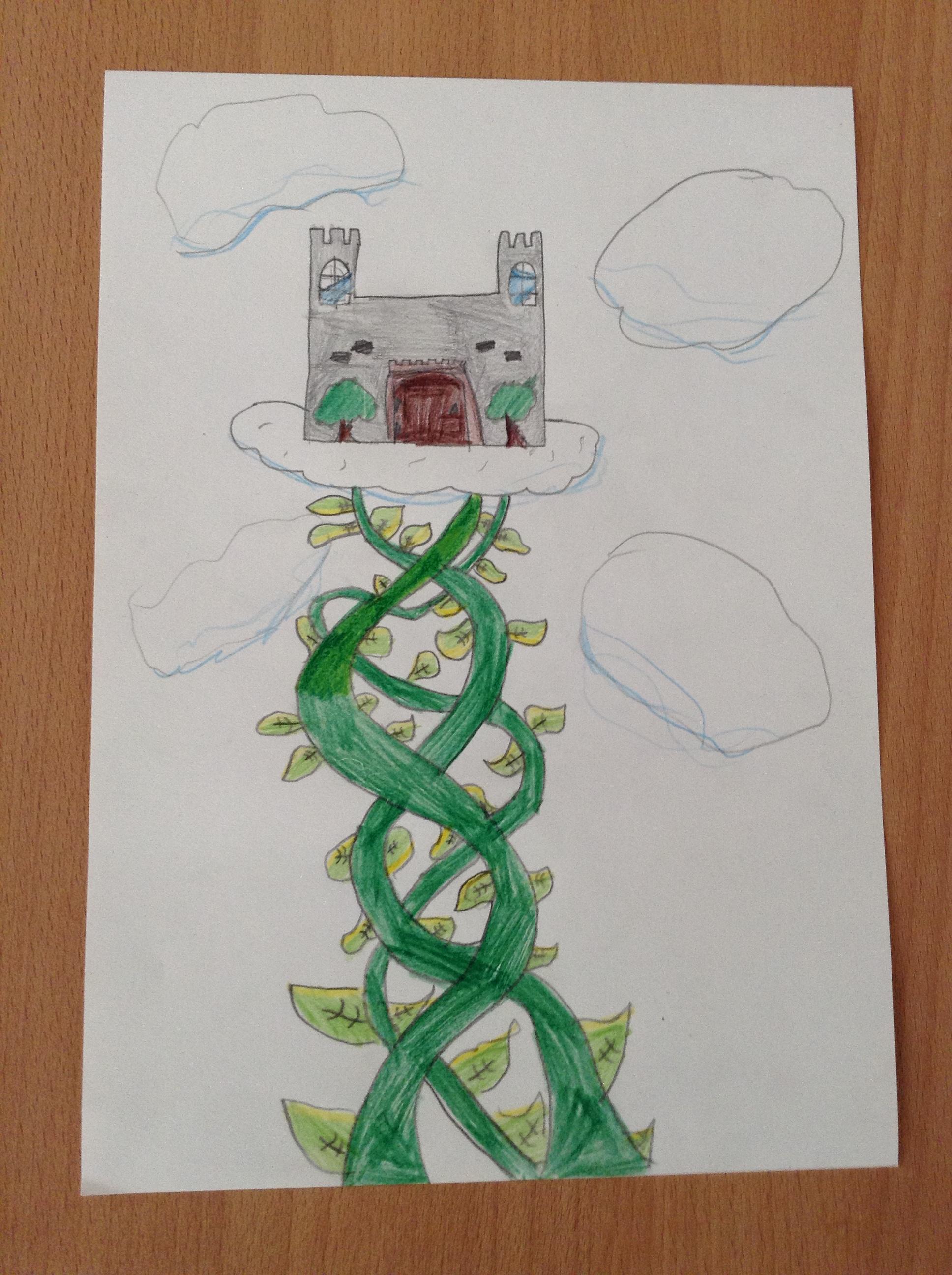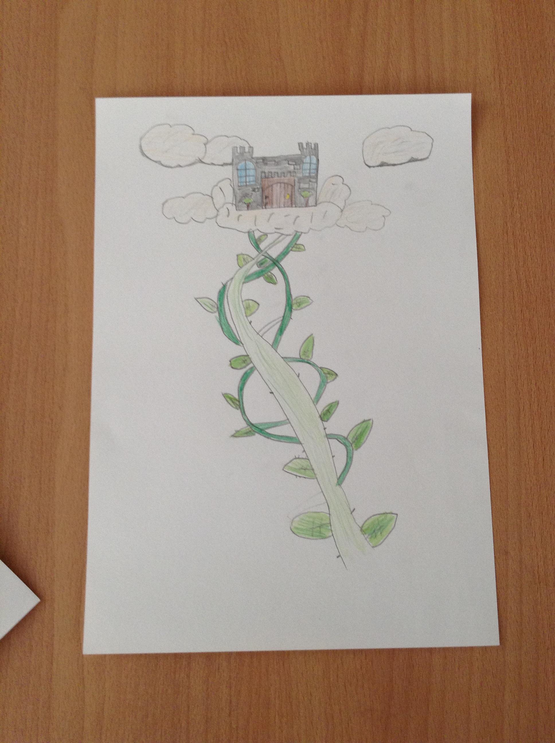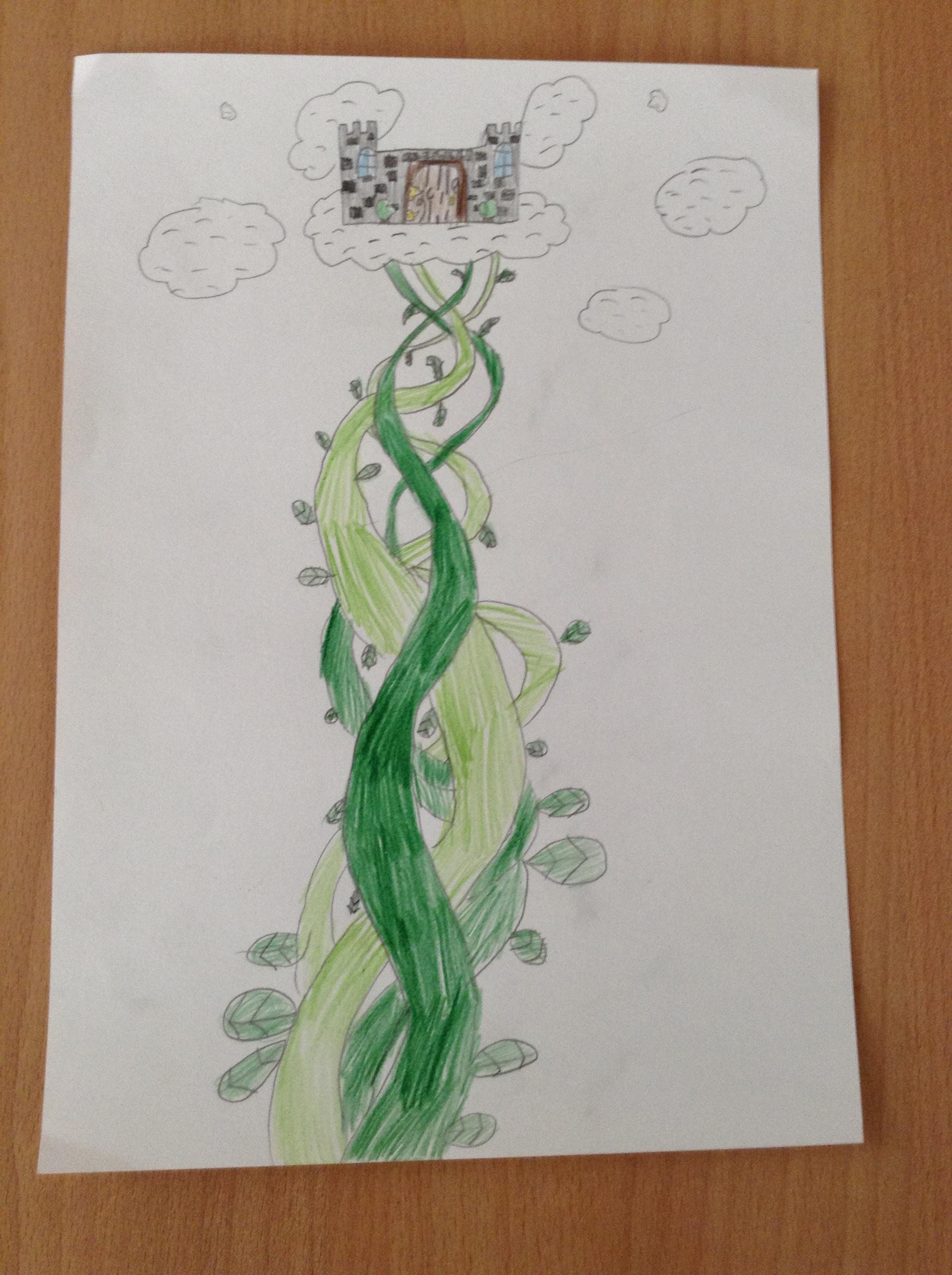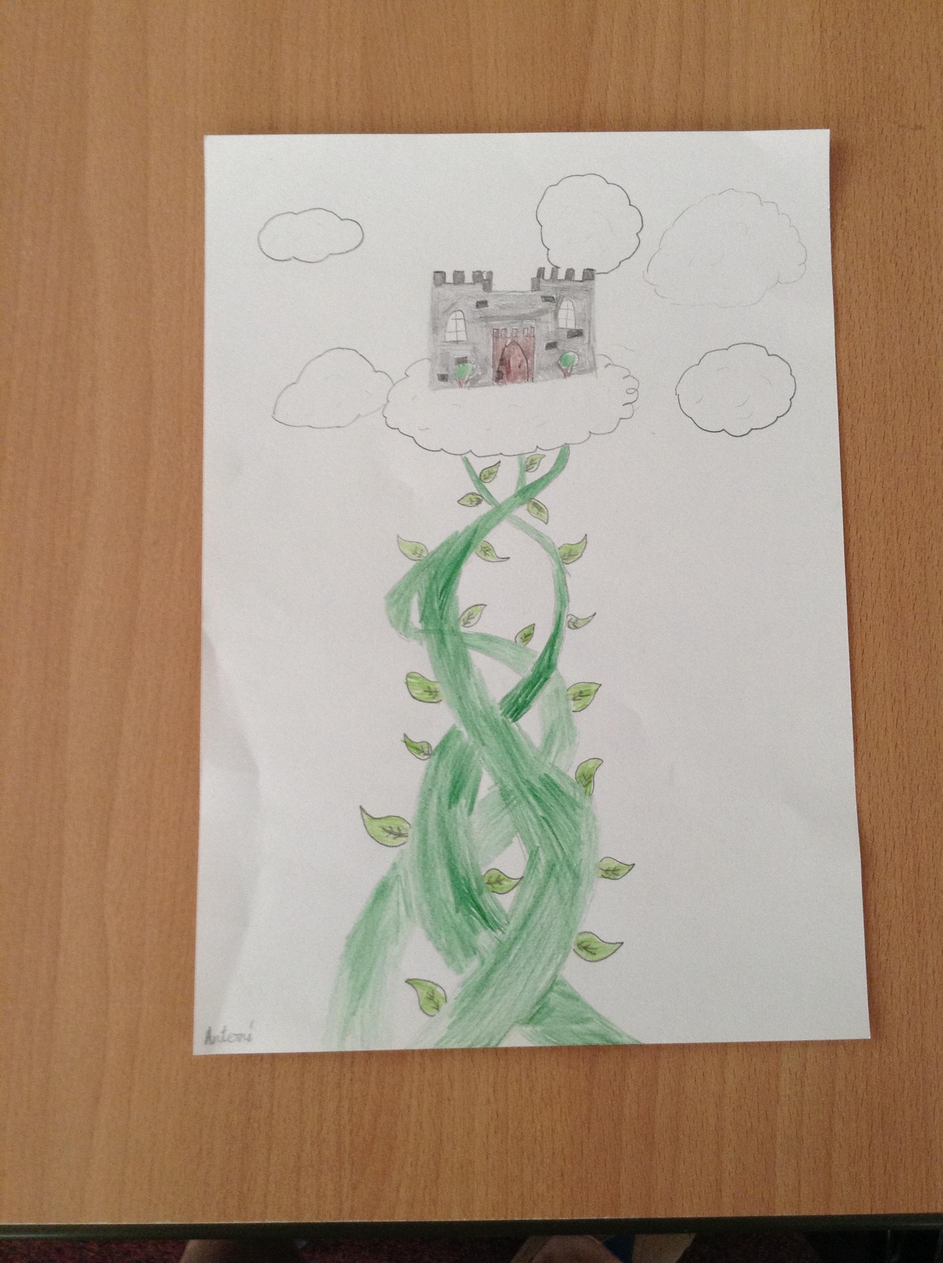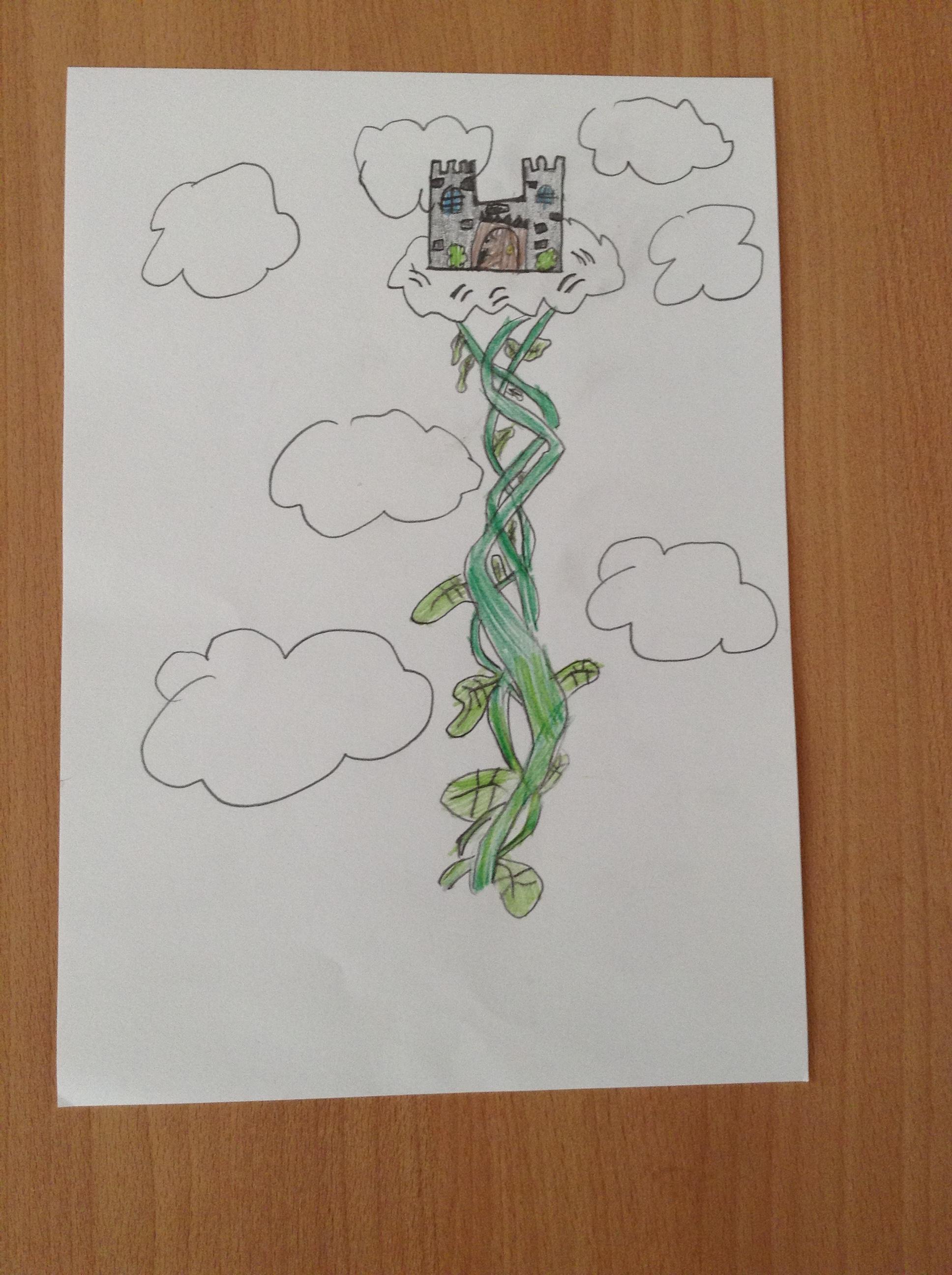 Currently in English we are exploring the text of Jack and the Baked Beanstalk to inspire our creativity and write a new version to entertain! Take a look at some our art work we have created for it.