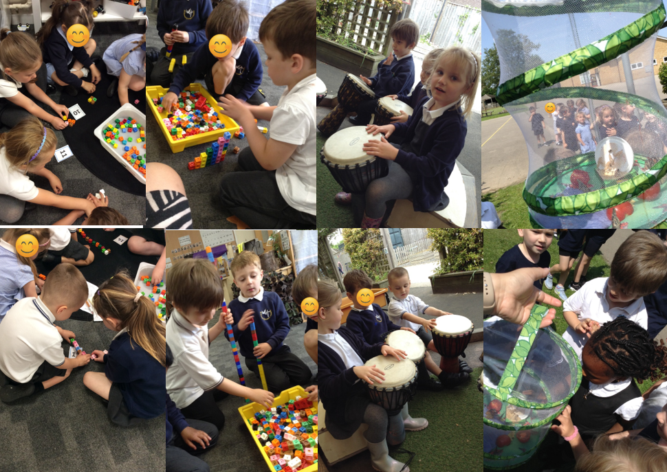 This week we released out butterflies into the sky. We have watched them as they started off as tiny caterpillars, spun into cocoons and finally turned into a butterfly. We have been enjoying learning about and playing djembe drums and representing numbers to 20 with cubes.