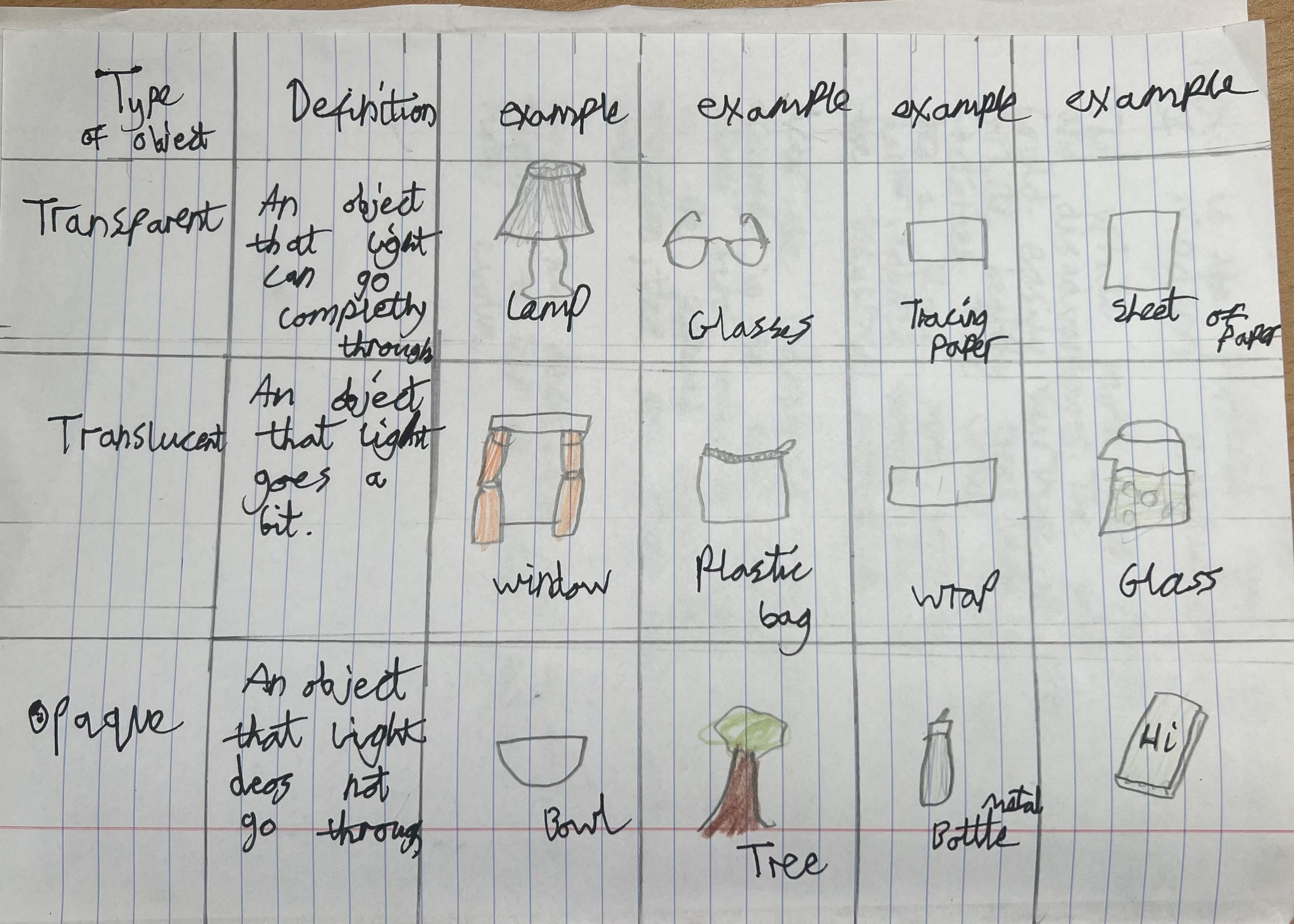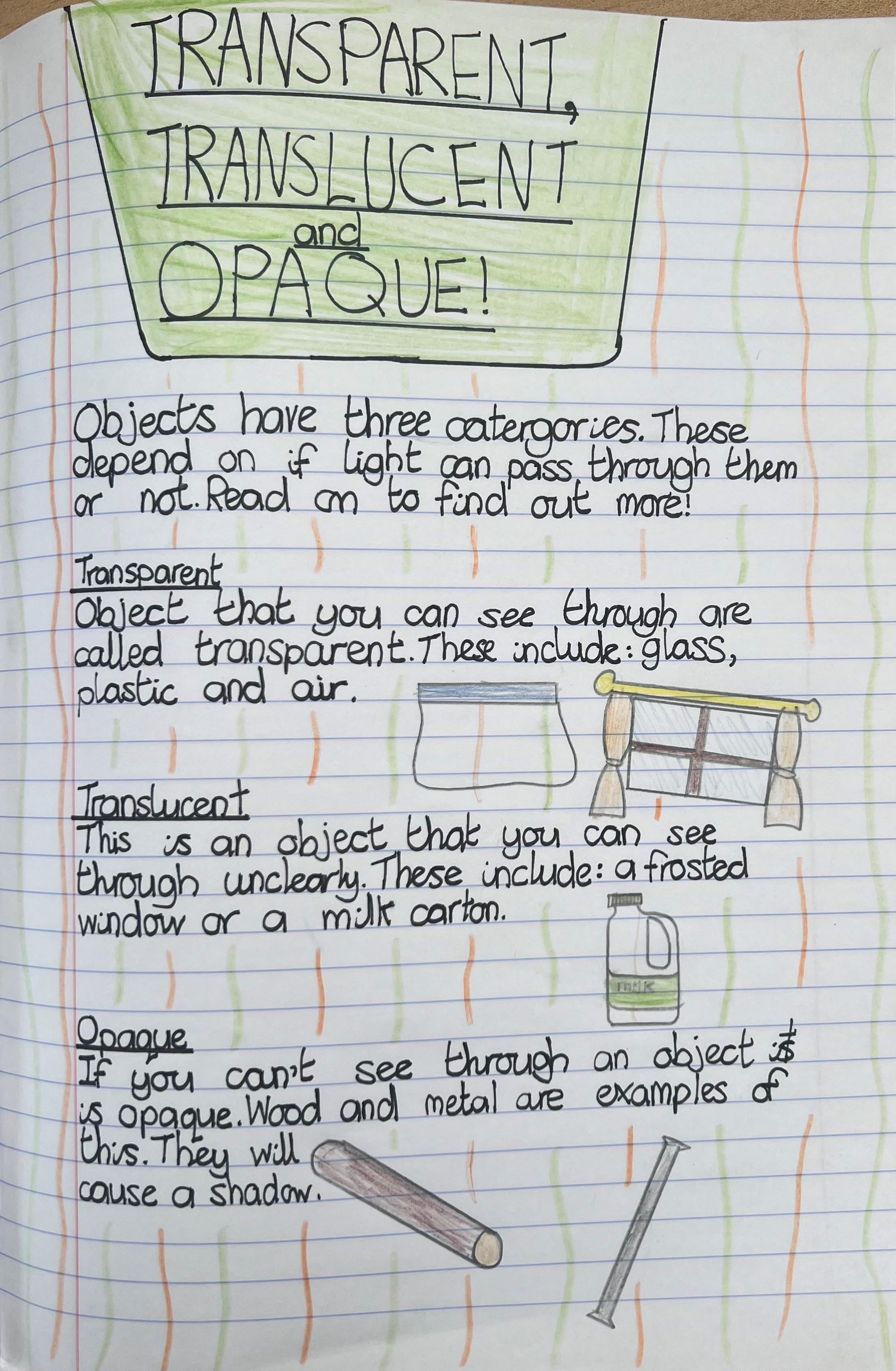 Transparent, translucent and opaque